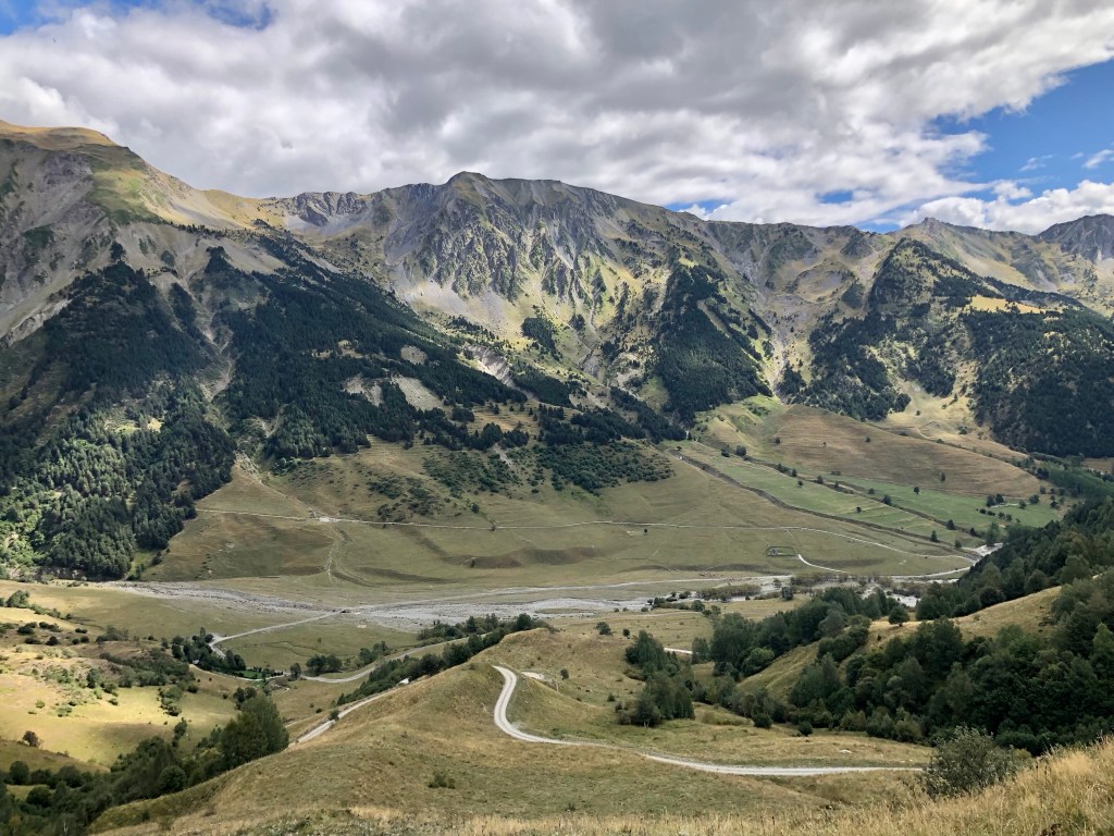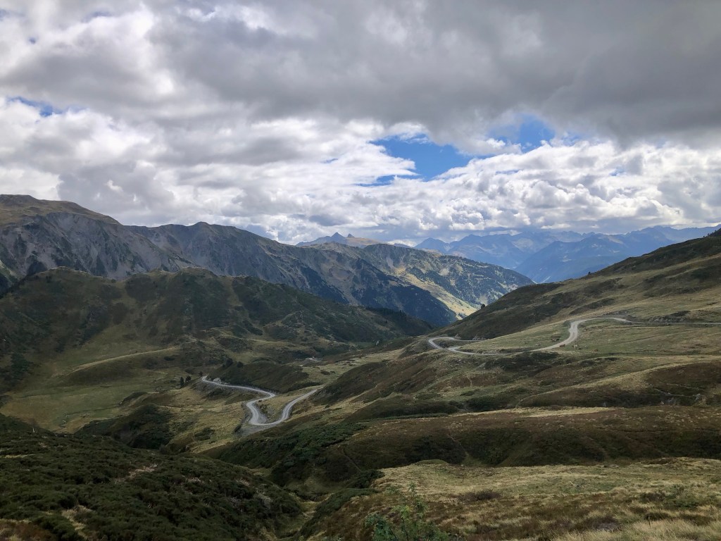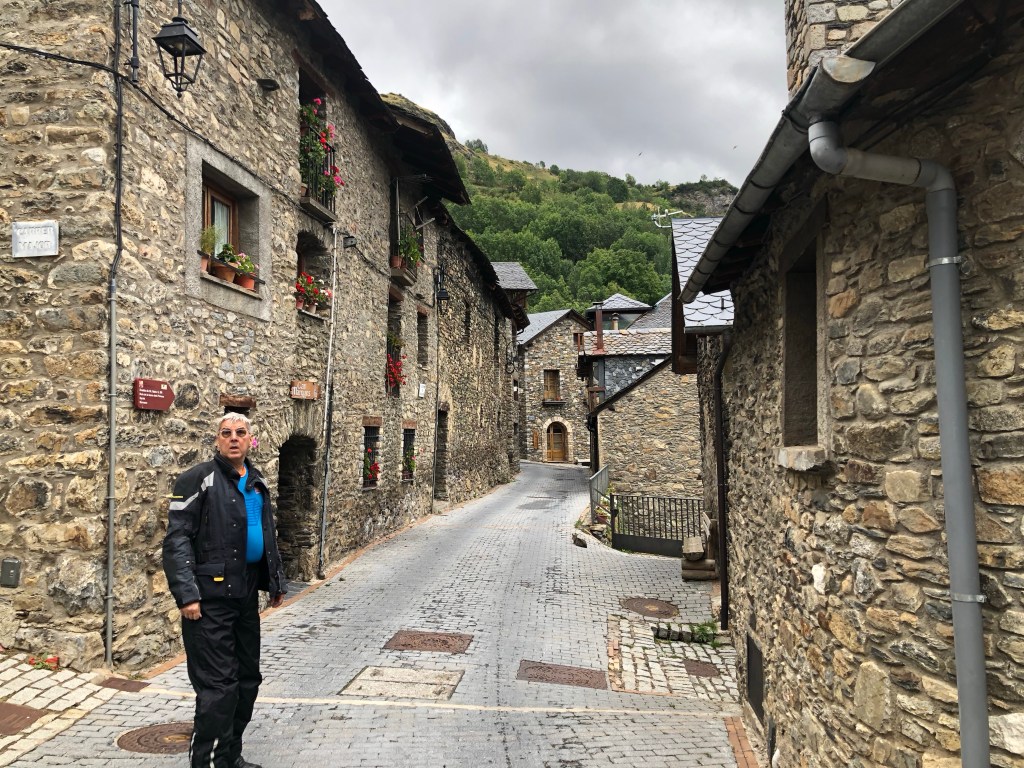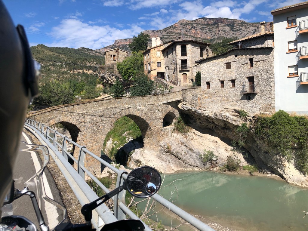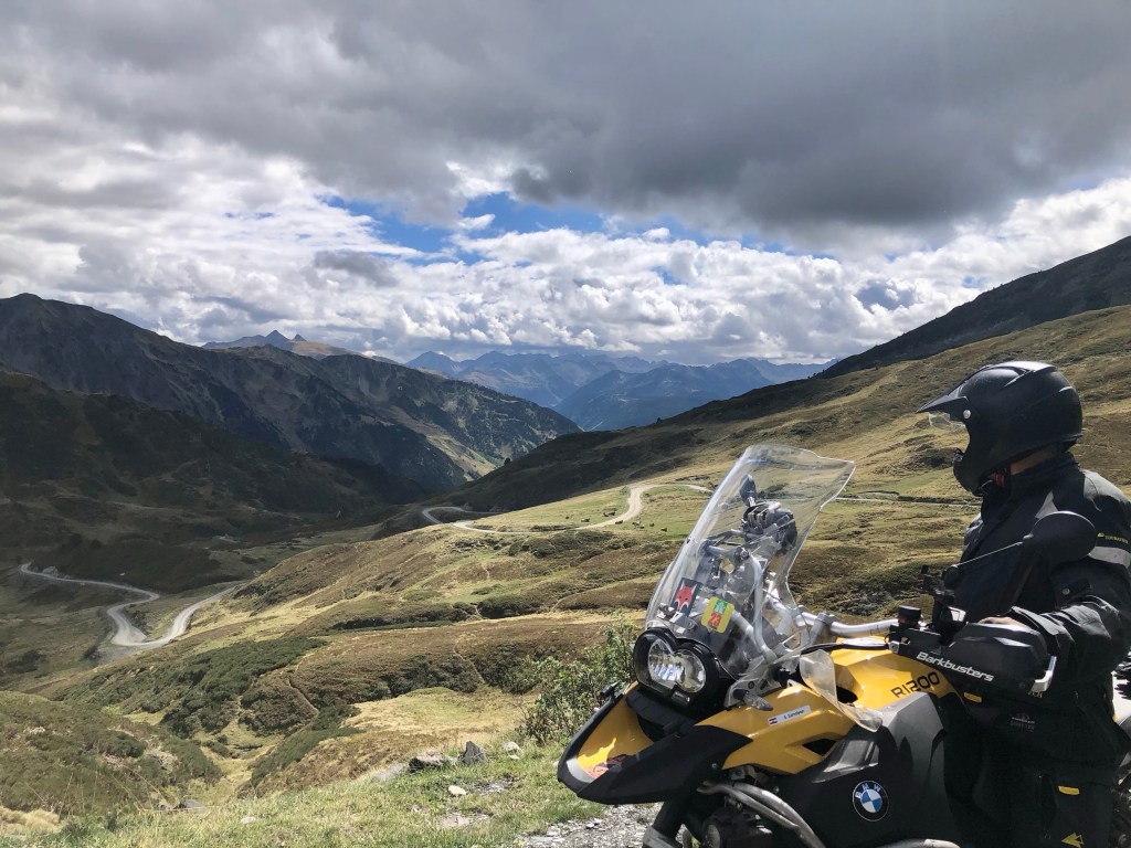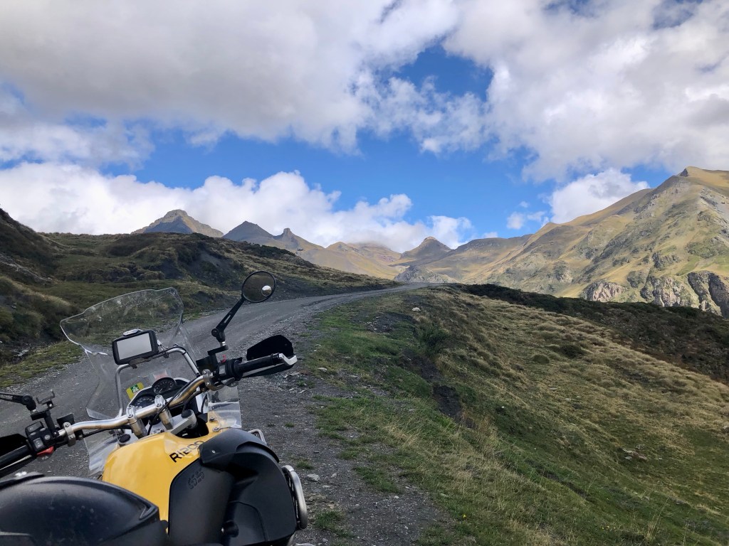 Wie schon gesagt, führt ein Teilstück des ACT auch unweit von Isabena hoch oben in den Bergen im Nationalpark Aigüestortes vorbei. Kurz hinter Vielha ist ein Einstieg zu dieser Strecke. Das konnten wir uns nicht entgehen lassen. Durch den Regen war es angenehm abgekühlt. Ausserdem ging es fast auf 2000m hoch, wo es klimatisch schon erträglicher war. Wir kletterten die schottrigen Serpentinen Kurve um Kurve hoch. Die Ausblicke waren einfach atemberaubend. Wo sollte man nur stehen bleiben, um zu fotografieren? Einige wenige Motorradfahrer waren auch unterwegs. Was für ein Glück, dass ein Spanier ein Video machte, als wir so hochtuckerten.