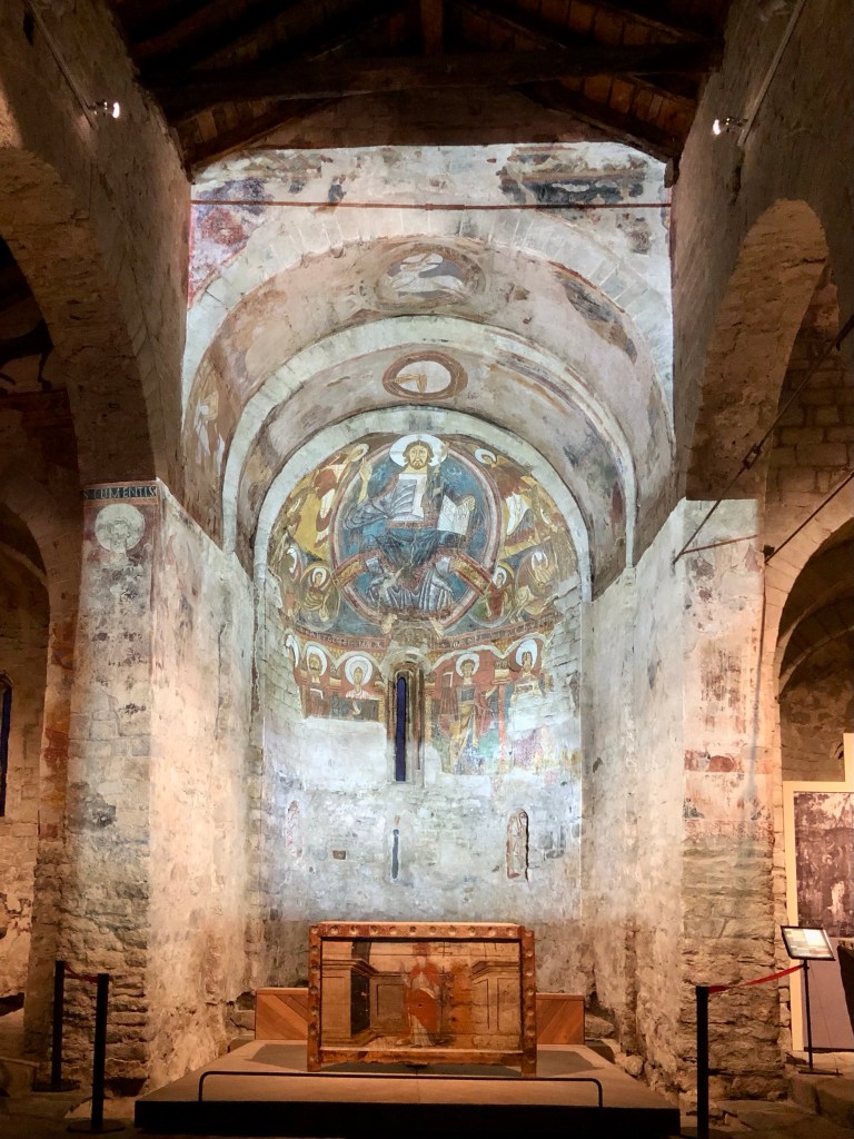 Wenn schon die Natur so „Wow“ ist. Auch die Kunstschätze stehen dem um nichts nach. Das Vall de Boí besteht aus nur wenigen, kleinen Dörfern, die sich auf das rund 200 Quadratkilometer große Tal verteilen. Auch wenn hier nur siebenhundert Menschen leben, gibt es dafür aber gleich acht romanische Kirchen, die allesamt von der UNESCO zum Weltkulturerbe ernannt wurden. Sant Climent in Taüll und La Nativitat de Durro konnten wir besichtigen. Die malerische Ausstattung ist so beindruckend. Ich habe selten so etwas kunstvolles aus dem 11. und 12. Jahrhundert gesehen wie in Taüll. Einige Gemälde wurden bei der Restaurierung abgenommen und sind konservatorisch gesichert im Kirchenraum ausgestellt. Was mir aufgefallen ist, dass viele der romanischen und gotischen Kirchen hier in den Pyrenäen mit musealer Aufstellung punkten. Wenn du die Kirche betrittst, hast du den Eindruck, du bist in einem Museum. Es wird auch meist Eintritt verlangt und es gibt einen strikten Plan für die Öffnungszeiten. Gottesdienste können trotzdem in den Räumen durchgeführt werden. „Wow“ für die romanische Kirchenkunst. Die Kirche in Durro präsentiert barocke Altar-Beispiele in einer ganz anderen Üppigkeit als wir es gewohnt sind. Ich war so was von beeindruckt von den beiden Kirchen. Wer vor hat hier her zu kommen, bitte unbedingt vorher die Öffnungszeiten studieren, denn die anderen sechs Kirchen, die wir nicht besuchen konnten, sind sicher genauso herausragende Kulturdenkmäler.