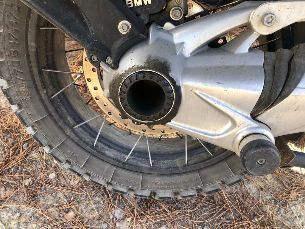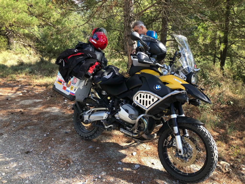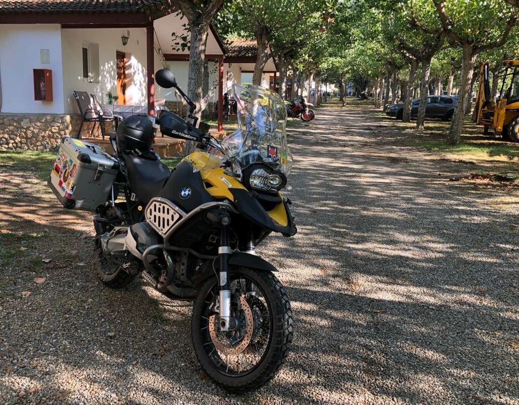 132 km waren geschafft. Weiter ging es nach Huesca und das natürlich nicht auf direkter Strecke. Unser neuer Meister Garmin – ja auch der wurde erneuert, nicht nur der Bock – der „neue Freund“ verfügt auch über ein Portfolio an Kartenmaterial, das für Überraschungen sorgen kann. So landeten wir auf der HU-300, eine offizielle nicht geplante superige Schotterstraße. Einerseits war das gut, andererseits aber wieder nicht. Denn bei einer kurzen Pause entdeckten wir üble Ölspuren im Kardanbereich am Bock, die dort nicht sein hätten dürfen. Nach unseren Erfahrungen in der Türkei letztes Jahr, war uns etwas mulmig bei dem Gedanken, dass mit dem Kardan etwas nicht stimmt. Wir fuhren gemächlich und behutsam auf die nächste Schnellstraße, denn in Huesca sollte es eine Werkstatt geben. Und es gab sogar eine offizielle BMW-Werkstatt. Der Mechaniker hatte den Fehler sofort ausgemacht. Der Bock musste über Nacht und am nächsten Vormittag in der BMW-Klinik bleiben. Ein Dichtungsring war gebrochen, keine große Sache, wenn es rechtzeitig entdeckt wird. So gesehen war es gut, dass wir die Pause auf der Schotterstraße machten und den Schaden entdeckt hatten. Nächtigen wollten wir sowieso in Huesca, also war keine Planänderung nötig.