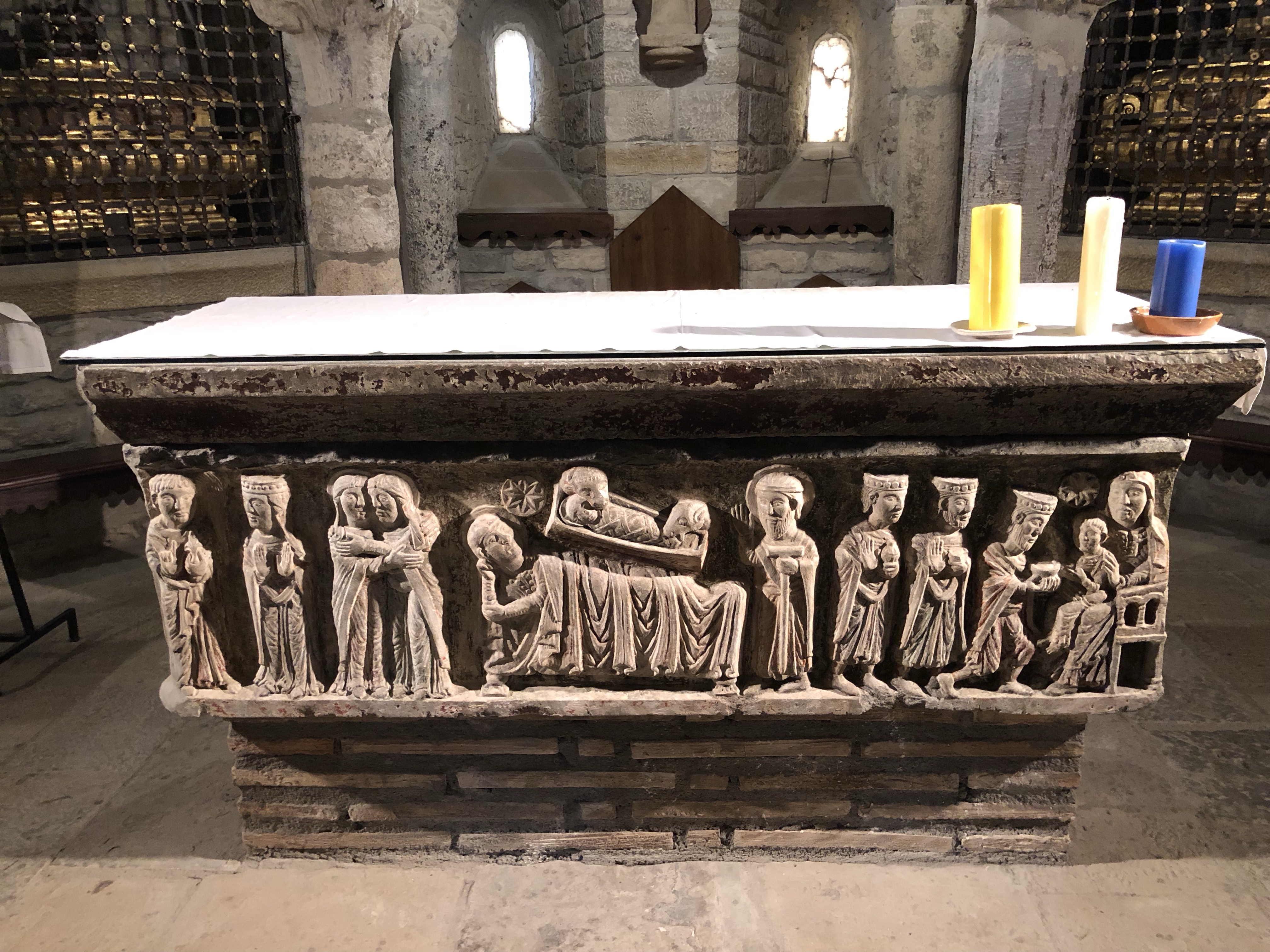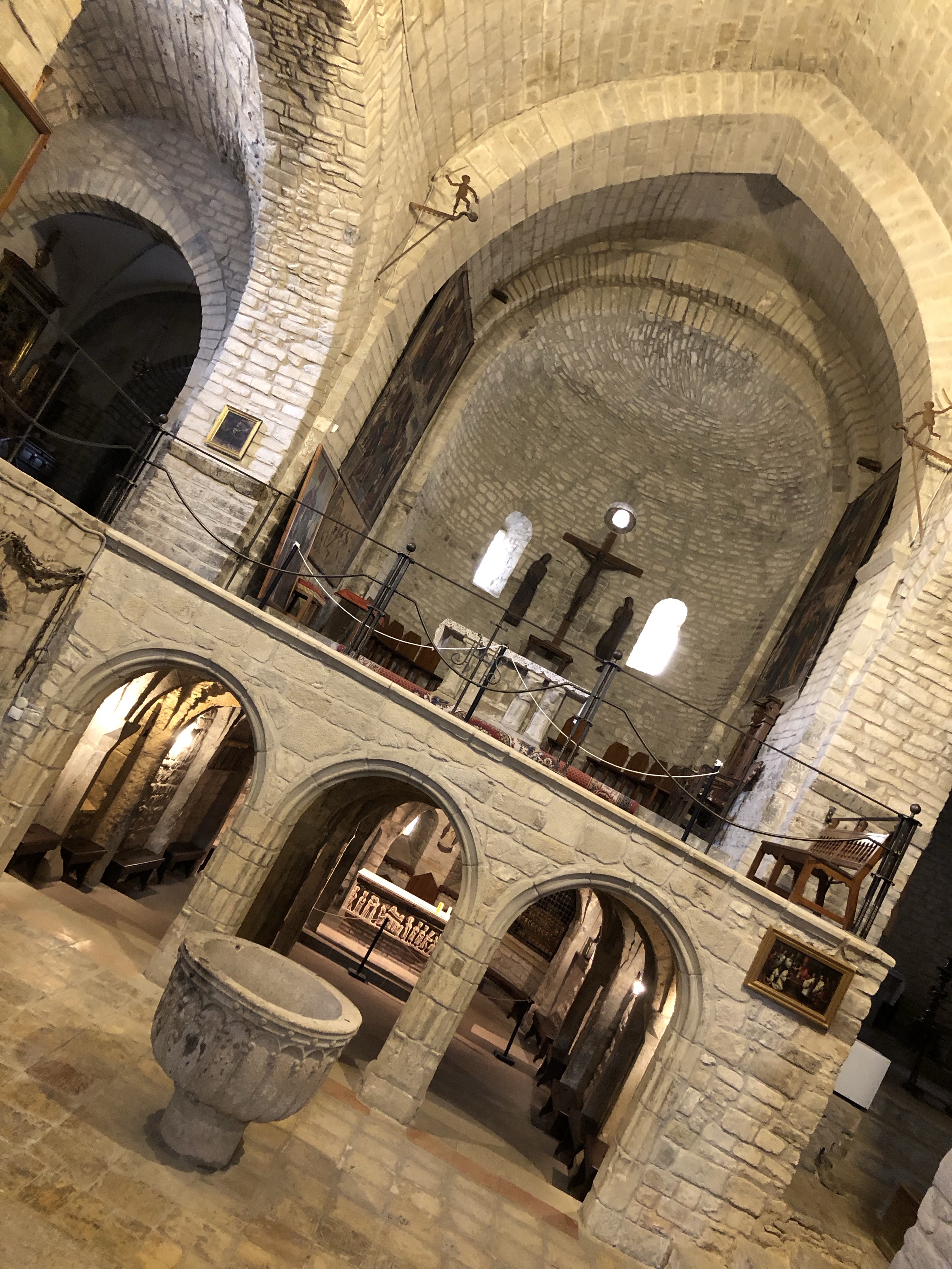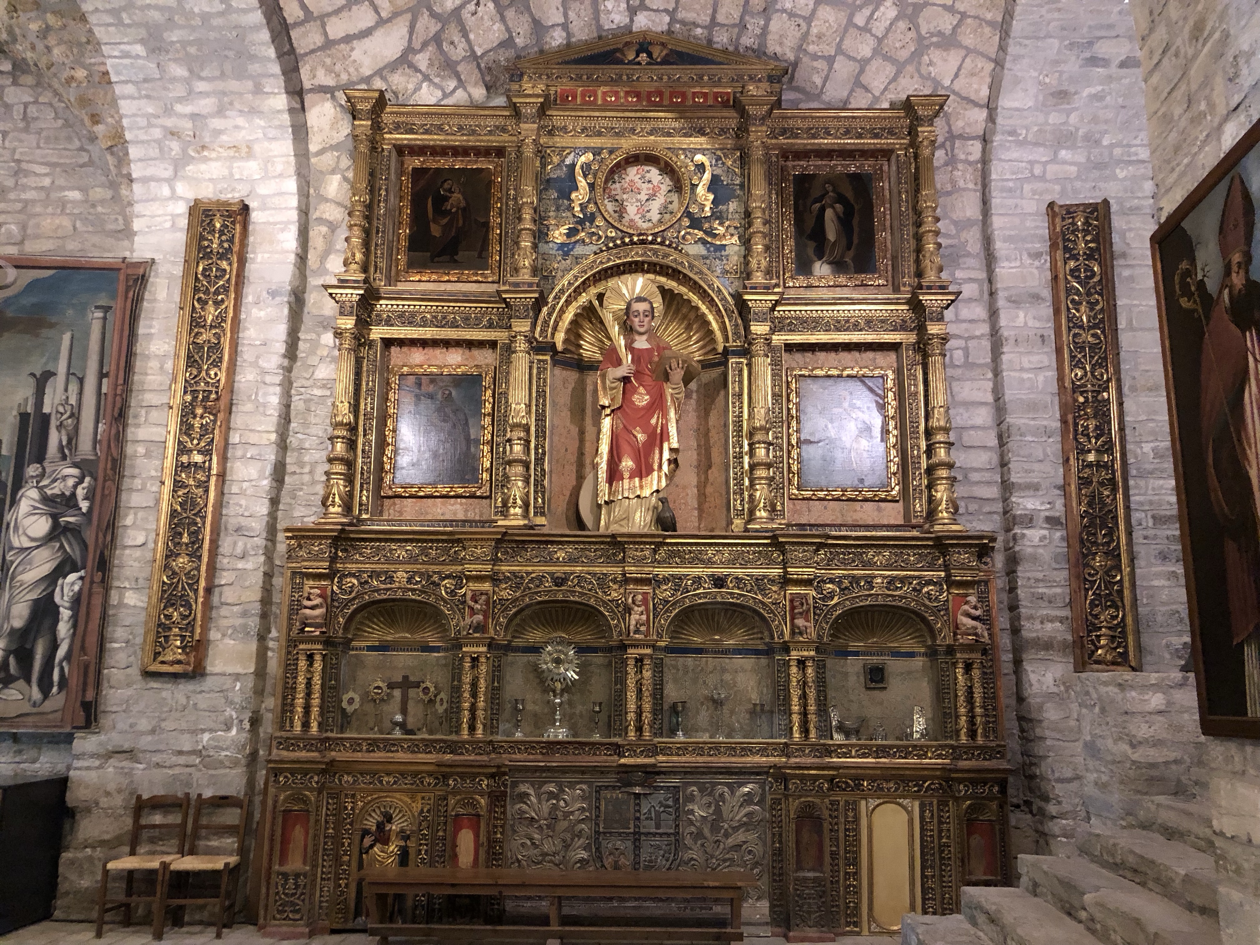 Auf unserer weiteren Route kreuzen wir immer wieder den Jakobsweg. Eine Pilger-Herberge liegt gleich um die Ecke in Roda de Isabena. Der Ort gehört zu der Vereinigung „Los pueblos mas bonitos de Espana“ (die schönen Dörfern Spaniens). Ehemals befand sich hier ein Bischofssitz. Die prächtige Kirche San Vicente und der Kreuzgang erinnern noch heute an die ehrwürdigen Zeiten zwischen dem 9. und 11. Jahrhundert. Als Warnung für die Pilger lugt ein gewitztes Teufelchen über dem Portal auf die Kirchenbesucher herab. Mit 37 Einwohnern ist Roda de Isabena heute der kleinste Ort Spaniens mit einer Kathedrale.