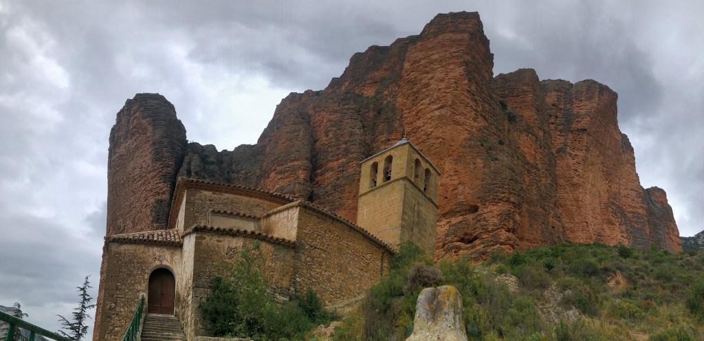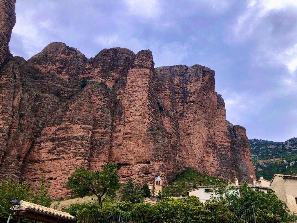 Der Werkstattleiter hatte Recht, dass es Regen geben würde. Zwar erwischte uns der Regen erst beim Naturdenkmal Mallos de Riglos – einer spektakulären geologischen Felsformation, die viele Schaulustige, Wanderer und Kletterer anlockt.