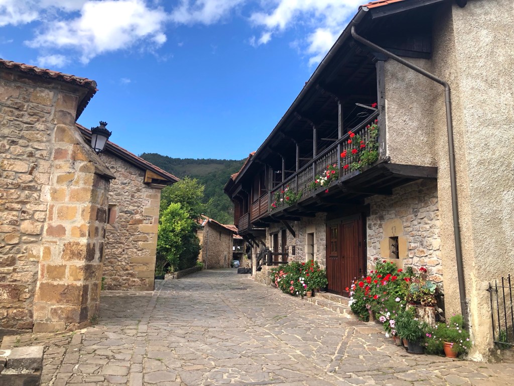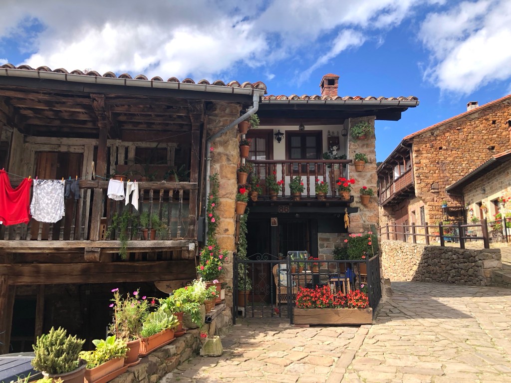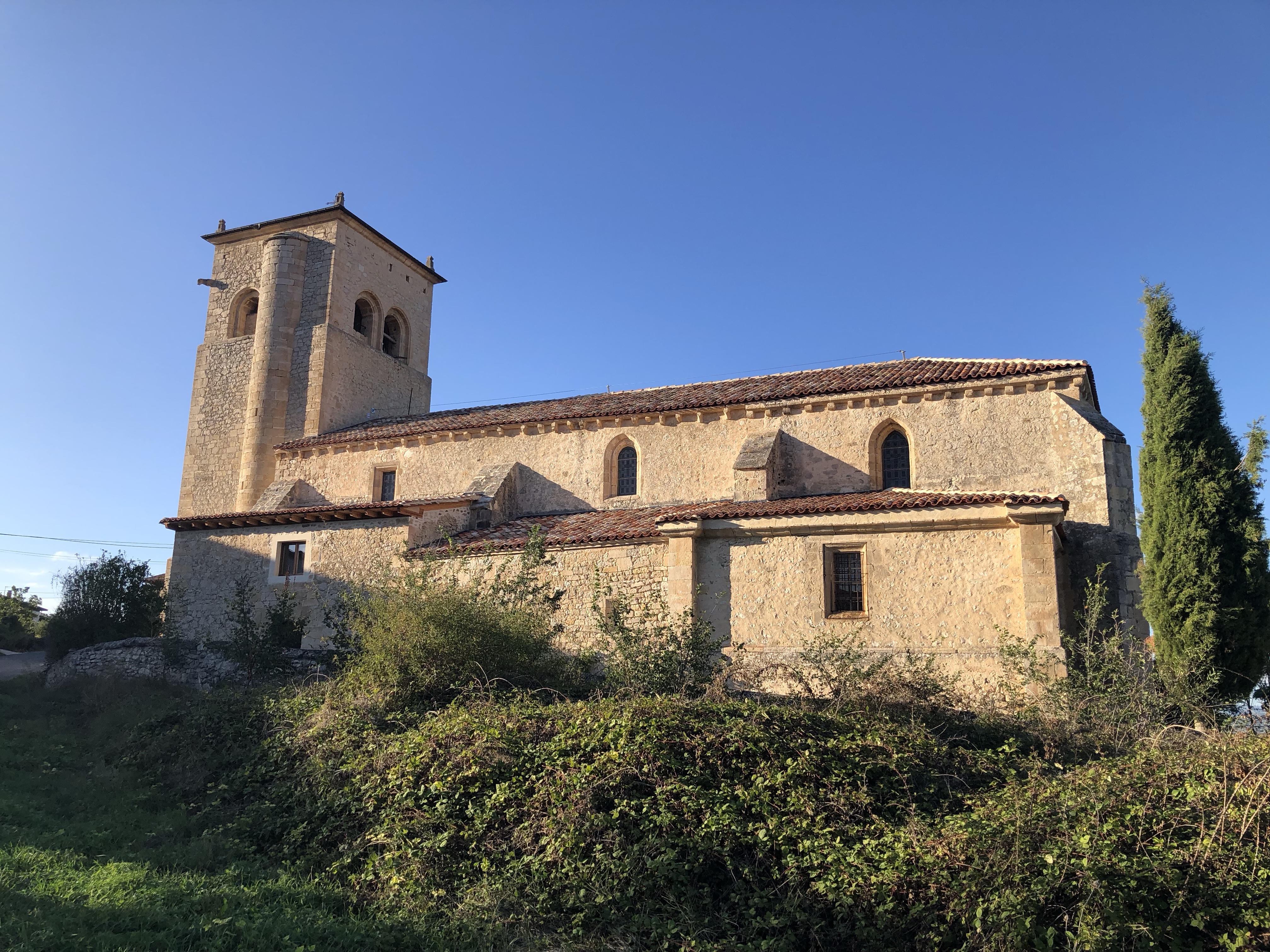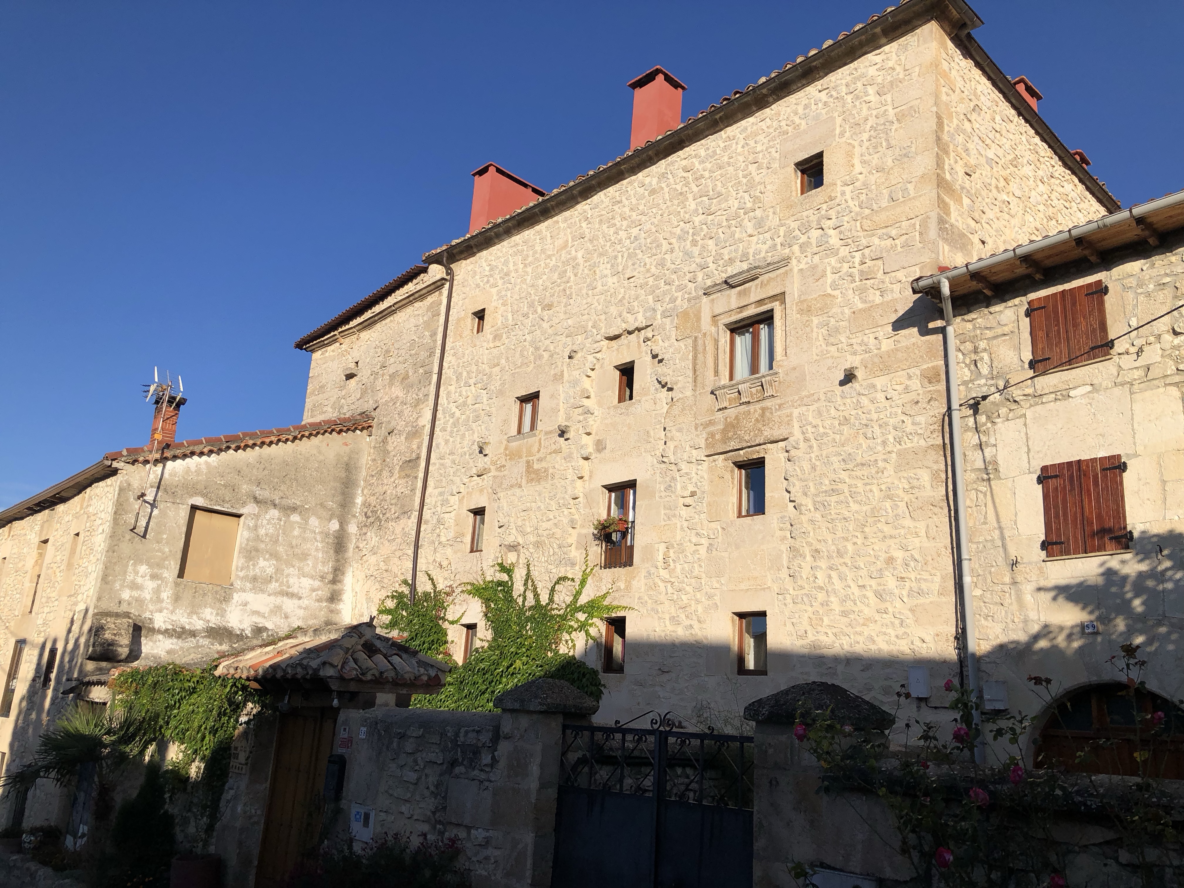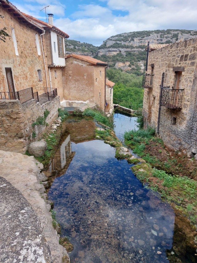 Letztendlich kamen wir bei Sonnenschein in Bisjuesces an. Noch nie gehört? wir kannten das kleine Dorf auch nicht. Wir hatten es nur ausgewählt, weil es dort ein passables Quartier, das unseren Preisvorstellungen entsprach gab und auf unserer weiteren Fahrstrecke lag. Nun die Übernachtung hatte sich gelohnt. Die Pension war in einem alten Torre untergebracht, sehr schön renoviert, gute Küche und extrem ruhige Lage. Ausserhalb der Sommermonate wohnen in Bisjuesces nur ca. 37 Personen, also wirklich kein Hotspot. Etliche Häuser stehen zum Verkauf, was nicht verwunderlich ist. Was macht man in so einer verlassenen Gegend? Vielleicht Homeoffice, aber sonst, eventuell Viehzucht, Gemüseanbau wird bei der anhaltenden Trockenheit schon etwas schwieriger. Aber es gibt doch etwas interessantes über den Ort zu berichten, war er einst die erste Hauptstadt von Kastilien. Die örtliche Kirche Johannes des Täufers – die sogenannte „Richterkirche“ – zeugt von der Macht und der Bedeutung im 9. Jahrhundert. Laut der Überlieferung gab es damals zwei eigenständige kastilische Richter, um den Gang zum Gericht nach Leon zu vermeiden. In der prächtigen Vorhalle, aus dem 16. Jahrhundert, sind die beiden Figuren der Richter abgebildet. Angeblich gab es auch ein Bankhaus in der Stadt. Glanz und Glorie sind längst verblasst. Heute freut man sich, wenn sich doch der eine oder andere Tourist dort hin verirrt.