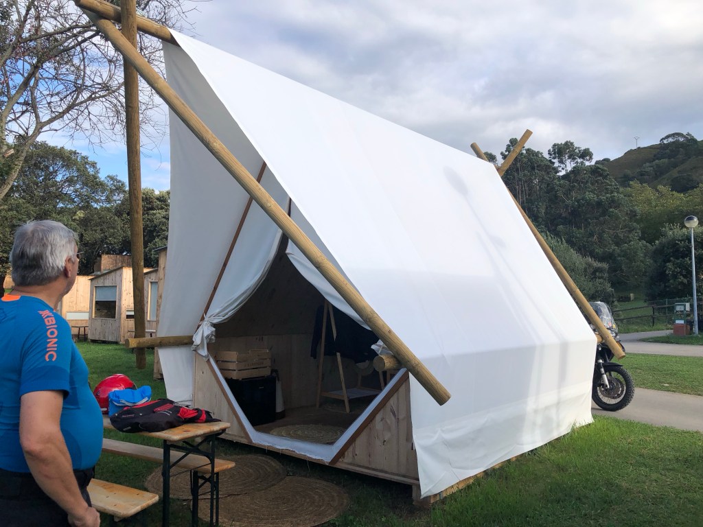 Immer wieder werden wir gefragt, ob wir mit dem Zelt reisen. Bis jetzt haben wir das tunlichst vermieden. Aber ausprobieren kann man es ja. Heutzutage muss man dazu nicht gleich die ganze Ausrüstung kaufen, sondern kann ein Zelt einfach am Campingplätzen mieten. Und das haben wir gemacht.