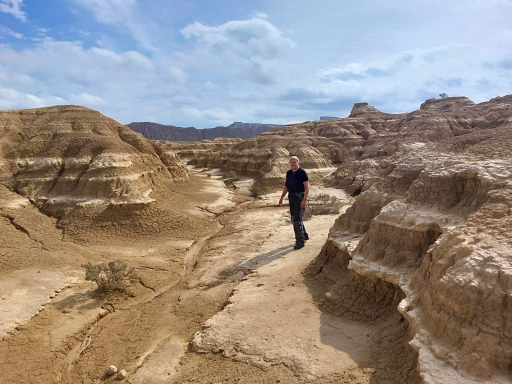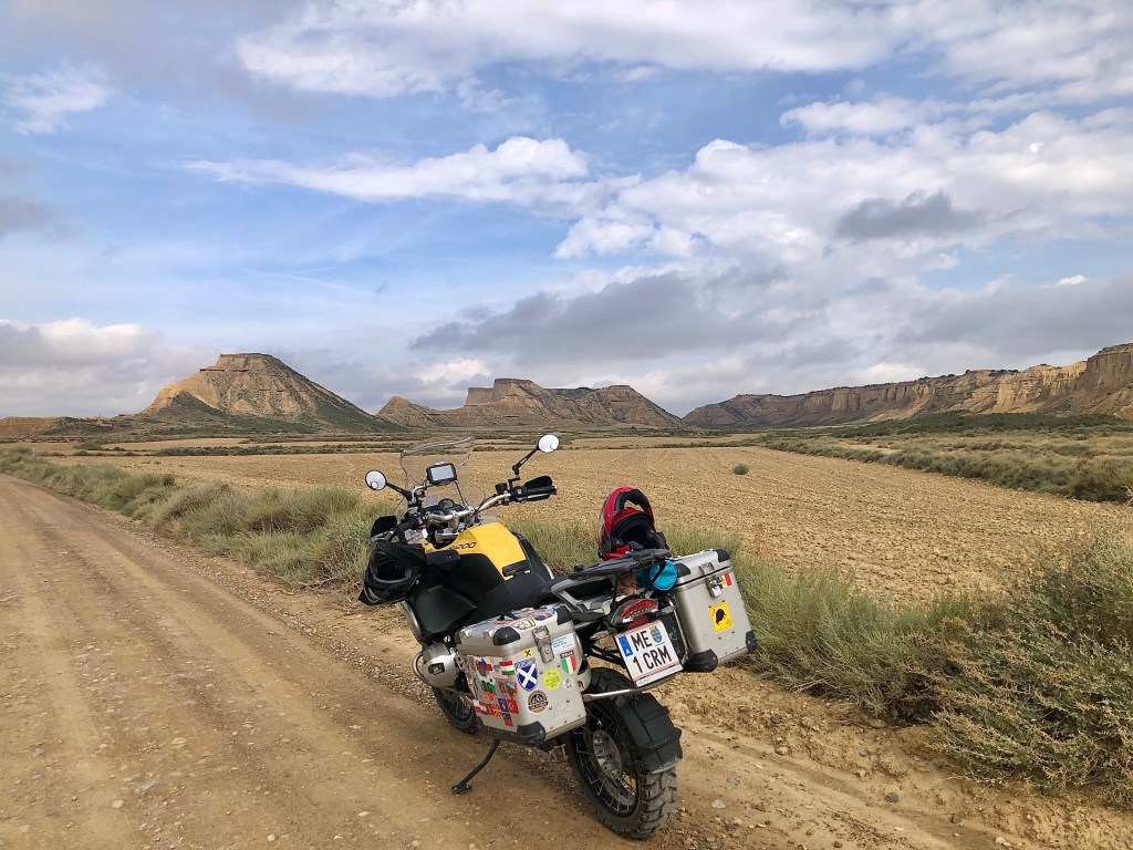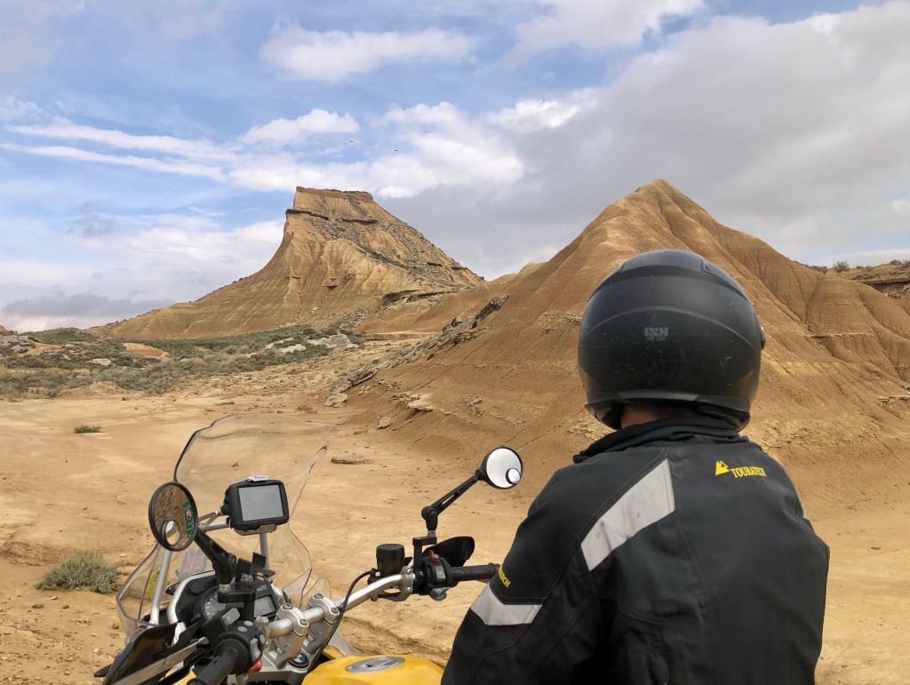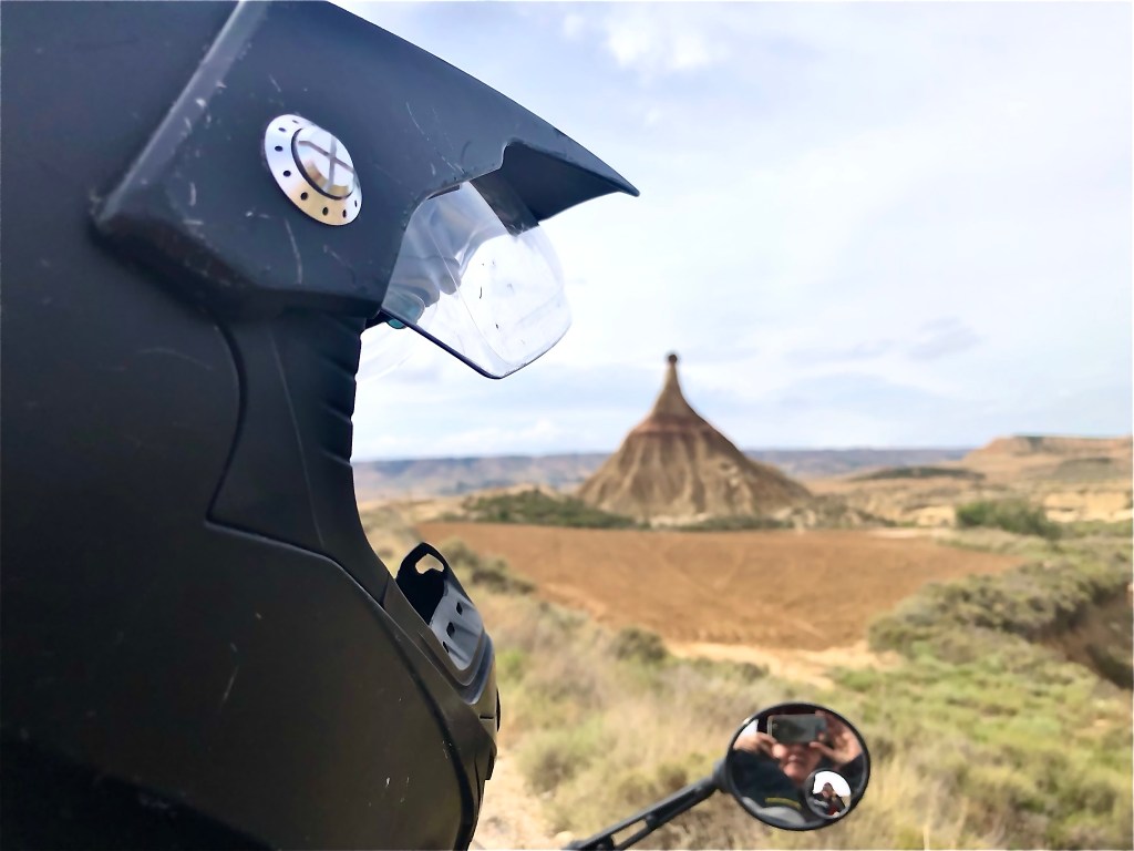 Bei so einer Reise kommt man ganz schön herum! Zum Beispiel liegt El Paso von Arizona knappe 700 km entfernt. Jetzt fragt ihr euch warum, wir plötzlich in Amerika gelandet sind? Wie schon gesagt, einmal falsch abgebogen und tschak ist alles ganz anders. Wir landeten vor einigen Tagen in den Bardenas Reales, einer Halbwüste, auf der Straße nach El Paso. Gott sei Dank hatte es am Vortag geregnet, denn durch die Bardenas führen Schotterpisten. Nicht vorzustellen, wie staubig die Fahrt dann gewesen wäre. Der Nationalpark ist öffentlich zugänglich, man muss sich nur eine Landkarte am CheckPoint abholen. Kostet auch nichts. Eigentlich hätte die Strasse nach El Paso gesperrt sein sollen, bzw. war sie ja auch, weil die Regenfälle einen Abschnitt unterspült hatte. Aber mit dem Bock und kleineren Fahrzeugen war die Umfahrung gut zu durchfurten. Nun, die Bardenas Reales sind eine unglaubliche Landschaft etwas südöstlich von Pamplona. Die lehmigen bizarren Formationen und die Weite der Landschaft katapultieren die Besucher in eine Phantasiewelt. Alles kann in die Schluchten, Wüsten und Hügel rein interpretiert werden. Manchmal sind es nur Mikrolandschaften, die in Großaufnahme ganz spannende Gegenden suggerieren. Solltet ihr in die Gegend kommen, die Bardenas dürft ihr euch nicht entgehen lassen. Wir verbrachen etliches Stunden in dem Biosphärenpark. Für Fotographen und Filmschaffende muss das ein El Dorado sein. Wir fühlten uns in die Canyons und Wüsten Amerikas versetzt.