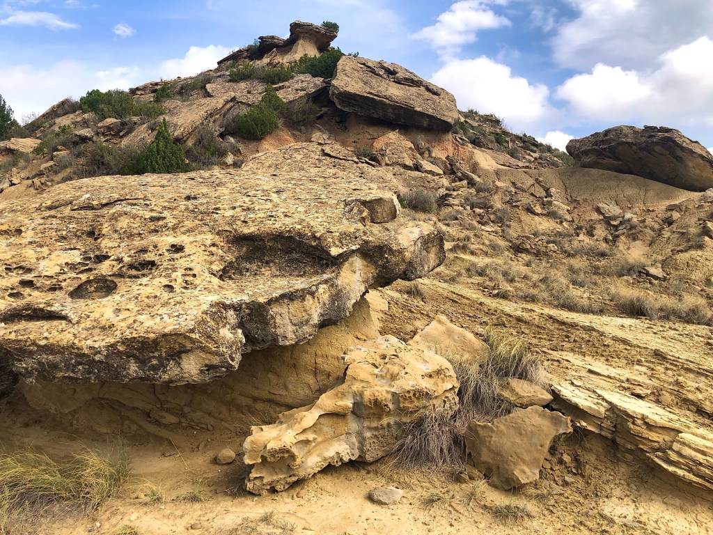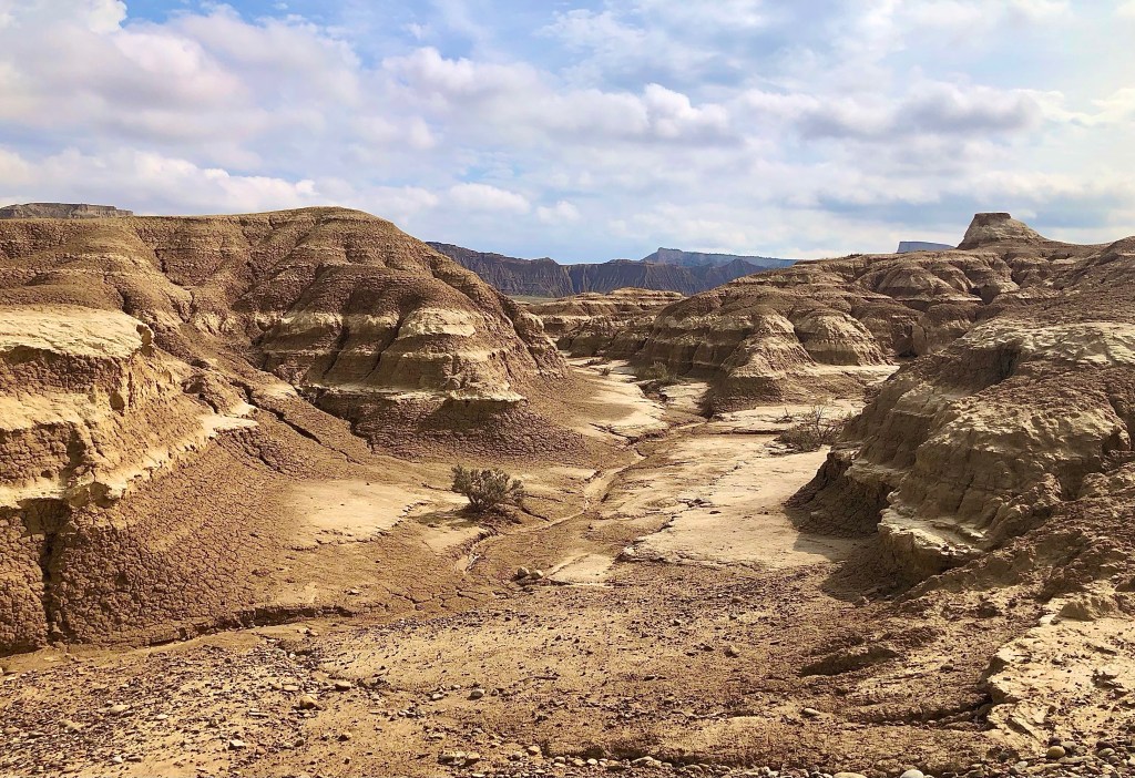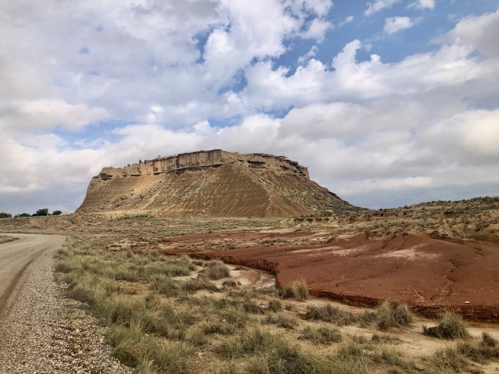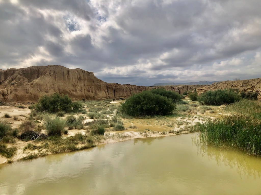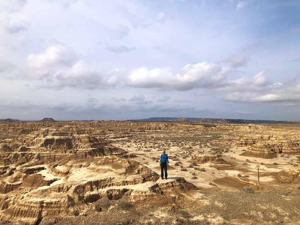Bei so einer Reise kommt man ganz schön herum! Zum Beispiel liegt El Paso von Arizona knappe 700 km entfernt. Jetzt fragt ihr euch warum, wir plötzlich in Amerika gelandet sind? Wie schon gesagt, einmal falsch abgebogen und tschak ist alles ganz anders. Wir landeten vor einigen Tagen in den Bardenas Reales, einer Halbwüste, auf der Straße nach El Paso. Gott sei Dank hatte es am Vortag geregnet, denn durch die Bardenas führen Schotterpisten. Nicht vorzustellen, wie staubig die Fahrt dann gewesen wäre. Der Nationalpark ist öffentlich zugänglich, man muss sich nur eine Landkarte am CheckPoint abholen. Kostet auch nichts. Eigentlich hätte die Strasse nach El Paso gesperrt sein sollen, bzw. war sie ja auch, weil die Regenfälle einen Abschnitt unterspült hatte. Aber mit dem Bock und kleineren Fahrzeugen war die Umfahrung gut zu durchfurten. Nun, die Bardenas Reales sind eine unglaubliche Landschaft etwas südöstlich von Pamplona. Die lehmigen bizarren Formationen und die Weite der Landschaft katapultieren die Besucher in eine Phantasiewelt. Alles kann in die Schluchten, Wüsten und Hügel rein interpretiert werden. Manchmal sind es nur Mikrolandschaften, die in Großaufnahme ganz spannende Gegenden suggerieren. Solltet ihr in die Gegend kommen, die Bardenas dürft ihr euch nicht entgehen lassen. Wir verbrachen etliches Stunden in dem Biosphärenpark. Für Fotographen und Filmschaffende muss das ein El Dorado sein. Wir fühlten uns in die Canyons und Wüsten Amerikas versetzt.