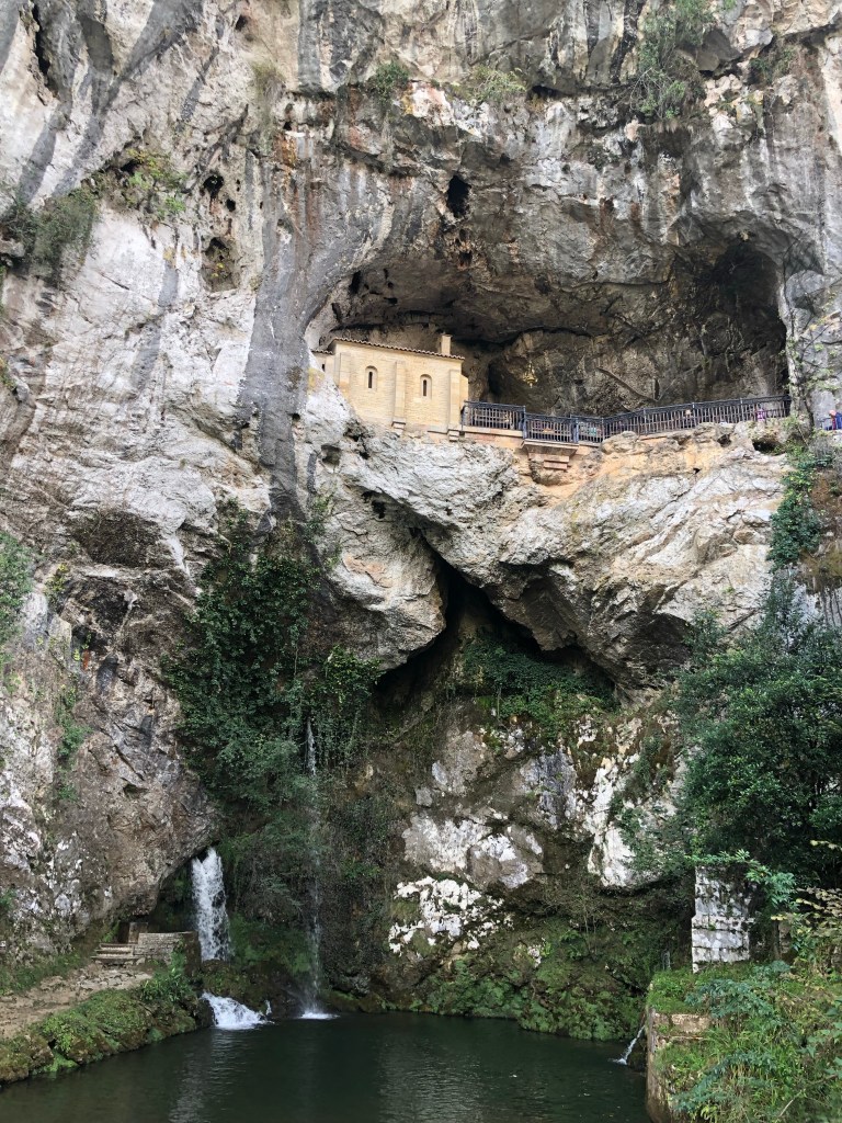 Eigentlich wollten wir zum Covadonga See fahren, was in der Hauptsaison (September gehört da noch dazu) nur per Taxi möglich ist. Das wussten wir nicht. Daher haben wir der Basilika und der Felsenkirche einen schnellen Besuch abgestattet. In einer Schlacht gegen die Mauren wurde durch himmlisches Eingreifen das Marienheiligtum geschützt und führte den Sieg herbei. Daher wurde Covadonga ein Marien-Wallfahrtsort. Der „Jungfrau von Covadonga“ wurde eine Basilika errichtet. Es gibt den Glauben, dass junge Frauen, die aus dem Fuente del Matrimonio in Covadonga trinken, bald heiraten werden. Vielleicht hilft es ja wirklich.