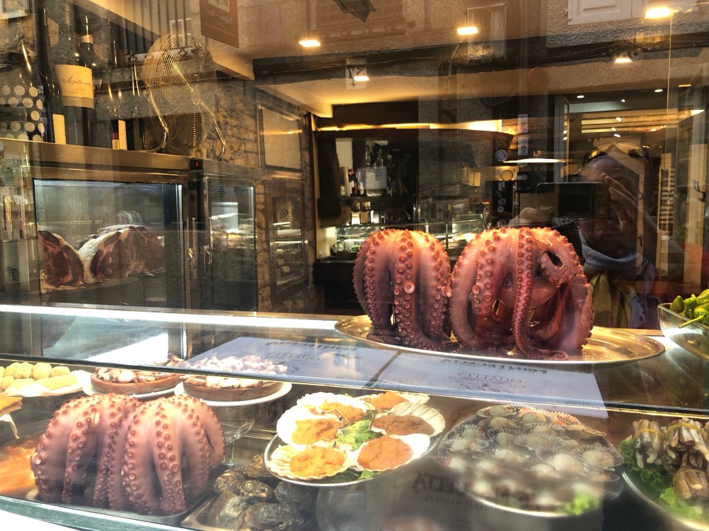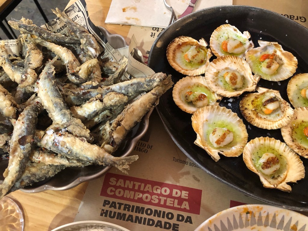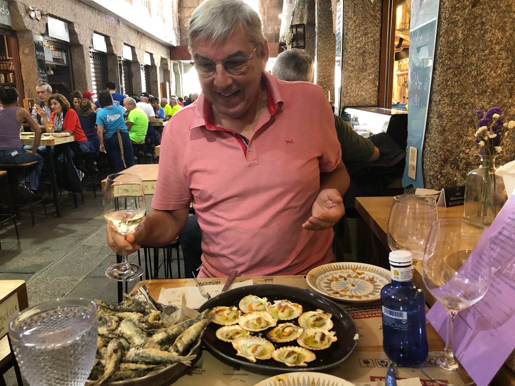 Danach schlenderten wir noch in der Stadt herum, deren Zentrum ein einziger großer Souvenierladen und ein Wirtshaus ist. Etwas abseits landeten wir in den Markhallen, die natürlich auch kein Geheimtipp in Santiago sind, aber sie boten ein spezielles Markt-Flair, das wir auch am Kutschkermarkt in Wien sehr schätzen. Und dann wurde die „schmale“ Pilger-Brieftasche aufgemacht und geschlemmt. Wir hatten´s und verdient. Unser Jakobsweg war geschafft.