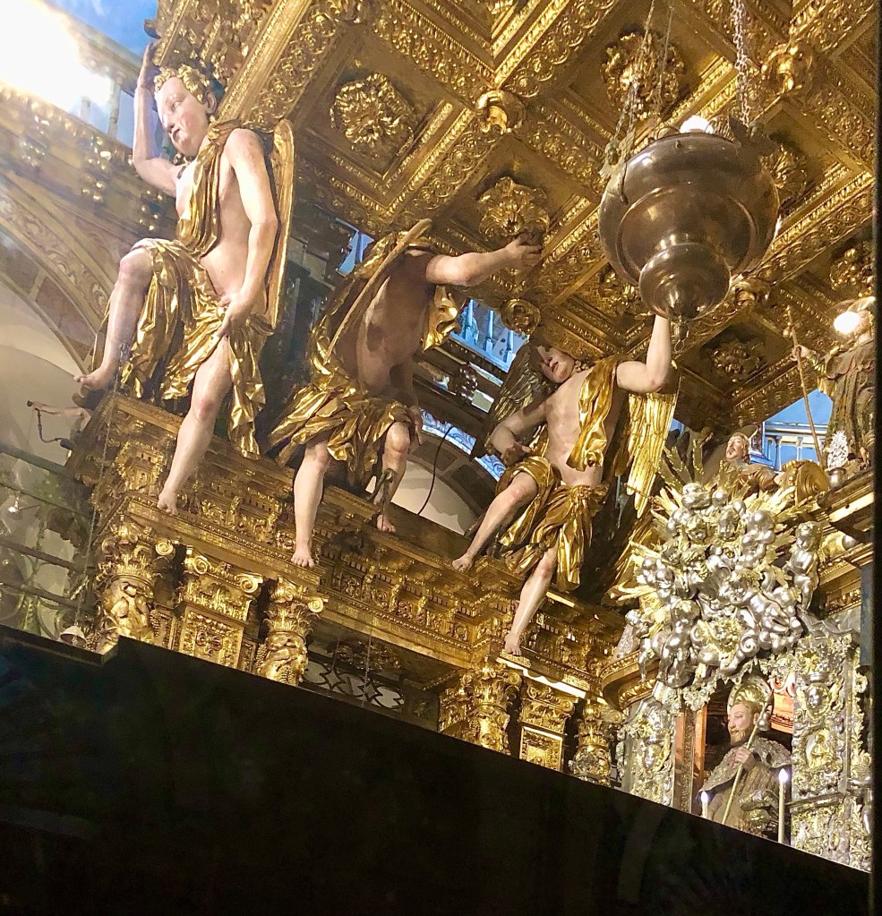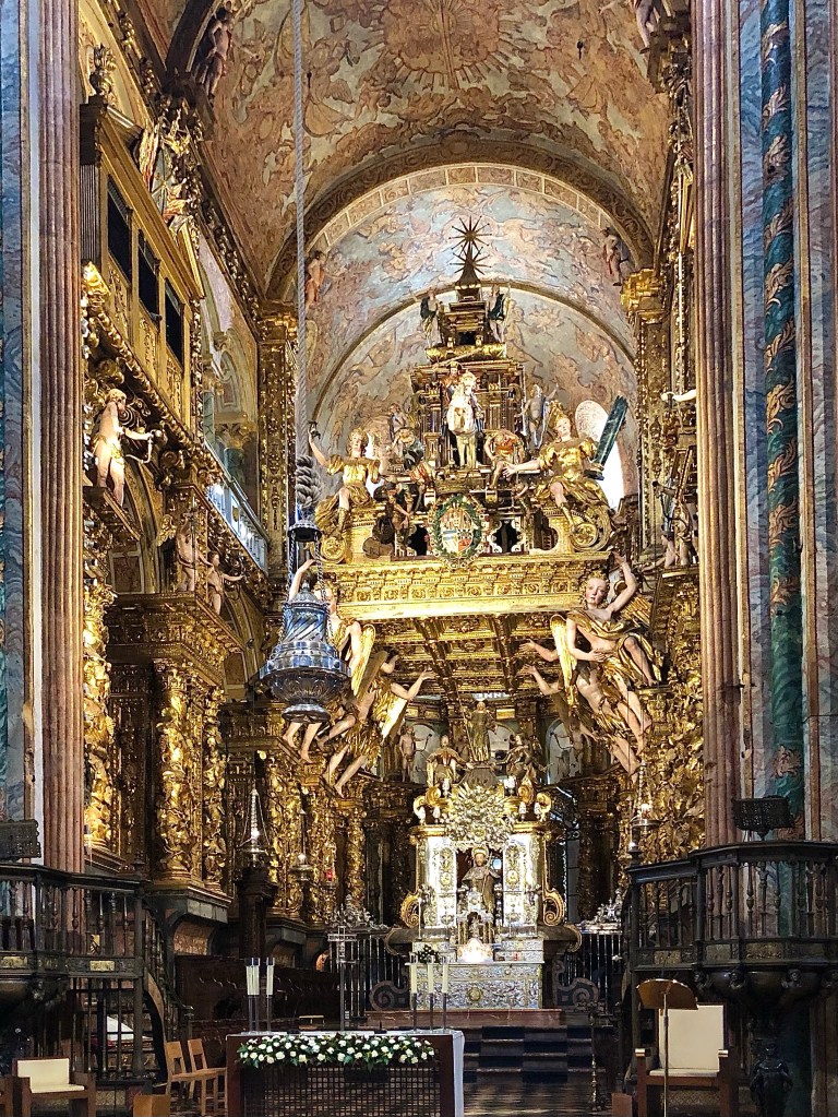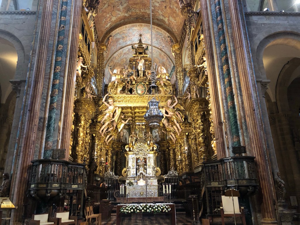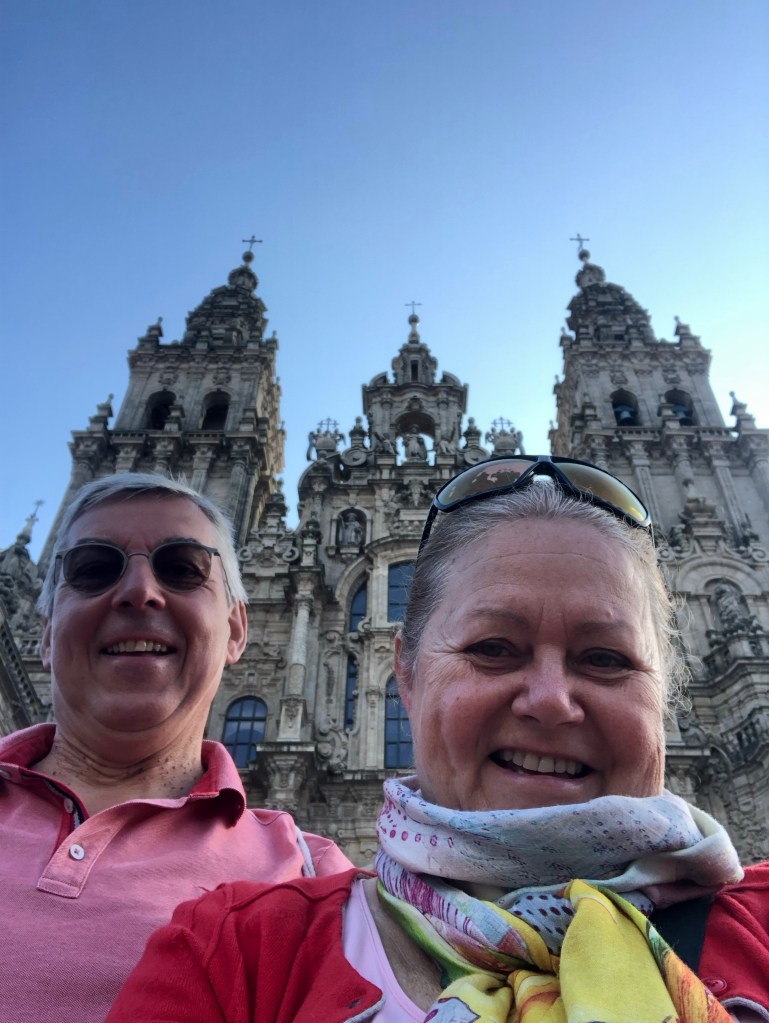 Die Strapazen einer Reise kennen wir schon gut, das war nichts Neues für uns. Um voran zu kommen, müssen Tagesetappen zurückgelegt werden. Das Gepäck muss auch am Motorrad wohl überlegt sein. Am wichtigsten sind gute Schuhe und gute Bekleidung für jede Witterung. Freundliche hilfsbereite Menschen trifft man sowieso überall, zumindest ist das unsere Erfahrung. Alle, die sich auf den Jakobsweg auf machen, egal ob per pedes, mit dem Fahrrad, dem Motorrad oder sonst wie, haben ein persönliches Motiv, warum sie das machen. Wichtig für jeden Pilger ist, in Santiago de Compostela beim Grab des Heiligen Jakob anzukommen und den eigenen Weg geschafft zu haben. Und ehrlich gesagt, es war für mich auch ein magischer Moment, als wir gemeinsam so auf dem Platz vor der Kirche standen, endlich in Santiago de Compostela angekommen zu sein. Um 12:00 Uhr fand die Pilgermesse statt. Das Kirchenhaus war gut gefüllt und eine gewisse von Dankbarkeit getragene Glückseligkeit der Pilger erfüllte den Raum. Feierlich und pompös wurde die Messe zelebriert. Sogar der Botafumeiro, ein über 1,50m hohes und 53 Kilo schweres Weihrauchgefäß wurde durch die Seitenschiffe mit 65 km/h von acht Messdienern geschwungen. Das war nicht alltäglich. Alles war überaus beeindruckend und feierlich.