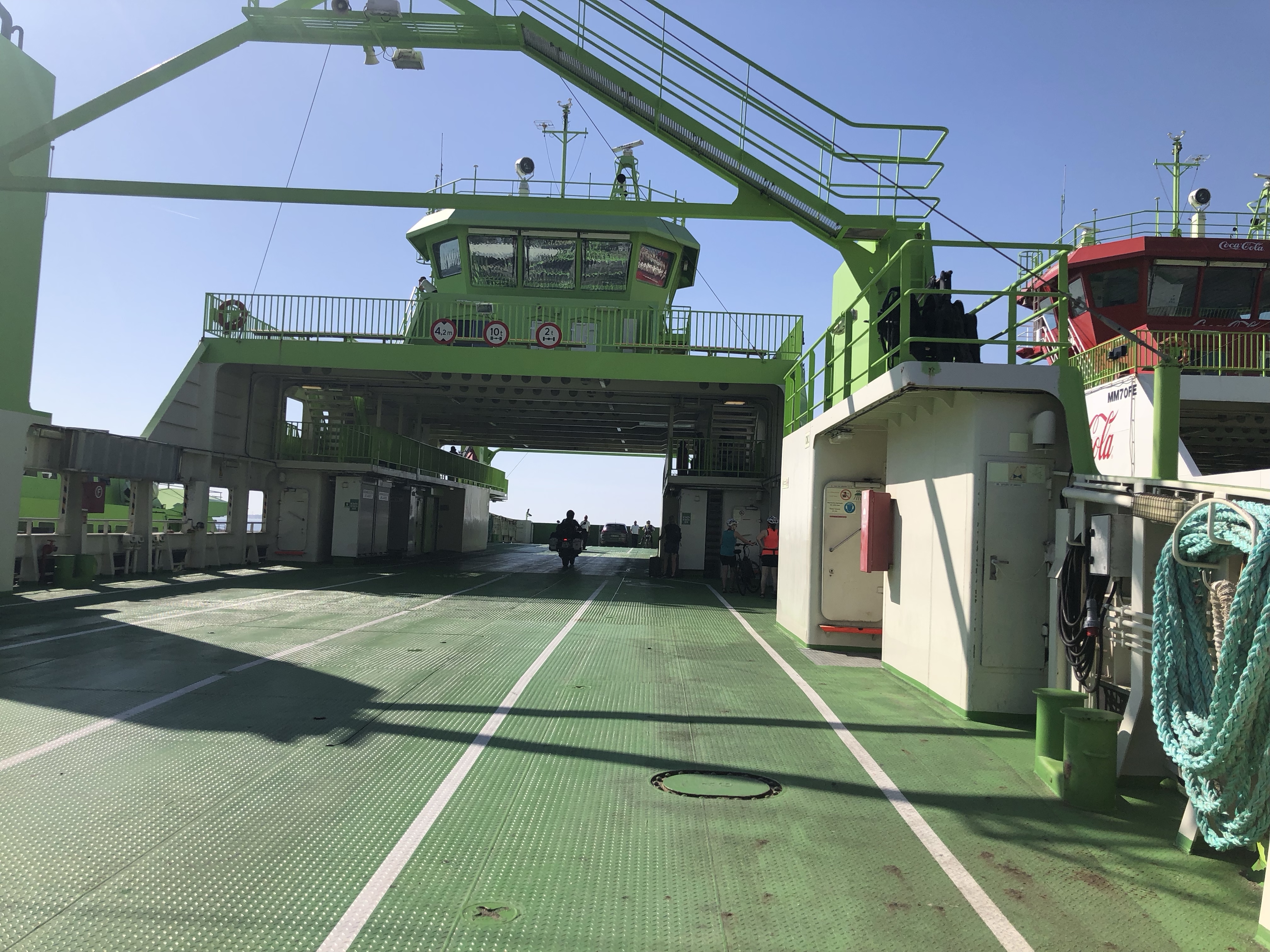 Gemütlich setzten wir mit der Fähre über und fuhren zwischen Dünen, Olivenbäumen und Korkeichen dahin.