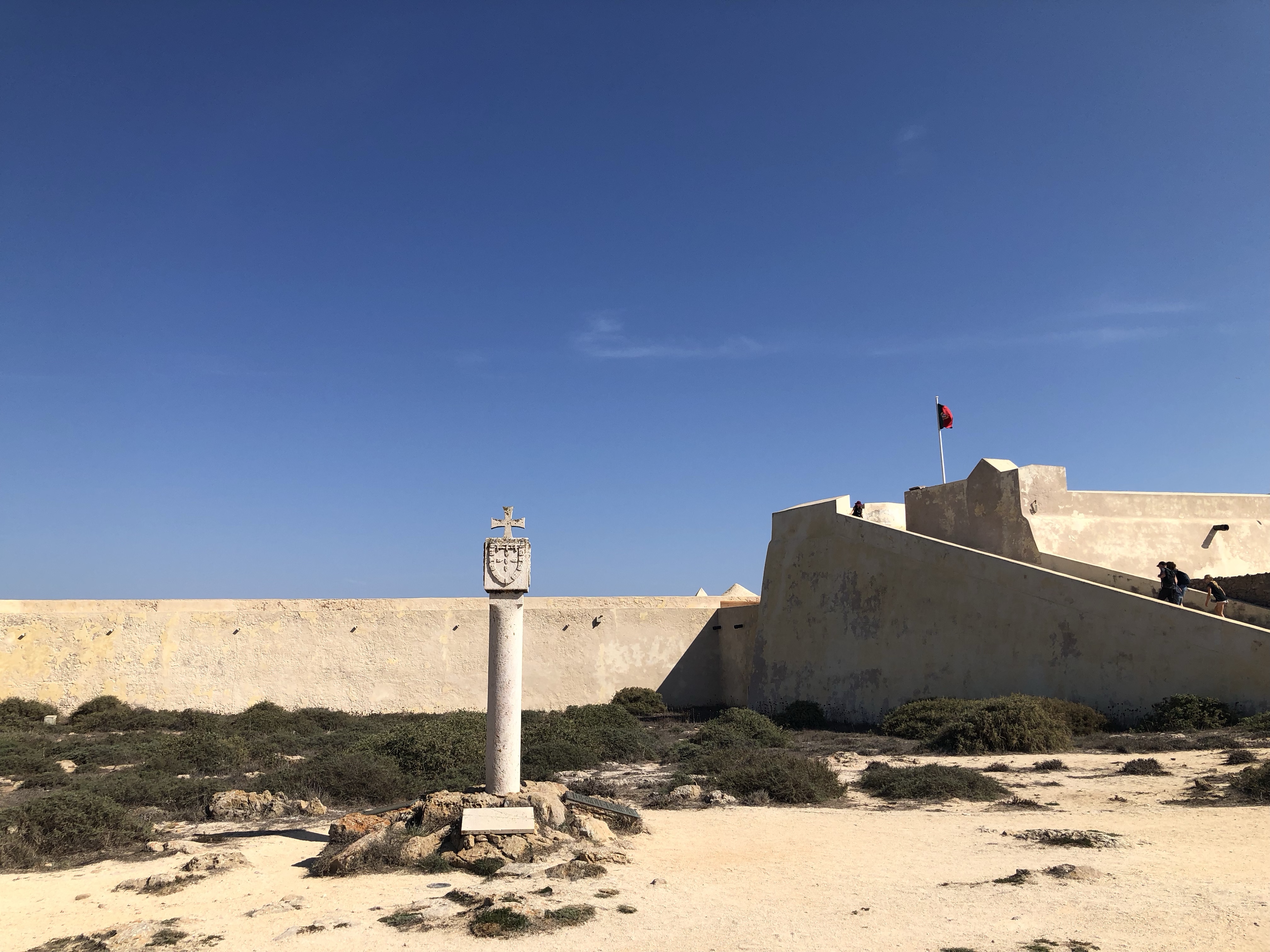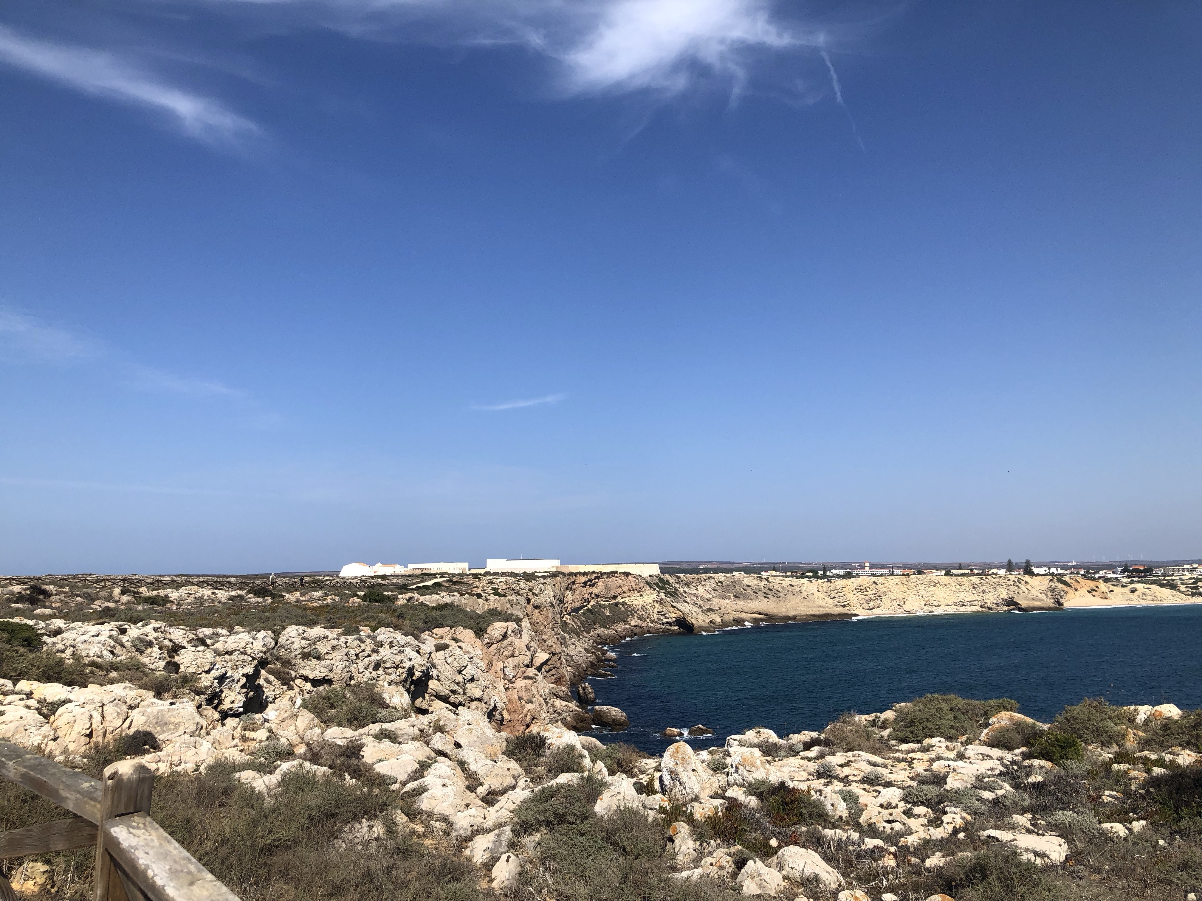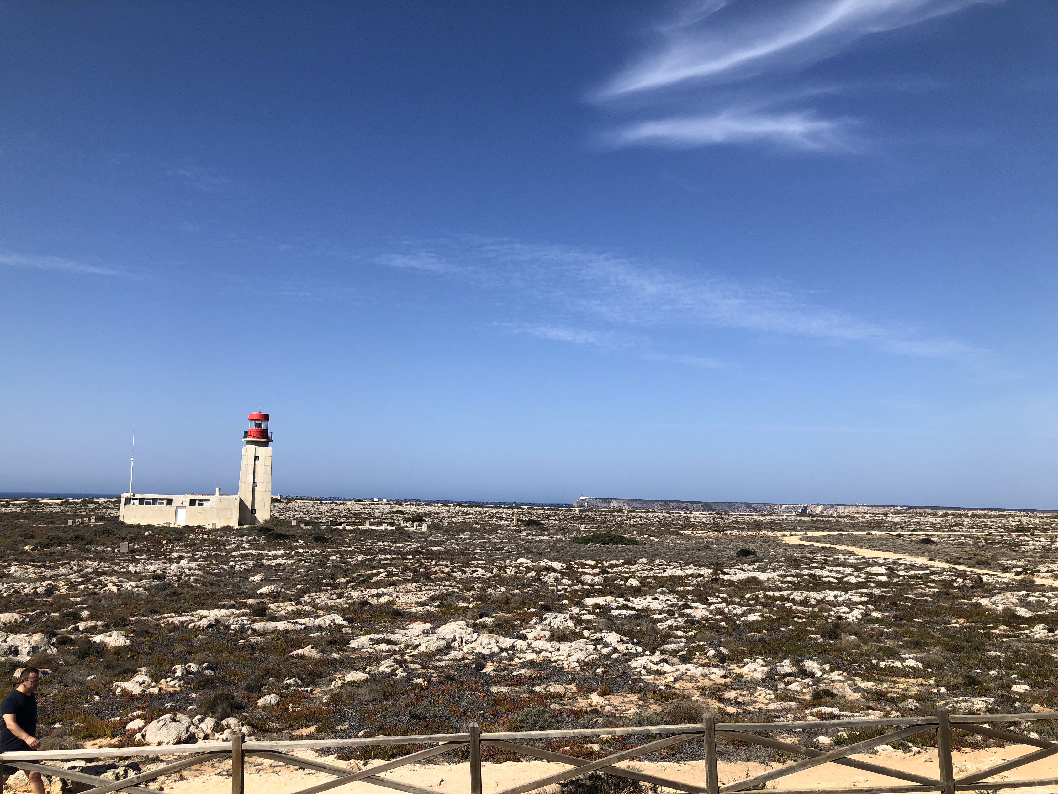 Bis zum Ende der Welt fuhren wir am nächsten Tag weiter. Das Cabo Sao Vincent ist der Südwestlichste Punkt von Portugal und vom europäischen Festland. Die Römer nannten es Heiliges Vorgebirge. Sie glaubten, dass an diesem magischen Ort die Götter wohnen und die Sonne im Meer versinkt. Bis zu 70m fällt die Steilküste zum Meer ab. Die Schiffe halten einen respektablen Abstand. Der Leuchtturm strahlt bis zu 60km auf´s Meer hinaus. Es ist somit das stärkste Leuchtfeuer Europas. Einige Kilometer weiter liegt die Festung von Sagres auf dem Felsplateau. Ehemals war sie für die Verteidigung gegen feindliche Angreifer notwendig. Heute birgt die karge Landschaft ein Naturreservat für Flora und Fauna. Sagres ist auch das Ende der Algarve-Küste (Südküste Portugals), die touristisch gut erschlossen ist. Dementsprechend war auf der Strecke nach Faro, wo wir hin wollten bevor wir Portugal wieder verlassen, mehr Verkehr auf den Straßen. Faro selber ist nicht wirklich ein Touristenhotspot, es hat zwar den einzigen Flughafen an der Algarve, aber die meisten Ankömmlinge werden gleich zu ihren Zieldestinationen gekarrt.