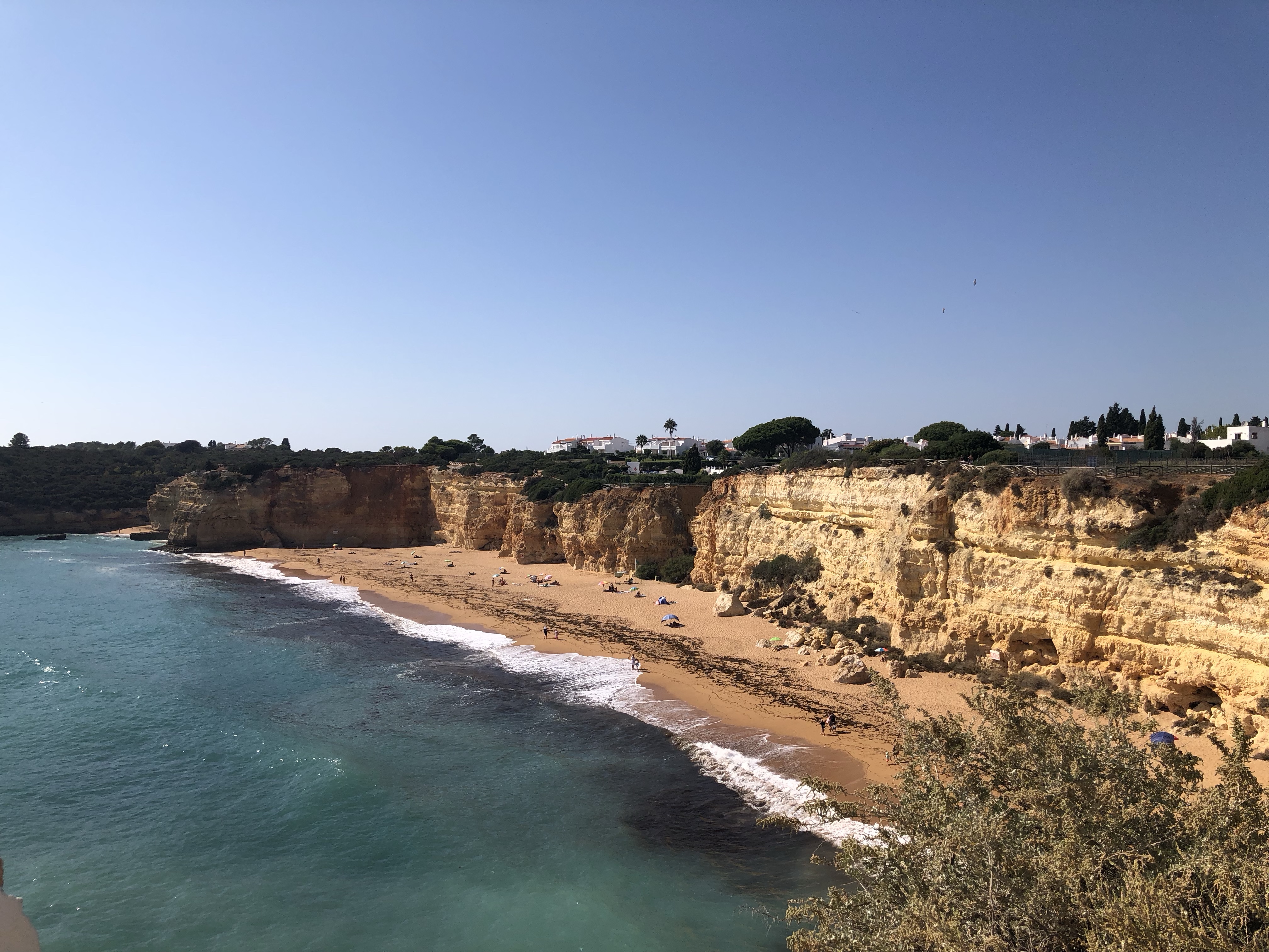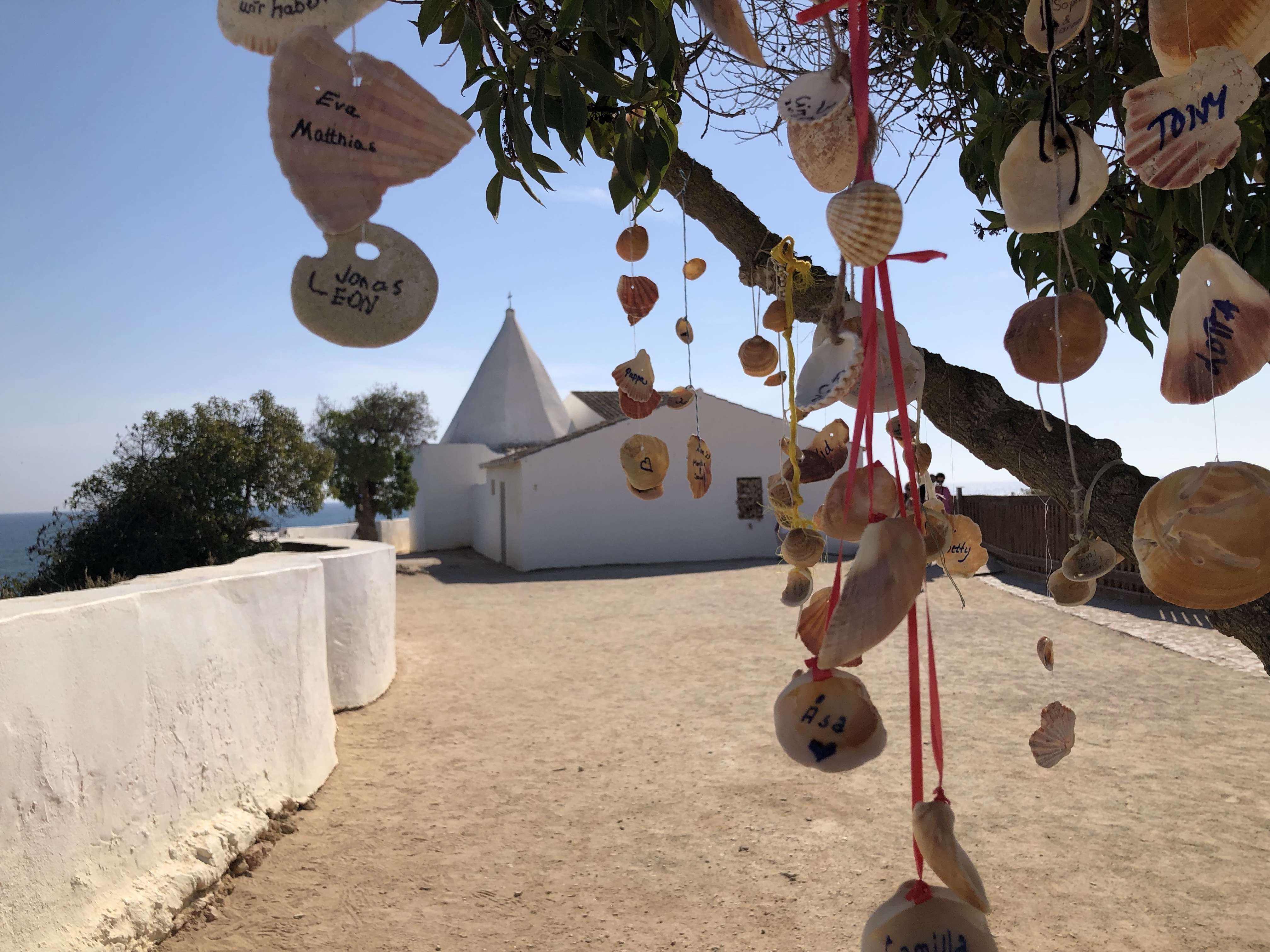 Am Weg nach Faro haben wir noch zwei Must-see-Stopps gemacht. Bei Lagoa liegt auf einer Felsklippe die Kapelle Nossa Senhora da Rocha, eine kleine Marienkirche, die sehr gerne für Hochzeiten gebucht wird. Kein Wunder, der Platz ist wunderschön so direkt am Meer. Ehemals stand an der Stelle ein Castell, das bei einem Erdbeben zerstört wurde. Die kleine Kapelle wurde gegen Ende des 15. Jh./Anfang 16. Jh. erbaut, weist aber Merkmale früherer Stilepochen auf.