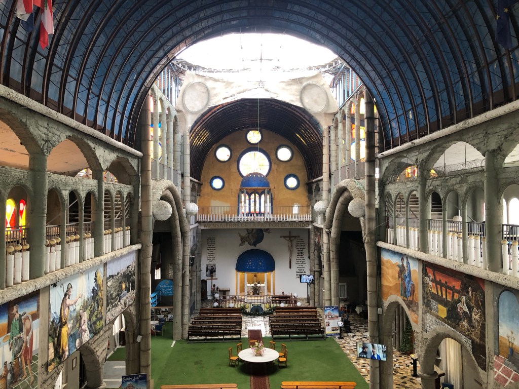 Wir schrammten an Madrid vorbei. Mit viel Seitenwind rollten wir bei Mejorada del Campo von der Autobahn in die Antonio Gaudi Straße 1. Nein, dort wartete kein Bauwerk des bekannten spanischen Architekten auf uns, sondern eine ganz besondere Kirche. Ein gewisser Justo Gallego Martinez, kein wirklicher Architekt sondern ein Geistlicher, hatte diesen Platz für sein Lebenswerk ausgesucht aus Dankbarkeit nach einer überstandenen Tuberkulose-Erkrankung. 60 Jahre seines Lebens hat er tagtäglich 10 Stunden an seiner Vision gearbeitet. Er baute eine Kirche, nach seinen Vorstellungen. Laut Martinez ist sein Bauwerk „Unserer Lieben Frau auf dem Pfeiler“ einer Schutzheiligen Spaniens, gewidmet. Gelegentlich bekam er Hilfe von Verwandten und Freiwilligen. Das Baumaterial waren Sachspenden, Ziegel, Zement, Stahlgitter, Glas und vieles mehr, Materialien, die bei anderen Bauten übrig geblieben waren oder sonstige Elemente, die niemand mehr brauchte. Aufmerksam wurden wir auf diesen besonderen Bau durch eine Dokumentation mit dem Titel „Eine Kirche aus Müll“. Von Müll kann man aber keineswegs reden, denn alles ist solide bei dem gigantischen Bau verarbeitet. 4.700 m2 verbaute Fläche, 35m Höhe, 55m Länge , 25m Breite, ein Kloster und eine unterirdische Krypta, 12 Türme mit einer Höhe von 58m, 28 Kuppeln, eine Kuppel mit einem Durchmesser von 35m, mehr als 2000 Glasscheiben, alles teilweise aus wiederverwertbarem Material. Am 28. November 2021 verstarb Justo. So bleibt die „Don Justo Kirche“, wie sie im Volksmund heißt, vorerst unvollendet. Die Stadtväter sahen bisher keine Notwendigkeit das für die Gemeinde touristisch wichtige Gebäude zu beschildern, lediglich die repräsentative Adresse hatte man ihr zuerkannt. Wer die Kirche sehen will, findet sie trotzdem. Sie ist keine vollendete Schönheit, aber sie ist wirklich bemerkenswert und aussergewöhnlich.