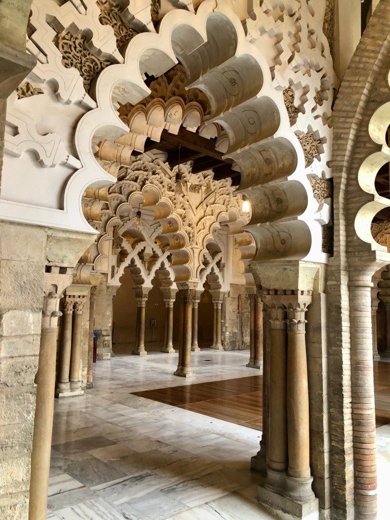 Nun, der Wind trieb uns förmlich vor die Tore des Stadtpalastes von Saragossa – Aljafeira. Heute noch erlebbar sind die Staatsräume, die ab 1488 durch die katholischen Könige im neu errichteten Obergeschoss über den alten maurischen Prunkgemächern eingerichtet wurden.