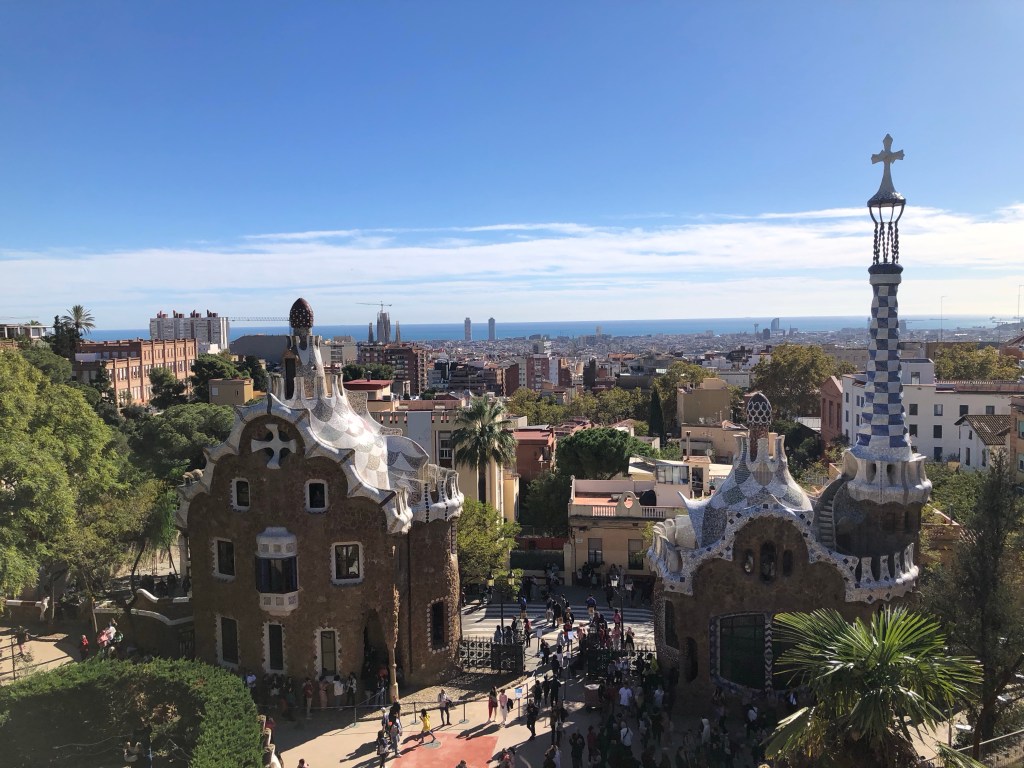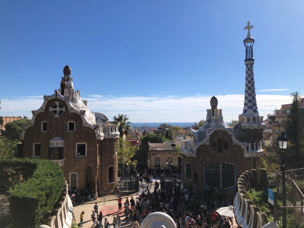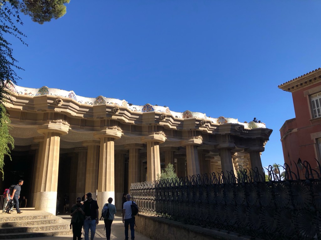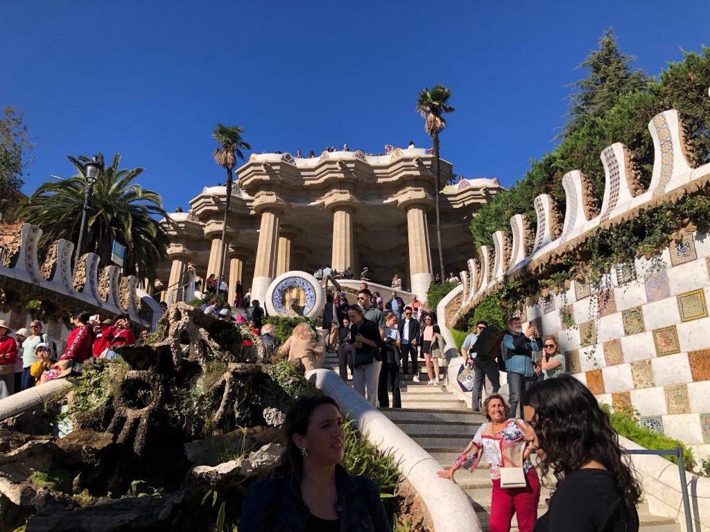 So schlenderten wir einfach los, bestaunten interessante Häuserfassanden und pilgerten nicht gerade zufällig durch den Güell Park, eines der Hauptwerke DES katalanischen Architekten Antoni Gaudi i Cornet (1852-1926). „Zufällig“ ist heutzutage scheinbar bei den Hauptattraktionen in beliebten Touristendestinationen gar nichts mehr. Für den Park hatte ich schon Tage davor die Eintrittstickets online besorgt, was auch gut war. Wie wir mitbekommen hatten, war an unserem Besuchstag schon vormittags alles ausverkauft. Die Millionenmetropole Barcelona zieht das ganze Jahr hindurch über sieben Millionen Touristen an. Sieht man sich die Bevölkerungsstatistik inklusive des Einzugsgebietes der Stadt an, so könnte man sagen, auf jeden Einwohner kommen jährlich etwa zwei Touristen. Einige von denen haben wir natürlich im Güell Park getroffen.