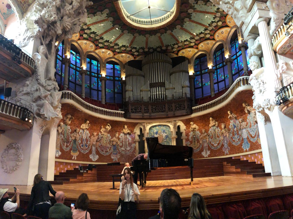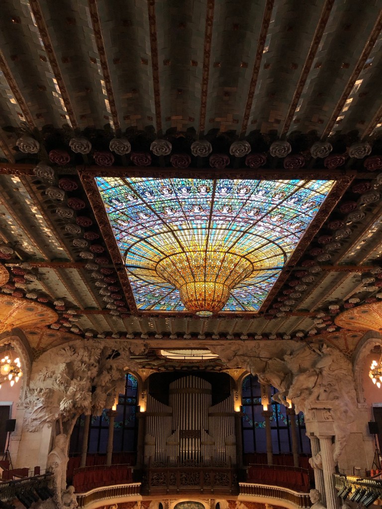 Wie bei jedem Künstler stellt sich auch bei Gaudi die Frage: Hat er alles selbst erfunden, oder gab es für ihn wo anders Anregungen? Nun, das erfuhren wir im Palau de la Musica Orfeo Catala, ein Musiktheater, das speziell für den katalanischen Volkschor – Orfeo Catala – erbaut wurde. In dieses einzigartige Konzerthaus stolperten wir ausnahmsweise wirklich zufällig hinein. Es liegt in der Altstadt von Barcelona und genießt nicht ganz so die Aufmerksamkeit, wie Gaudis Bauten. Wenn man die Konzerthalle des katalanischen Architekten Lluis Domenech i Montaner gesehen hat und weiß, dass er Gaudis Lehrer an der Akademie war, wird einem klar, woher die Inspirationen und der gebaute naturalistische Formenreichtum bei seinen Bauwerken kommt. Gaudis Stil vermischt sich mit Ausdrucksformen des spanischen Modernismus, dessen berühmtester Vertreter damals Montaner war. Durch eine individuelle phantasiereiche Interpretation entwickelte sich der unverkennbare Baustil Gaudis. Wer nach Barcelona kommt, sollte sich aber den Besuch im Palau de la Musica Orfeo Catala unbedingt auf die Bucket List schreiben.
