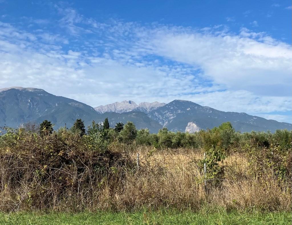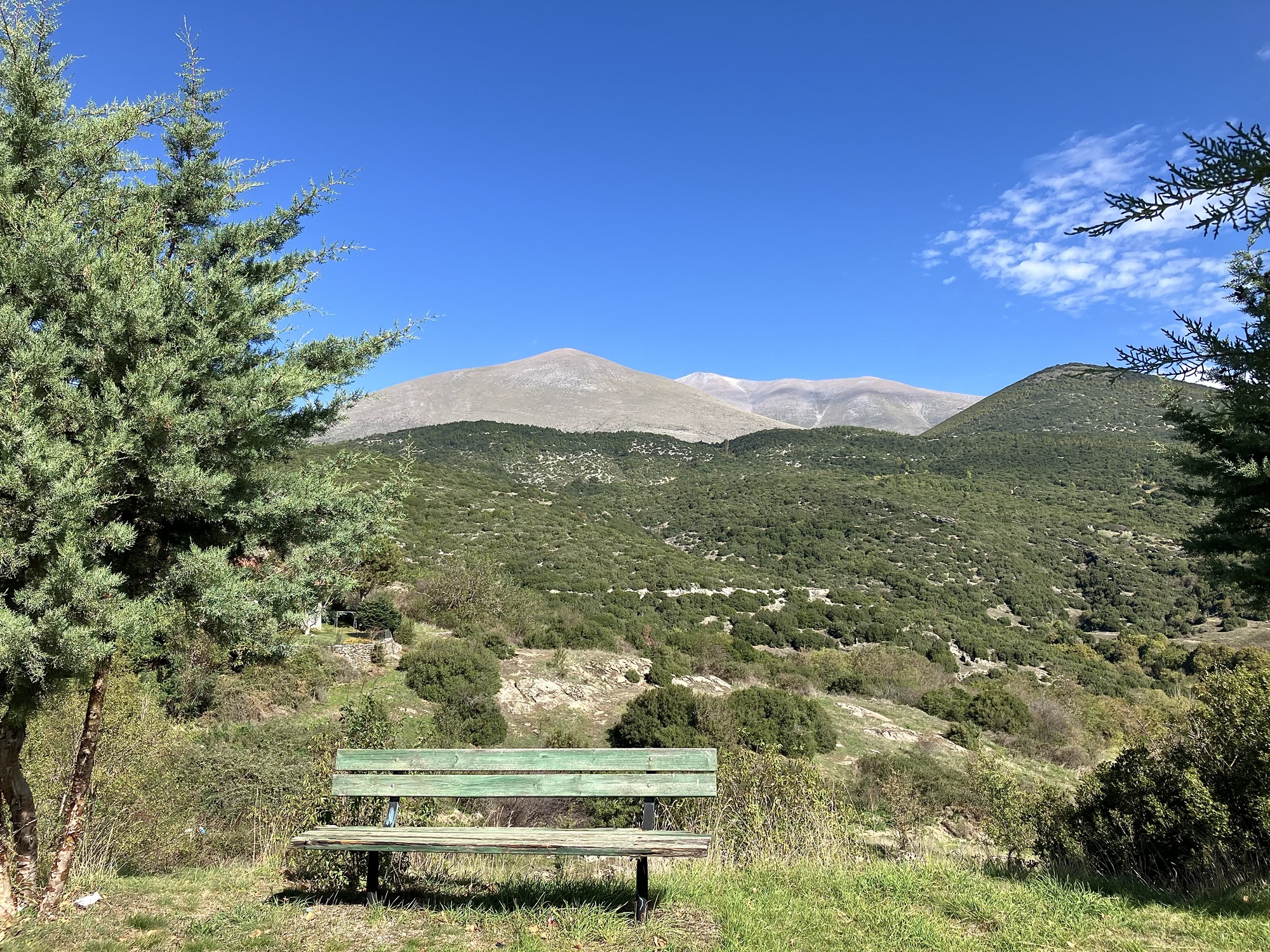 Nachdem in Prionia nicht viel vom Olymp zu sehen war, war es umso erfreulicher, dass am Morgen bei der Abfahrt der Gipfel quasi wolkenfrei war und wir wenigstens aus der Ferne den Thron des Zeus sehen konnten.