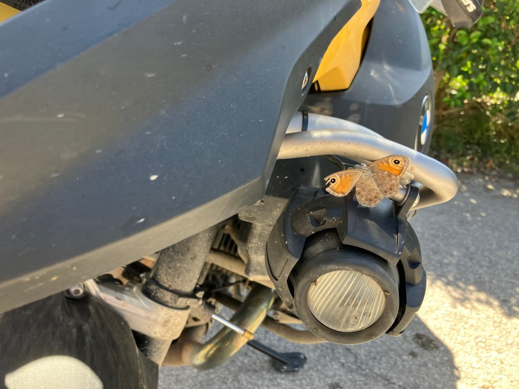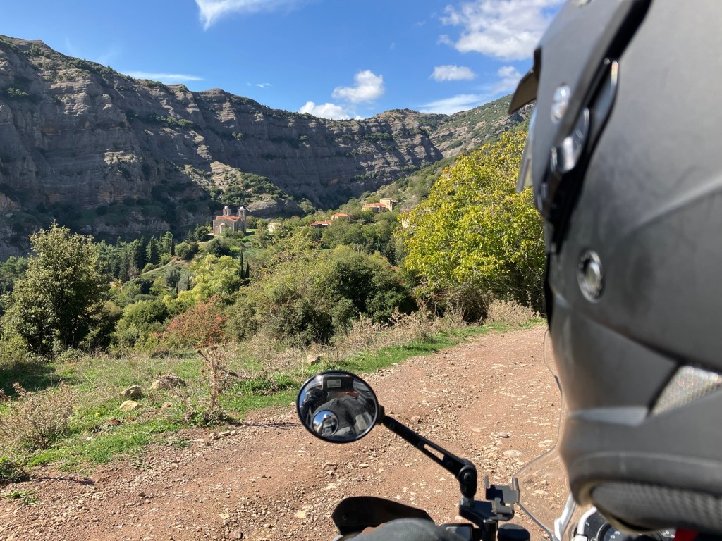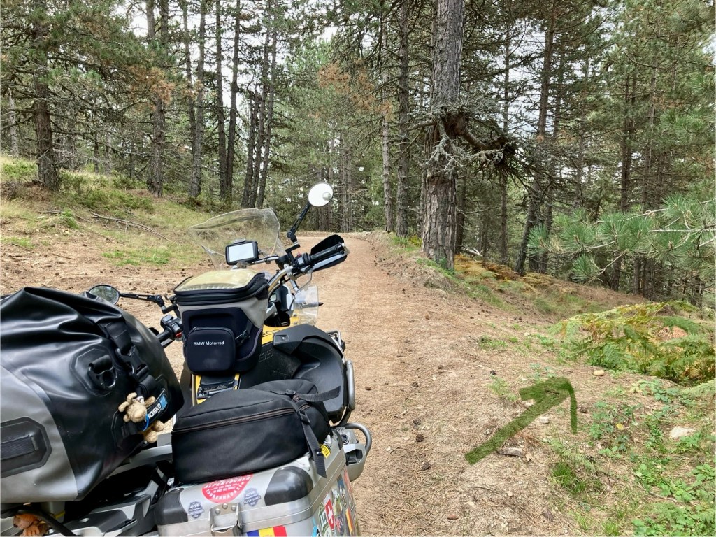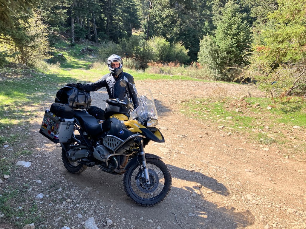 Angekommen am Peloponnes ging es landeinwärts, denn dort verstecken sich die coolen kleinen Strassen und verborgene Wege. Die Halbinsel ist überzogen mit einem kurvenreichen Netzwerk an „Goassenwegen“, wie der Bock-Chef zu sagen pflegt. Über die Strassenqualität war zu dem Zeitpunkt noch nicht viel bekannt. Ein Teilstück von 7 km wurde mir mit „ungewiss“ angekündigt, genaueres konnte an der Landkarte nicht abgelesen werden. Uije, dachte ich mir. Denk positiv! Bisher hatten wir viel Asphalt unter den Rädern, also war meine Erwartungshaltung ähnlich. Die Landschaft war wunderschön, ausser einigen Pickups begegnete uns niemand. Die Straße wurden staubiger und höppeliger. Langsam liessen wir die Zivilisation und den Asphalt hinter uns und gurkelten gemächlich Stein um Stein Kurve um Kurve dahin. Sieben ungewisse Kilometer! Irgendwie komisch, wie lange sich 7 Kilometer anfühlen können (vor allem, wenn sich herausstellt, dass es 30 km waren!). Der Schuldige war natürlich schnell ausgemacht – sein Freund Garmin!