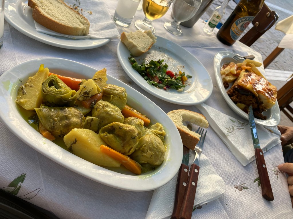 Am späten Nachmittag kamen wir in Kalavryta, einem bei Griechen beliebten Skiort, an. Die nächsten Tage waren sehr geruhsam. Wir genossen die griechische Küche in einer Taverne und es wurde auch selber gekocht. Immerhin hatten wir noch die Kartoffel aus dem Wald von vor einigen Tagen im Gepäck.
