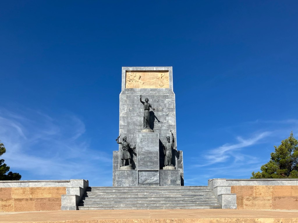 Im Stadtmuseum erfuhren wir alles über die leidvolle Geschichte der Bevölkerung. Kalavryta war Ende des 19. Jahrhunderst schon eine aufstrebende Gemeinde, die auf Bildung der Leute setzte. Die Einwohner waren geschäftstüchtig und der Ort zog wohlhabende Unternehmer an. Die Kriege unterbrachen diese Entwicklung. Unter der vorerst italienischen Besatzung im 2. Weltkrieg lief alles noch relativ moderat ab. Danach kam die deutsche Wehrmacht und die richtete ein entsetzliches Blutbad an. Denn am 13.12.1943 wurde die gesamte männliche Bevölkerung älter als 13 Jahre erschossen. 468 Personen wurden brutal mit Maschinengewehren einfach niedergemetzelt, weil sie unter ihnen Partisanen vermuteten. Beklemmend diese Geschichten von den Kriegen. Egal wieviele Mahnmale und Denkmäler errichtet wurden, ich habe den Eindruck, wenn ich mir die momentane Weltlage anschaue, die Menschheit hat nichts dazu gelernt.
