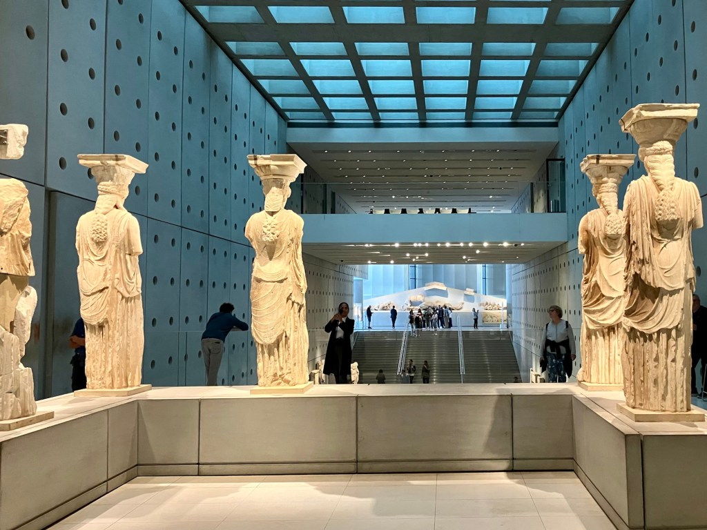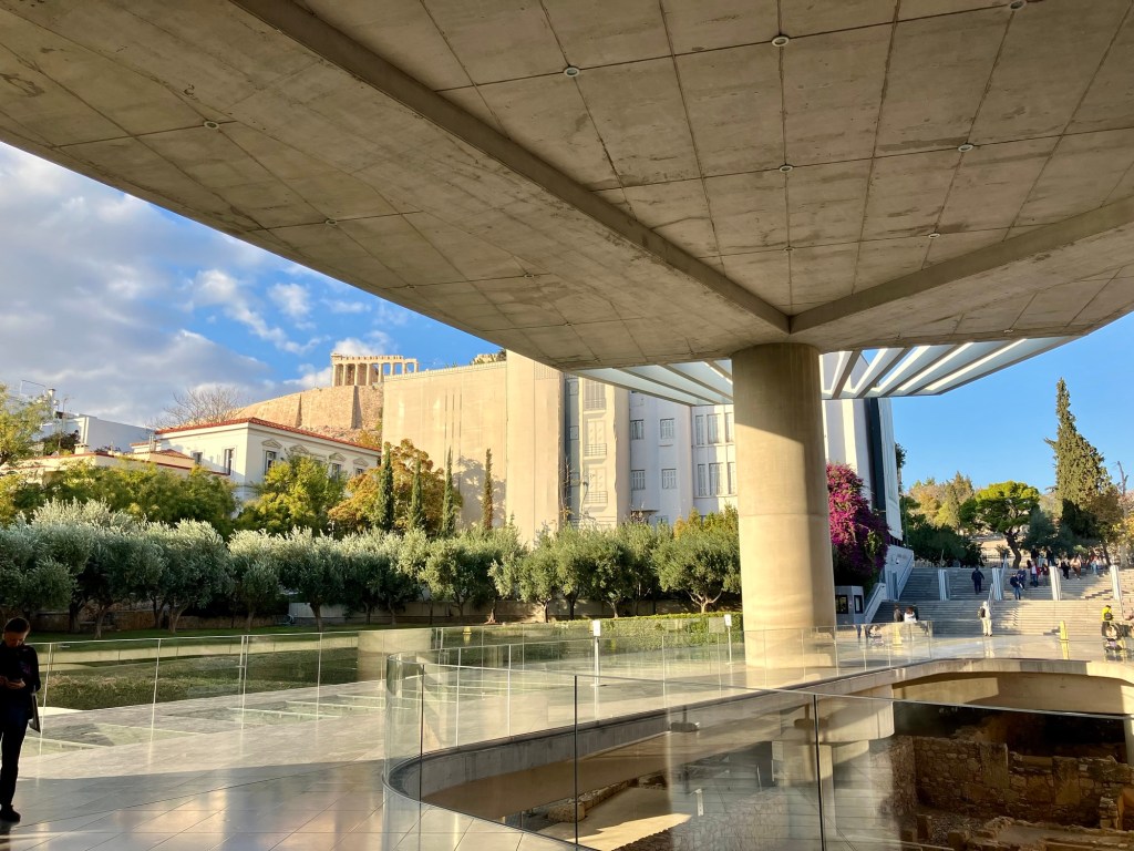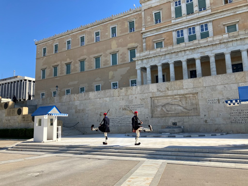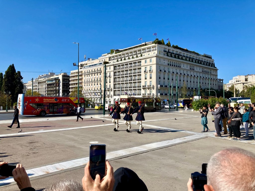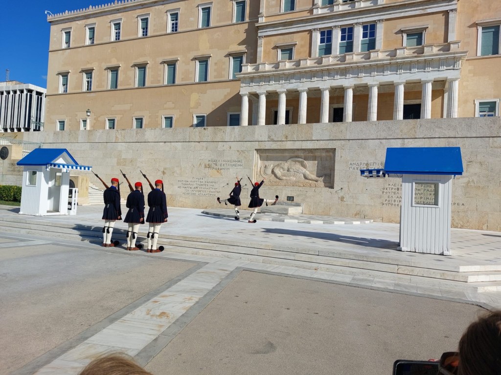 Die Besichtigung von Athen hatten wir uns fix bei der Griechenlandreise vorgenommen. Bei der Fülle an Möglichkeiten war es gar nicht so einfach ein sehr reduziertes Programm für die Hauptstadt auszusuchen. Wir wollten Athen geniessen und keinen Rallye von Attraktion zu Attraktion machen. So entscheiden wir uns für die Akropolis und das Akropolis Museum, da ist man schon einen ganzen Tag beschäftigt. Am Syntagma-Platz begeisterte uns die Wachablöse der Evzonen beim Grabmal des unbekannten Soldaten. Vom Lykabettus aus liessen wir unsere Blicke über die Stadt schweifen, bevor wir in der Altstadt in der Plaka einfach nur dahin schlenderten, den griechischen Wein verkosteten und ein paar Souvenirs einkauften. Nach mehr war uns nicht. An einem Abend trafen wir liebe Freunde in einem Restaurant. Wir unterhielten uns so gut, dass wir es grade noch geschafft hatten, die letzte U-Bahn kurz nach Mitternacht zu erwischen.