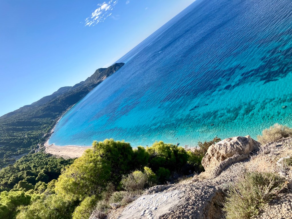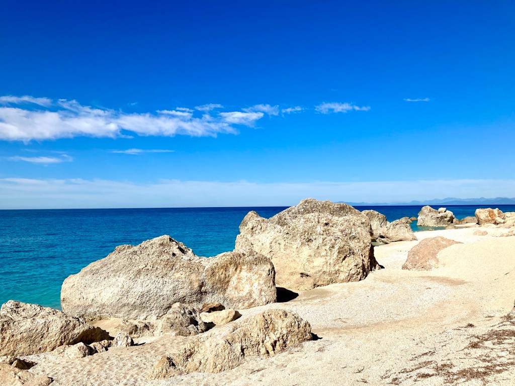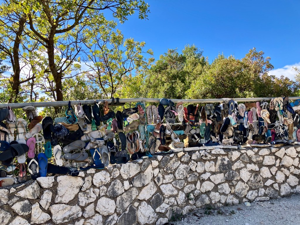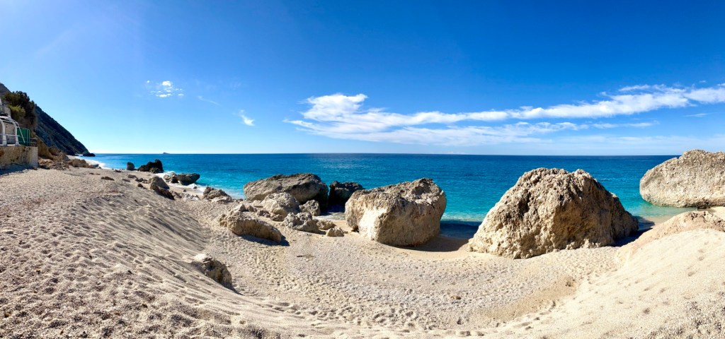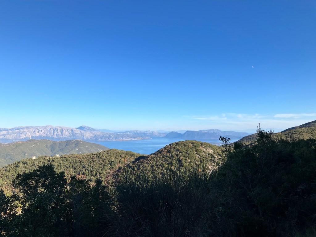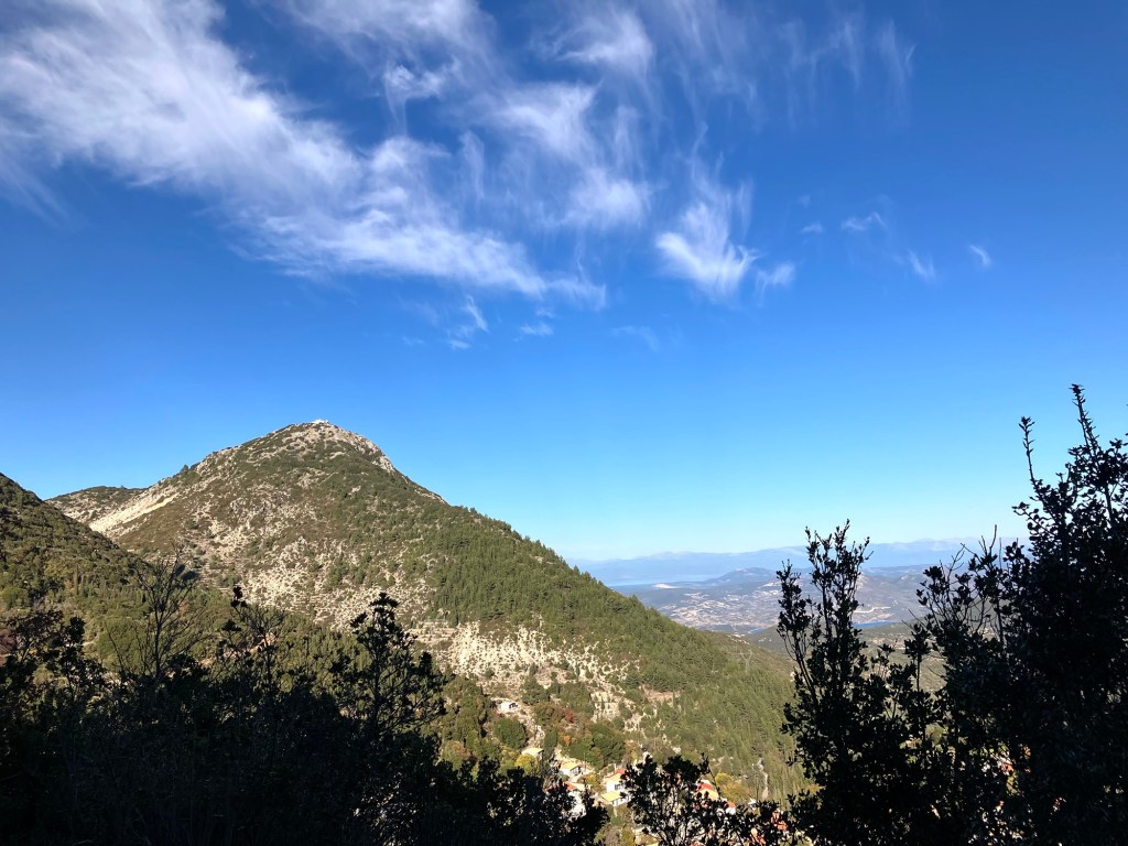 Nur wenige Kilometer entfernt liegt die Insel Lefkada die über eine bewegliche Schwimmbrücke mit dem Festland verbunden ist. Einem Geheimtipp eines Freundes folgend, gibt es dort wunderschöne Strände mit karibischem Flair. Und in der Tat es ist so. Über eine mäßig befestigte schmale Straße stürzten wir uns mit dem Bock über enge Kurven quasi die Klippen hinunter. Der Abstieg war nicht ohne, aber es hatte sich gelohnt. Wow, das sind Strände, jetzt im November natürlich menschenleer! Aber auch sonst war die Fahrt ein Vergnügen. Kurven, Kurven, Kurven und nochmals Kurven. Ausblicke auf das weite Meer oder auf die vorgelagerte Inselwelt, gebirgige Anhöhen, von 0 auf 1182 m (Berg Elati) und die Besichtigung eines Klosters so im Vorbeifahren. Bis auf die Stadt Lefkada ist das Eiland dünn besiedelt – kein wunder, dass uns – abgesehen von einigen Pickups, kaum jemand begegnete.
