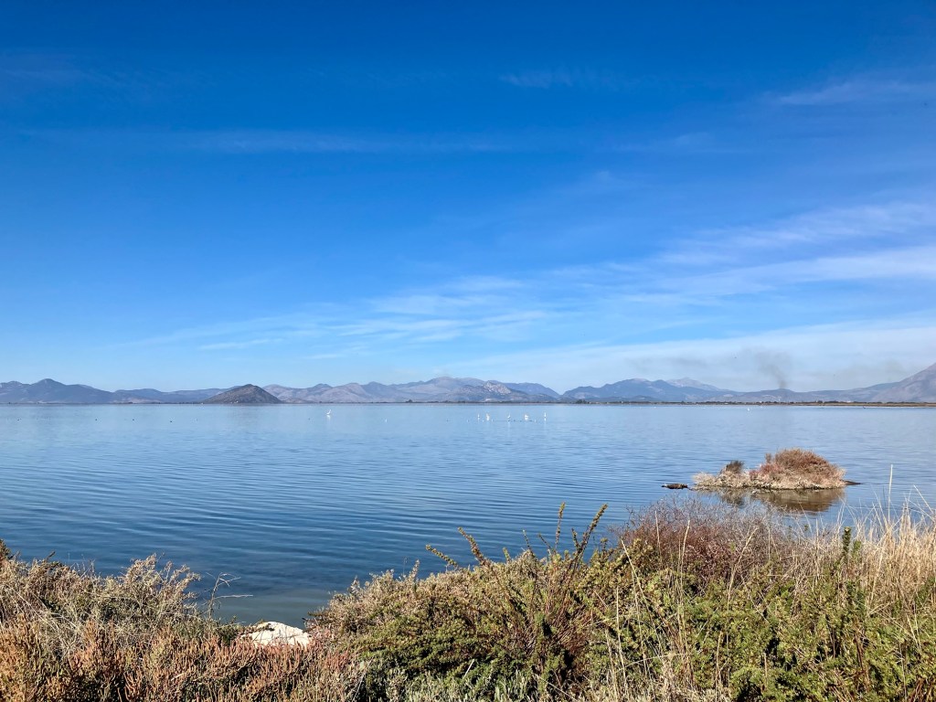 Motorradakrobatik hin oder her, easy Schotter kann auch ganz reizvoll sein, so erlebt in der Lagune am Ambrakischen Golf. Die Frage war, wie weit kann man auf der Landzunge in die Lagune raus fahren und ist tatsächlich dort das Ende der Straße? Wie wir wissen, kennt Meister Garmin nicht alle Wege auf dieser Welt. Manchmal ist es ihm auch egal, ob es eine Straße gibt oder nicht. Aber ich kann beruhigen, der Bock wurde nicht zum Wassermobil umfunktioniert, es war irgendwo im nirgendwo tatsächlich Ende im Gelände. Flamingos, Pelikane, Kormorane, Reiher und Haubentaucher waren von unserer Annäherung wenig beeindruckt und ließen sich nicht stören.