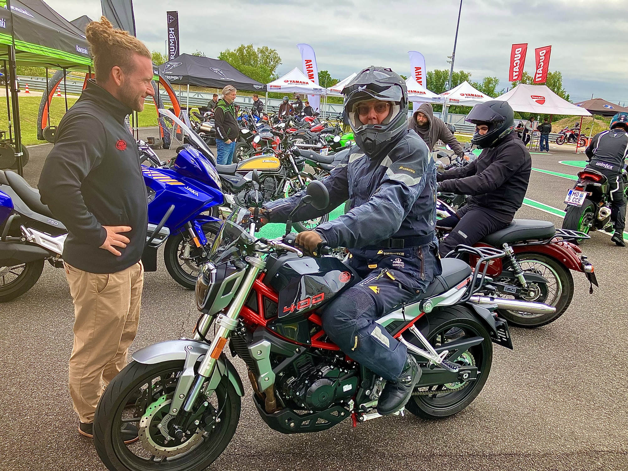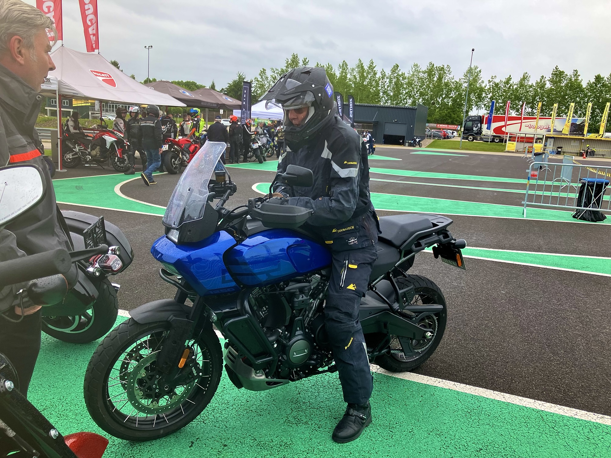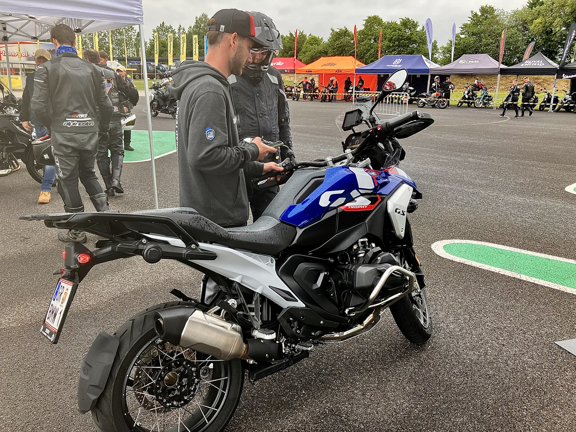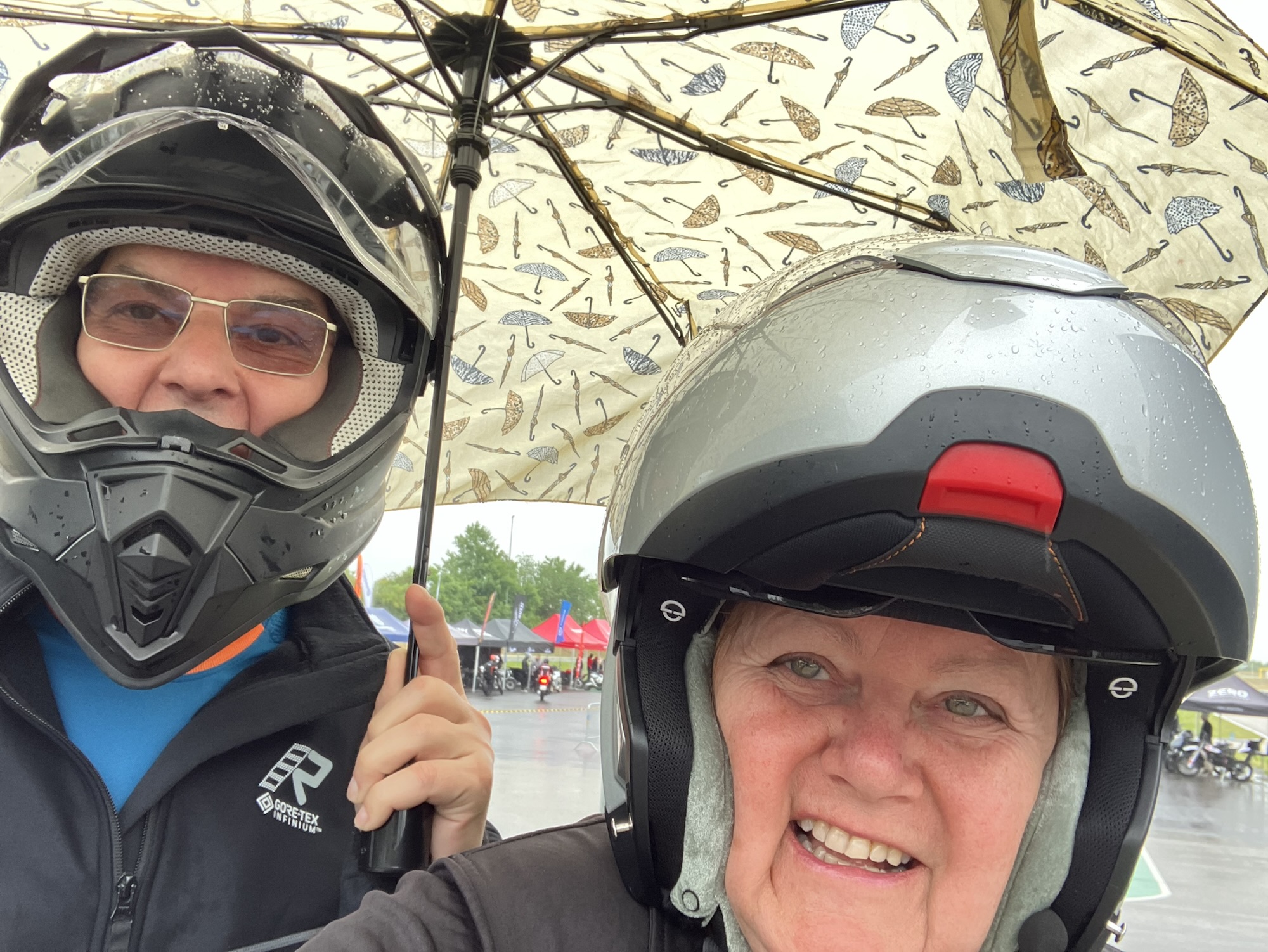 Gar die Hoffnung wenigstens die Ausfahrt zum ÖAMTC-Testtag nach Marchtrenk Ende Mai mit dem eigenen Motorrad machen zu können schwand langsam dahin. Und dann endlich kam die zündende Idee, nachdem die Beschwichtigungen aus der Ferne – bald werden wir den fehlenden Teil haben – das Nervenkostüm überstrapaziert hatten. Die Investition in ein neues Fahrwerk wurde getätigt, es war sofort lieferbar, wurde umgehend eingebaut und zak der Bock war endlich am 23. Mai!!! brauchbar fahrbereit. Am Sonntag ging es dann doch in strömenden Regen mit dem Auto zum Testtag nach Marchtrenk. Die erste Ausfahrt muss wirklich nicht im Regengewand sein. Wir hatten trotzdem einen coolen Tag in „Martschtrenk“ (KI findet diese Aussprache besser). Wir haben 9 Motorräder getestet und bis auf die letzten drei Runden war die Piste am ÖAMTC-Gelände annähend trocken. Unser Favoriten waren die komfortablen BMW-Modelle (klar), die Panamericana von Harley Davidson (überraschend) und für Fernweh mit authentischen Abenteuerfeeling die Royal Enfield Himalayan. Interessant war auch die Transalp. Witzig mit Spassfaktor war die kleine Retro-Maschine von Java. Der Motorradtesttag war wieder eine sehr gelungene Veranstaltung mit tollen Motorrädern und eine gute Gelegenheit in dem gebuchten zweistündigen Zeitslot das Fahrkönnen zu trainieren.