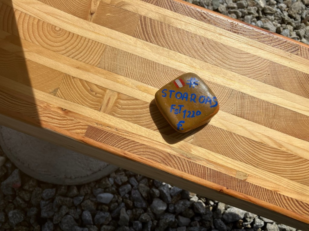 Und eben dort haben wir einen kleinen #stoaroas Stein gefunden. Wer das Prinzip der #stoaroas (Steinreise) noch nicht kennt, es gibt Menschen, die kleine Steine auf einer Seite hübsch bemalen und auf der Rückseite mit ihrer Signatur versehen (z.B.: Nummer, Buchstaben, Postleitzahl). Die Steine werden danach an beliebigen Plätzen ausgelegt, um sie auf Reisen (auf d’Roas) zu schicken. Wer einen Stein findet, der soll ihn mitnehmen und an einem anderen Ort auslegen. So verreist der Stein. Um die Reise zu verfolgen gibt es eine Facebook-Seite: stoaroas, wo man den Fund eines Steines und die Reise dokumentieren kann. Es ist kein Muss, dort was einzutragen, aber die Steinkünstler freuen sich natürlich, wenn sie so erfahren, wo ihre Stein unterwegs sind. Ich persönlich finde die Idee einfach charmant. Wir haben schon einige Steine mitgenommen. Den Stein #FST1220 haben wir bis zur Kaiserin Elisabeth Warte in Weistrach ins Mostviertel mitgenommen. Dort hat er vielleicht schon seine nächste Mitfahrgelegenheit auf seiner #stoaroas gefunden.
