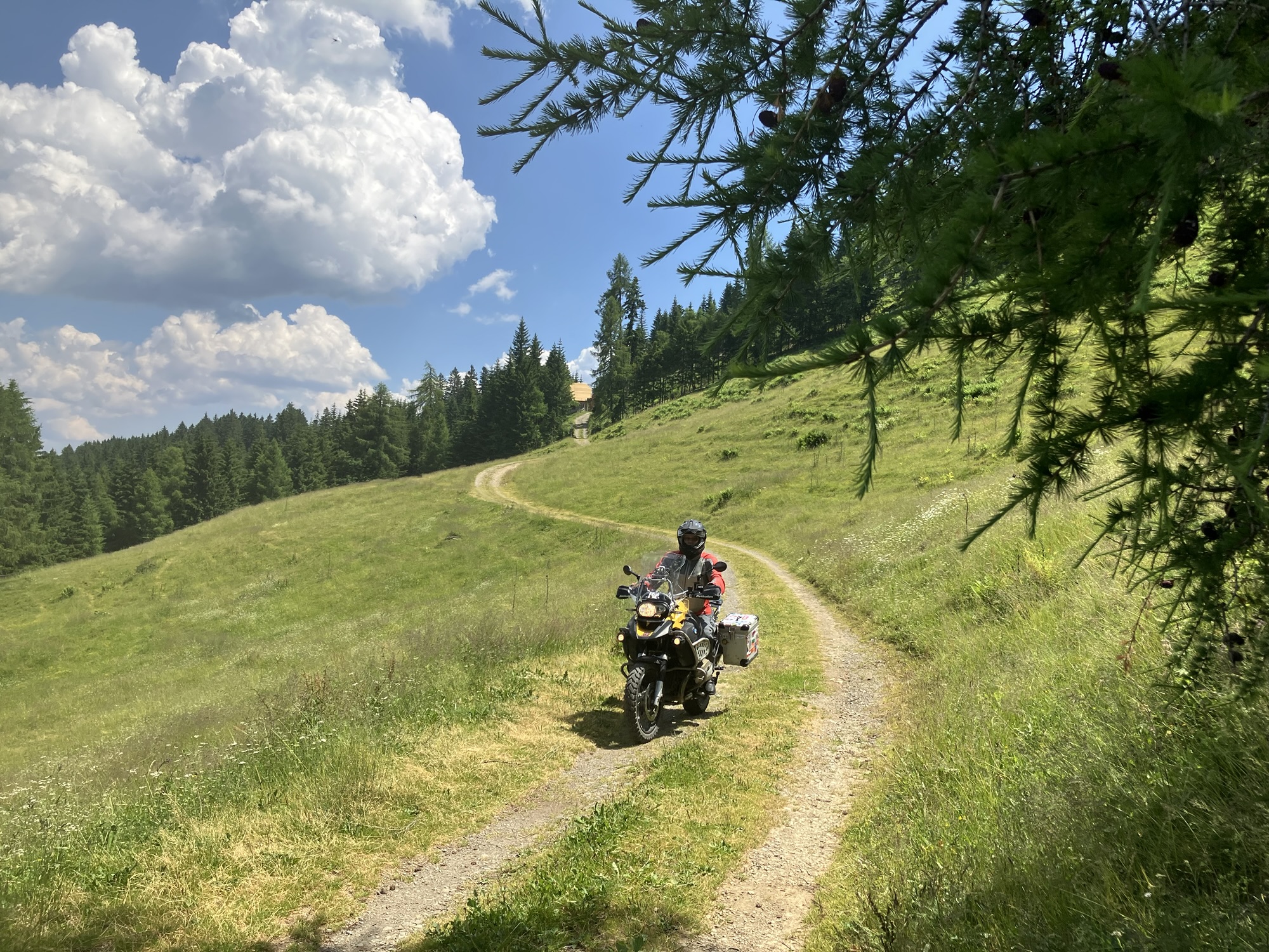 Interessanter war es bei unserer Hochzeitstag-Ausfahrt in Kärnten. Über die Villacher Alpenstraße schlichen* wir hoch zur Rosstratten-Alm. Auch da belohnte ein grandioser Ausblick. Die Auffahrt zur Werbutzalm – unser nächstes Ziel – war dann der krönende Offroad-Einstieg in die Saison. Es gibt so schöne Plätze.