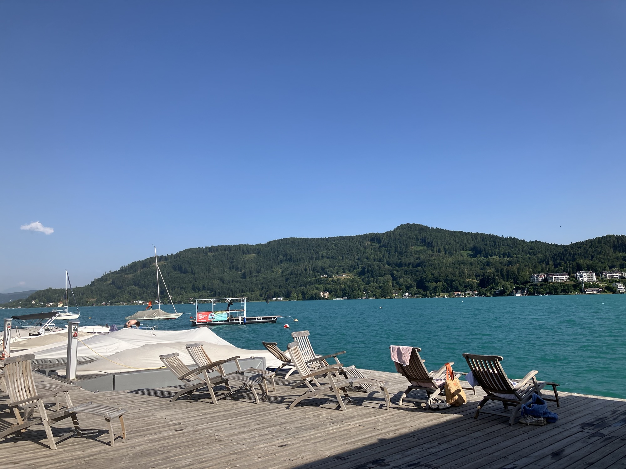 Wir waren in Kärnten aber nicht nur auf Almen unterwegs. Die vielen Seen bieten gerade bei den heissen Temperaturen der letzten Tage eine gute Gelegenheit ins kühle Nass zu springen. Unser Stützpunktquartier lag direkt am Wörthersee mit einem luxuriösen Badeplatz, den wir natürlich nach den heissen Motorradfahrten gerne nutzten.
