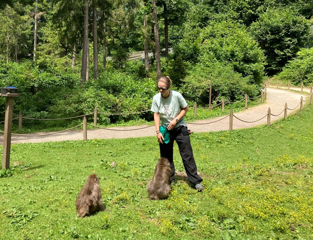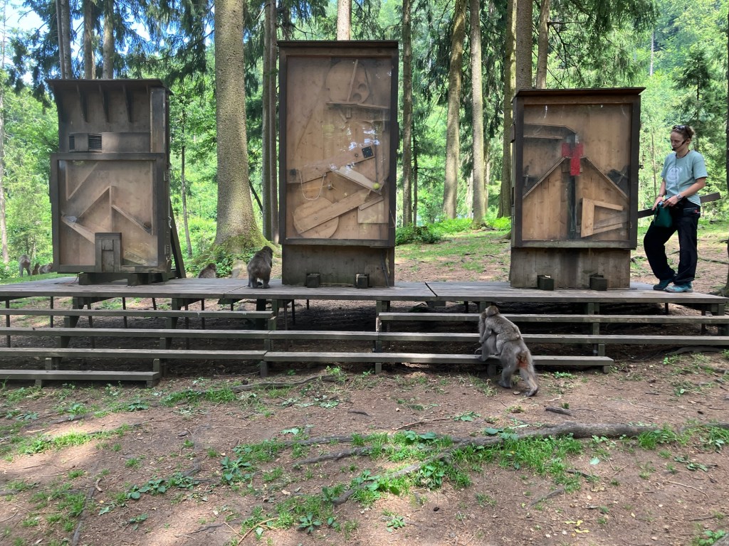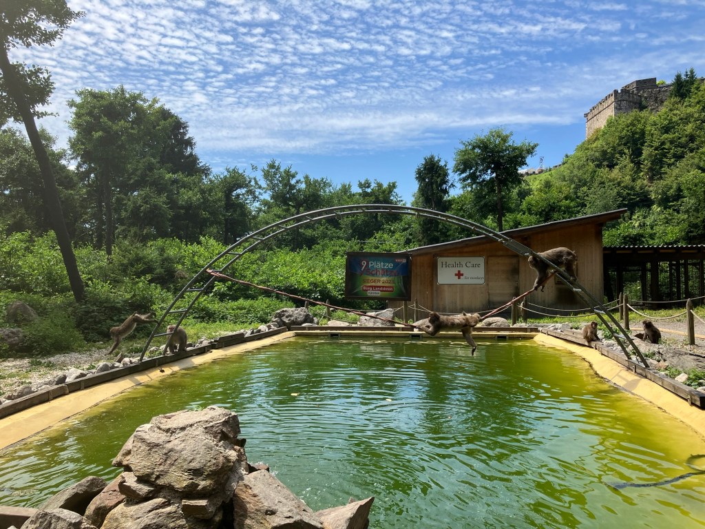 Unsere Uhr für die Weiterreise tickte. Wir hatten uns viel für Kärnten vorgenommen. Bisher waren wir noch nie in Landskron am Affenberg, obwohl wir schon zigmal am Weg nach Italien oder zurück dort vorbei fuhren. Aber diesmal musste es klappen, immerhin war der Ort nur wenige Kilometer von unserem Stützpunkt entfernt. Also rauf auf den Bock und ab zum Affenberg! Die Meinungen mögen zwar auseinander gehen. Warum müssen in Österreich Japanmakaken leben? Begonnen hat alles 1996 mit einer kleinen Gruppe von 20 Affen. Der Affenberg ist ein vier Hektar großes Areal und bietet den heute dort lebenden 180 Tieren einen natürlichen Lebensraum. Durch die Zusammenarbeit mit den Universitäten Wien, Graz und Kyoto können Studierende hier Verhaltensforschung betreiben. Im Rahmen von Führungen ist es den Besuchern möglich einen Teil des Geheges zu betreten und unter Einhaltung von Regeln die Tiere zu beobachten. Ich persönlich finde das überaus spannend die Makaken und ihren sozialen Umgang miteinander und in den einzelnen Clans zu beobachten. Derzeit gibt es sechs Affenbabys. Die Führerin kannte alle Affen beim Namen sowie deren spezielle Eigenheiten. Sie hat uns echt viel über das Verhalten und die Lernfähigkeit der Japanmakaken erzählt. Besonders beeindruckt hat mich, dass die Apfelmaschinen (technische Holzkästen, bei denen über verschiedene Mechanismen Futter rausgeholt werden kann) nur von sechs Tieren bedient werden können. Die Funktionsweise wurde den Tieren nur 1x gezeigt. Die Affen lernen durch Beobachtung und scheinbar brachten nur weibliche Tiere die Geduld auf, so lange zu probieren, bis es klappte. Die Zeit am Affenberg war überaus unterhaltsam und lehrreich. Ein Wiederkommen ist schon programmiert.