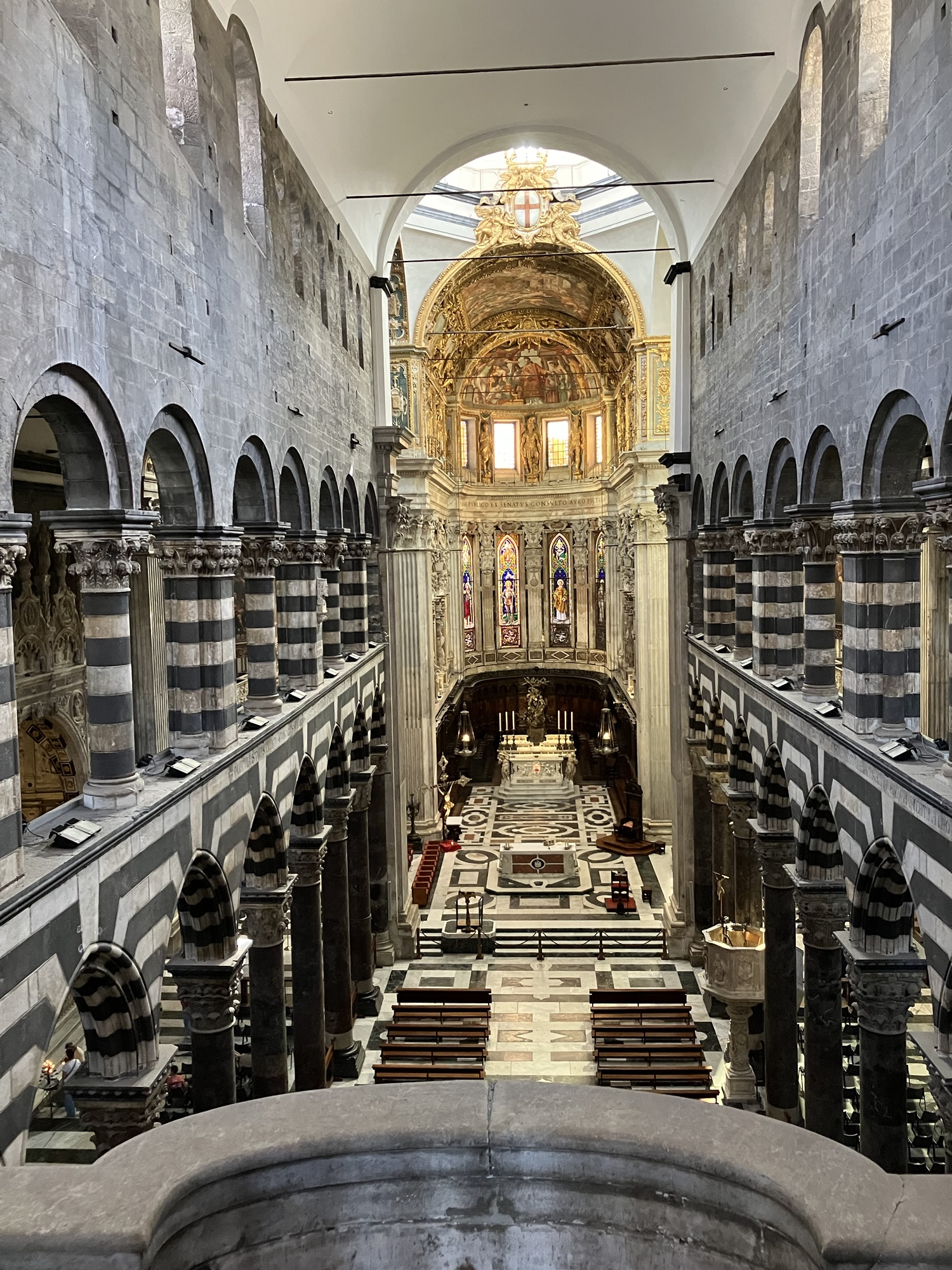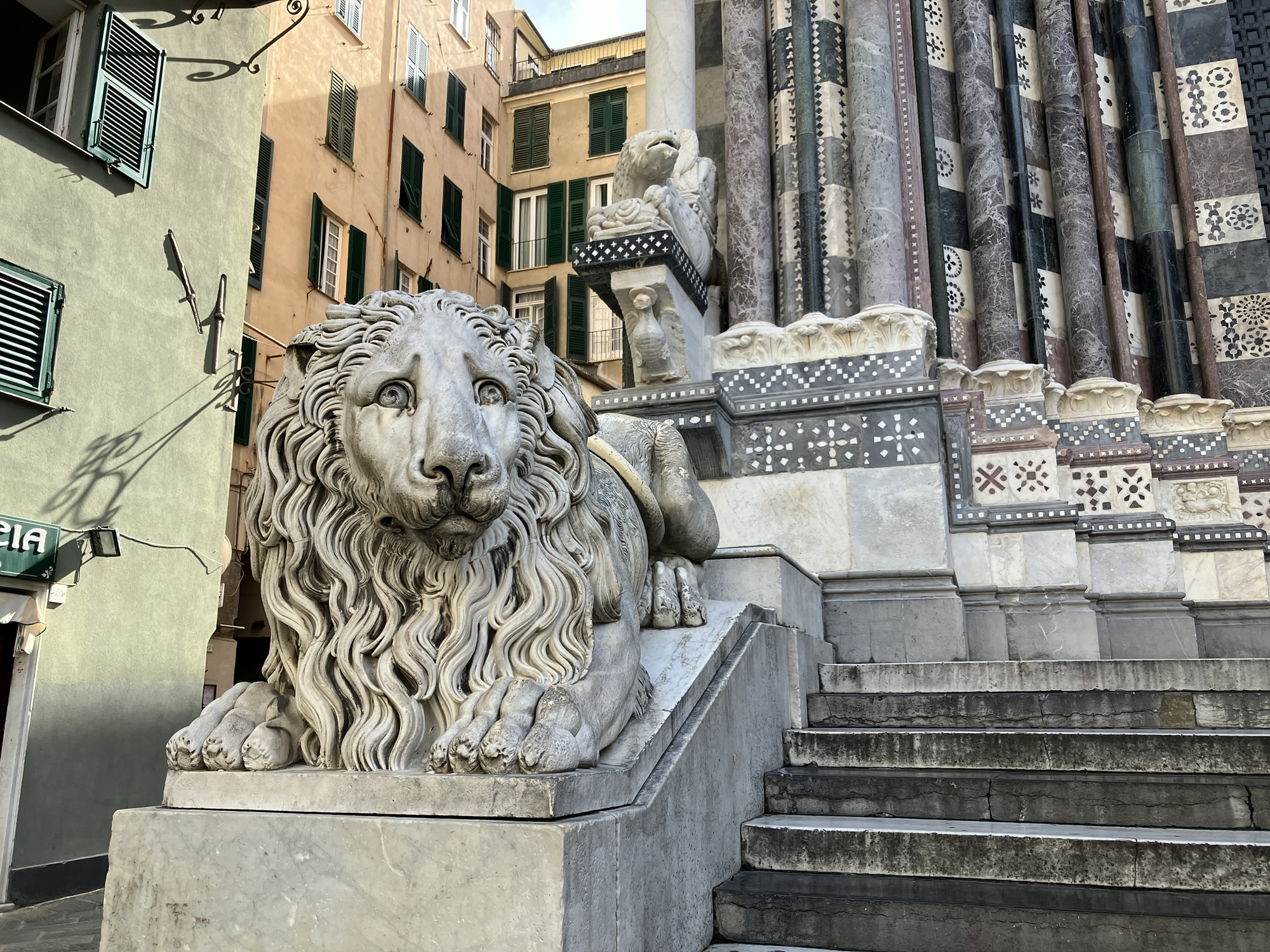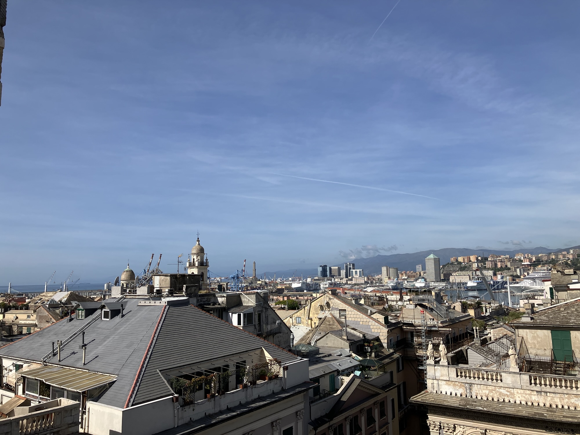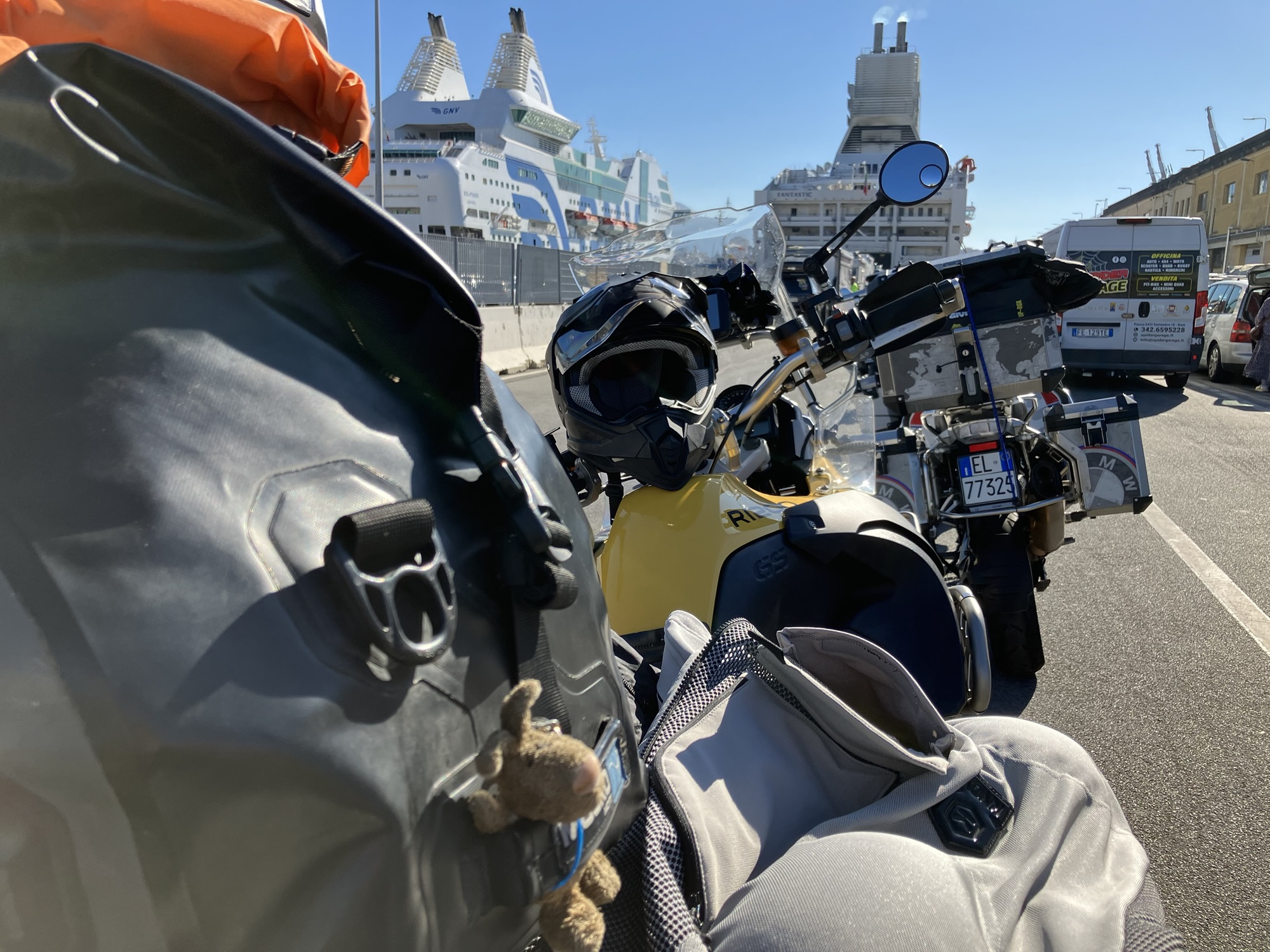 Die erste Etappe hat sich das Motorrad bequem auf dem Hänger kutschieren lassen. Aber von Jesolo ging es bereits über 440 Autobahn-Kilometer bei sommerlichen Temperaturen auf Achse weiter. Alles kein Problem mit den super feinen Mitas-E07-Dakar-Reifen! Der Bock verbrachte in Genua eine Pause in Gesellschaft von unzähligen Zweirädern, bevor es auf die Fähre nach Tanger ging. Mann & Frau genossen in der Zwischenzeit die historische Altstadt und das Hafenflair von Genua. Ein Ensemble aus genialen Monumentalbauten aus früheren Zeiten, die viele Geschichten erzählen können und an denen die Zeit nicht spurlos vorbeigegangen ist, geben der Stadt ein sympathisches reizvoll morbides Gesicht. Das geschäftige Leben pulsiert. Ein Gewusel an unterschiedlichen Kulturen zwängt sich durch die engen Gassen. Besonders stolz ist man auf den Seefahrer und Amerika-Entdecker Christoph Kolumbus. Er wurde in Genua geboren – sein Geburtshaus kann heute noch besichtigt werden. Er verbrachte die Kindheit unweit vom alten Hafen. Ich kann mir gut vorstellen, dass die Beobachtung der ankommenden und abfahrenden Schiffe seine Inspiration für den Aufbruch in die große weite Welt waren. Fernweh war scheinbar vorprogrammiert.