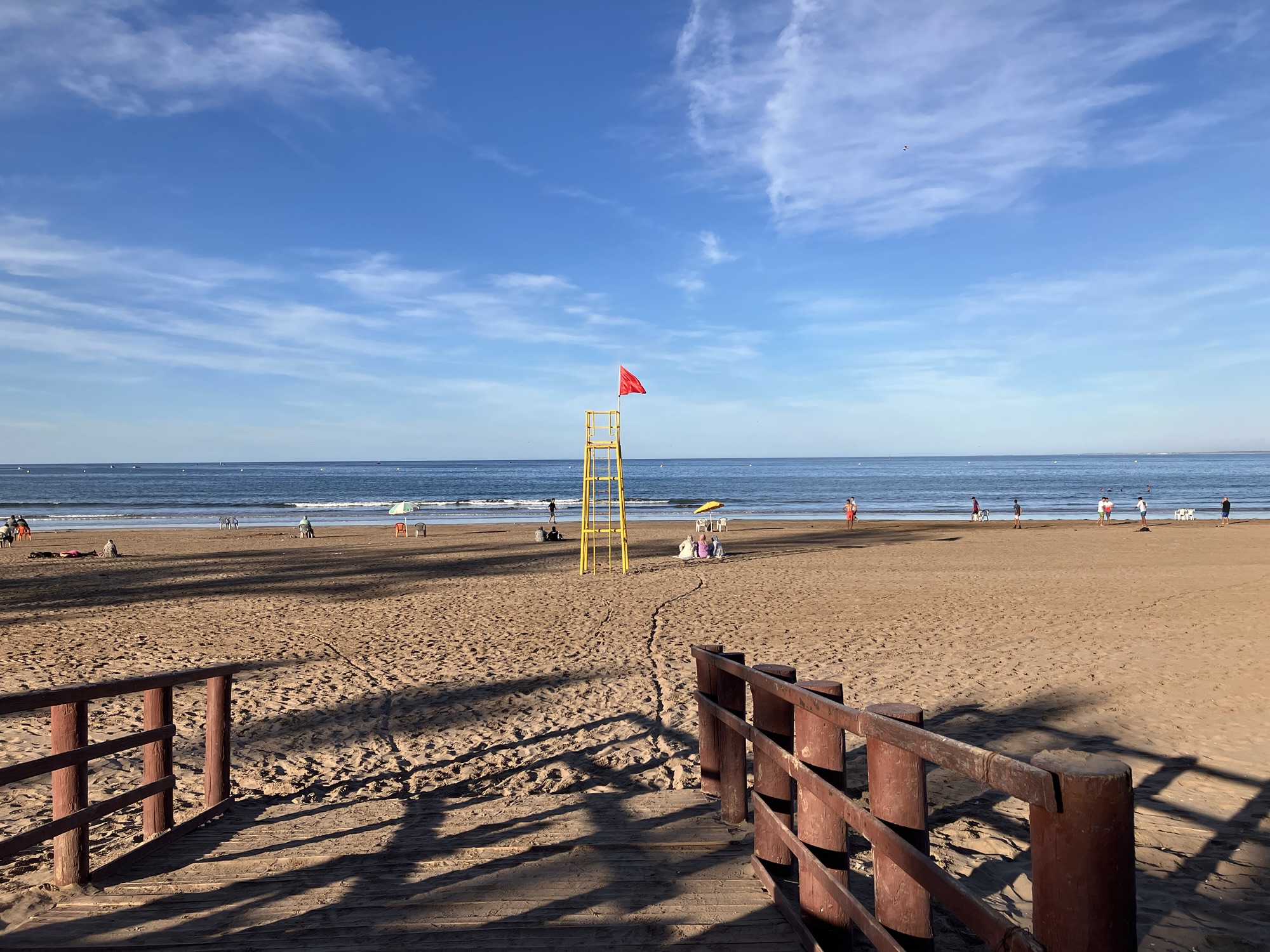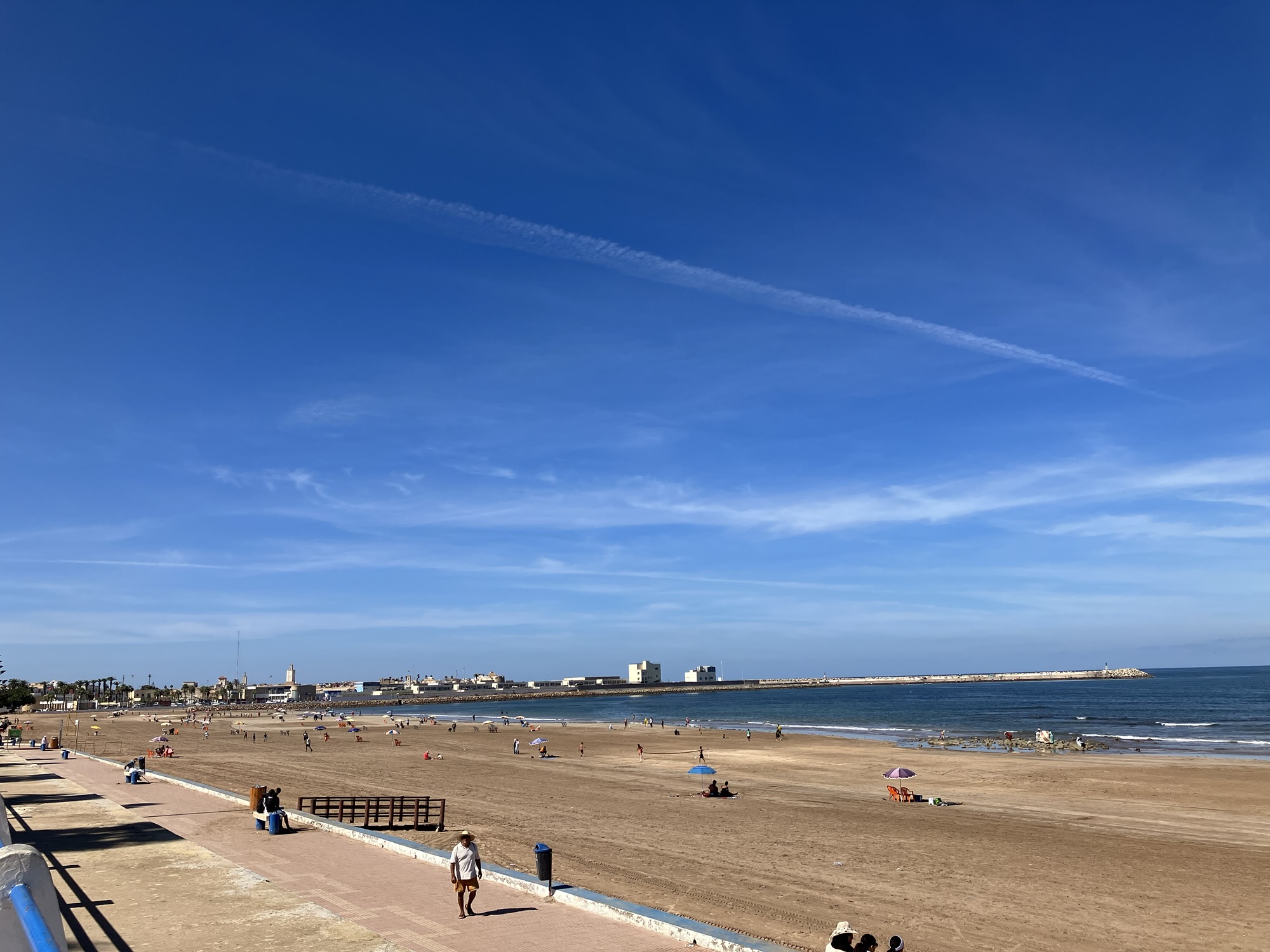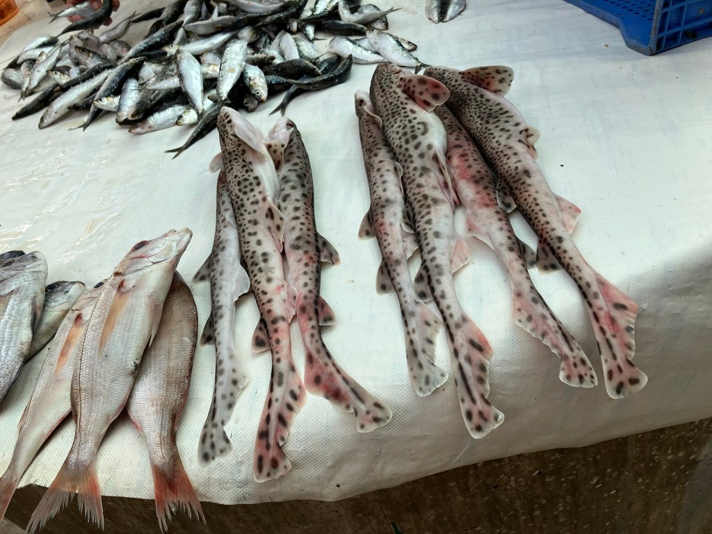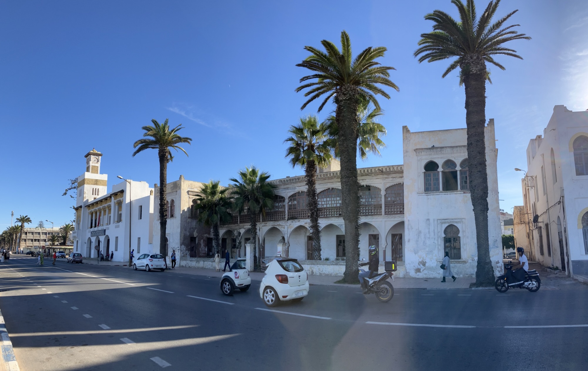 Wir kamen gut voran und landeten sogar früher als geplant in unserem Quartier in El-Jadida. Die Stadt war im frühen 16. Jh. eine befestigte portugiesische Kolonie. Die gegenseitige architektonische Beeinflussung ist an der Befestigung und an den historischen Bauten noch gut erkennbar. Am Strand war einiges los, viele nutzten das Wochenende für Familientreffen. Bei einem voll mit Einheimischen besetzten Restaurant kehrten wir ein, denn viel hatten wir an dem Tag noch nicht gegessen. Die Teller waren randvoll. Die bestellten Fischgerichte waren einfach köstlich. Und der Preis war einfach unschlagbar. €18,00 für zwei Essen und Mineralwasser!
