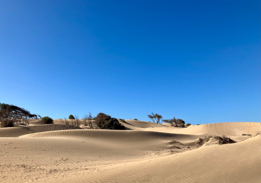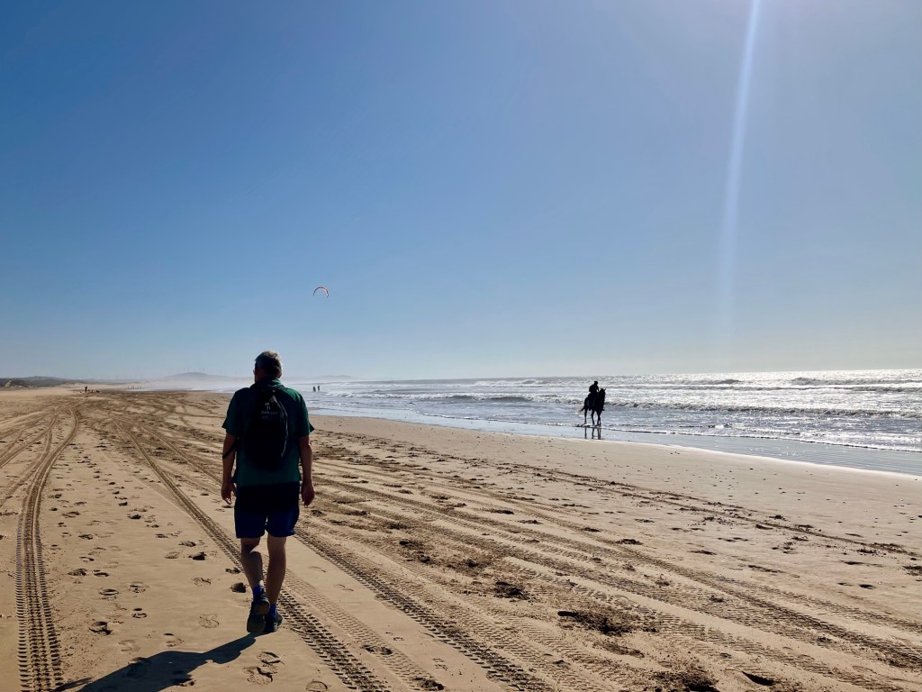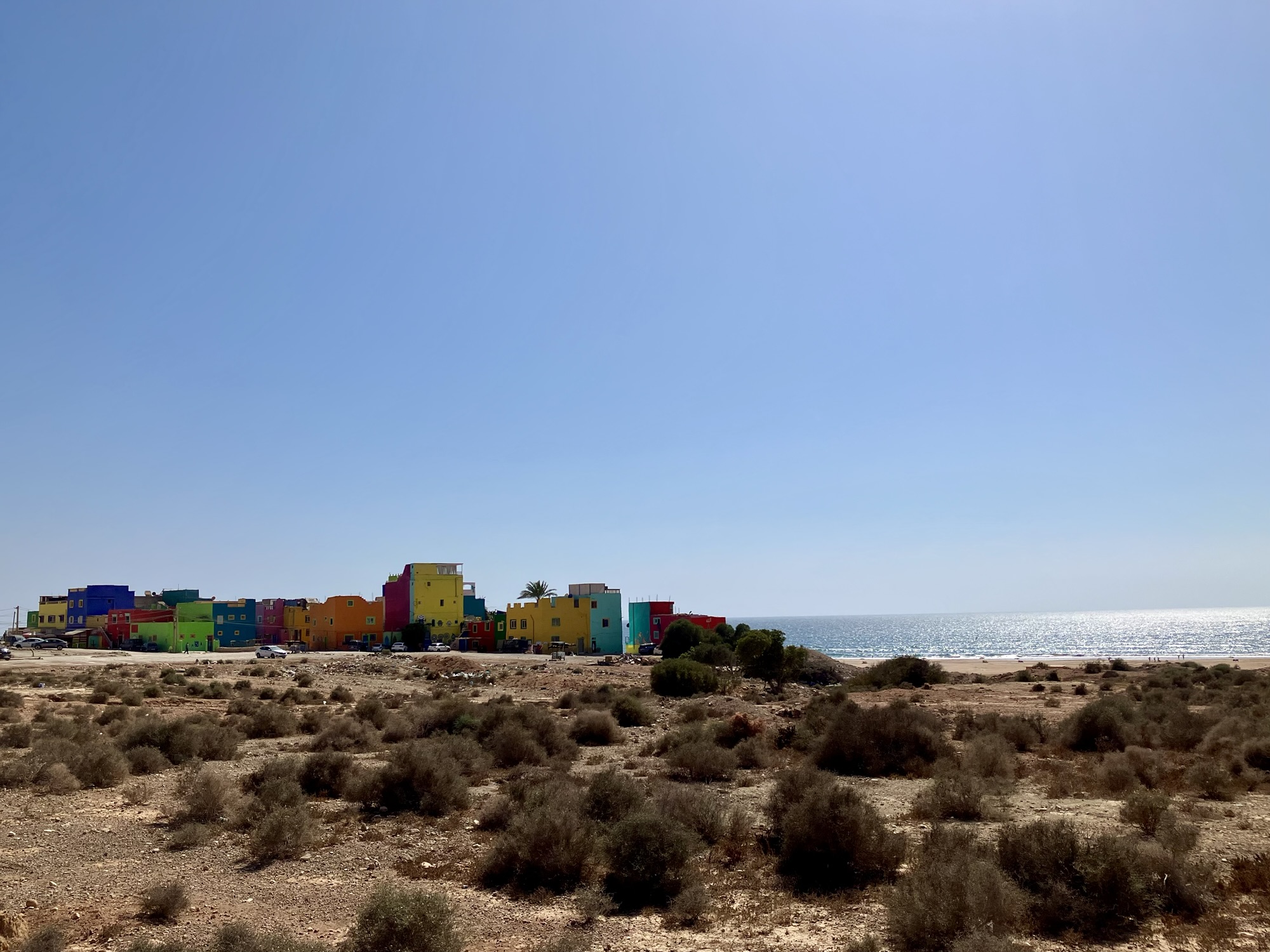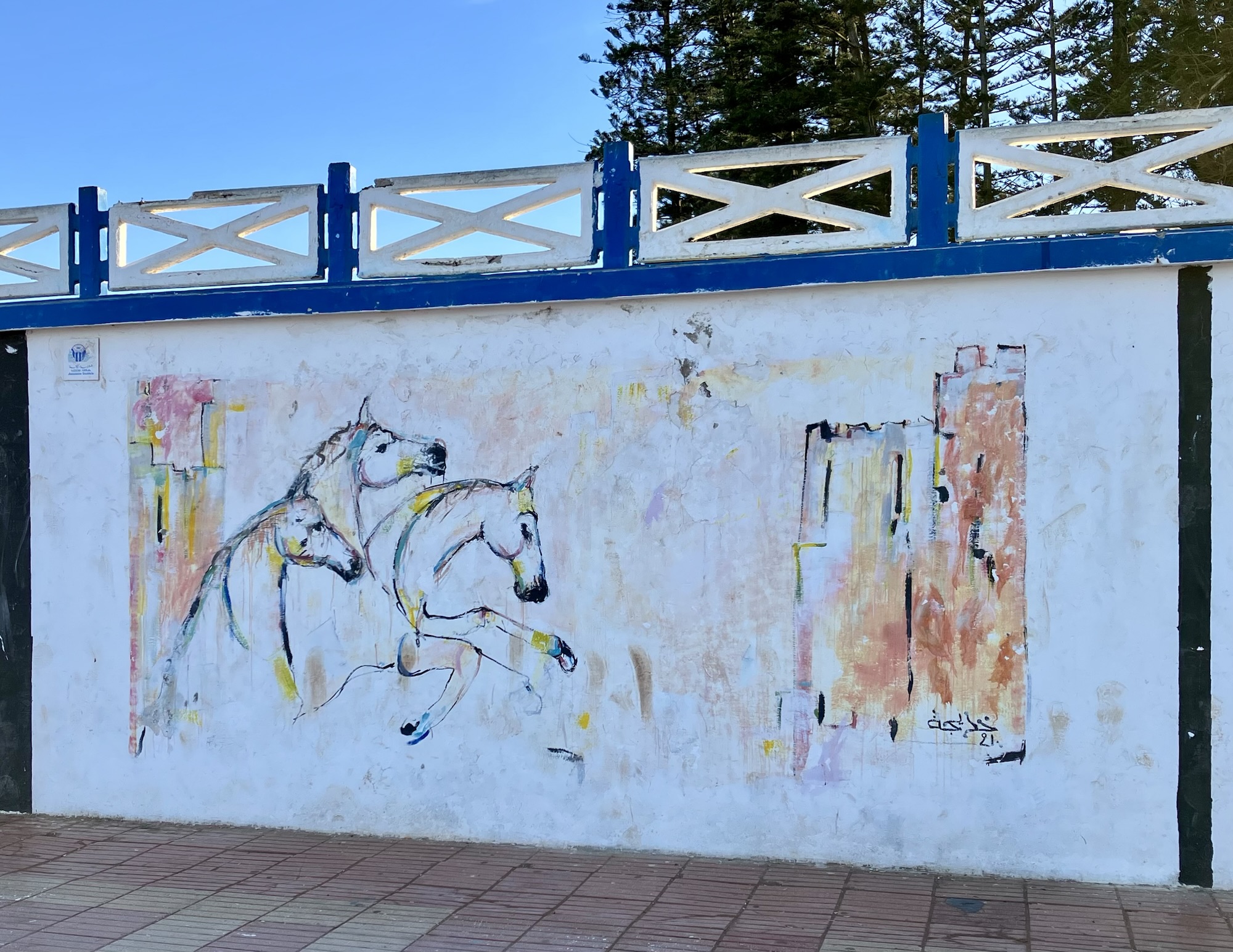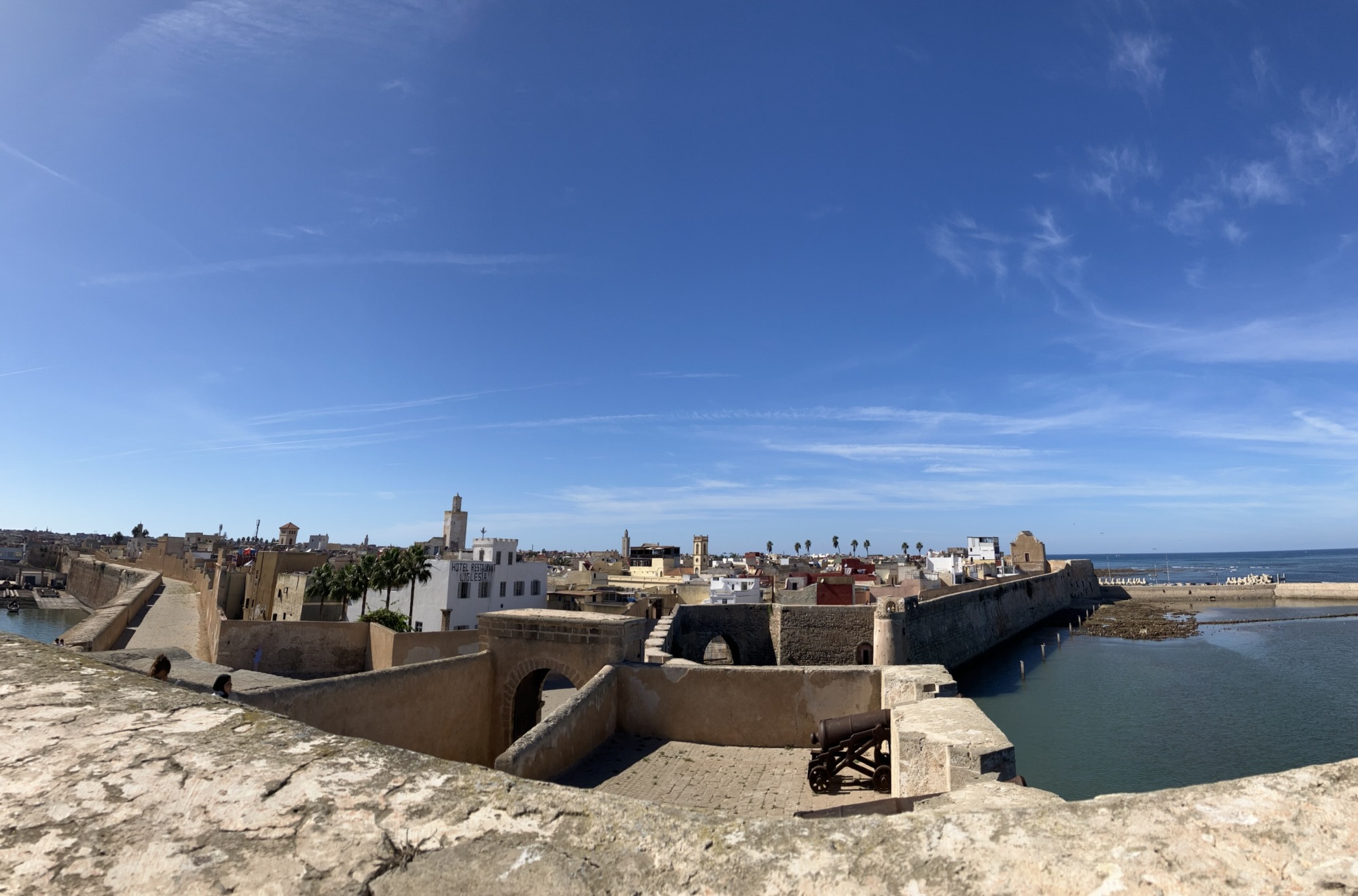 Bei dichtem Nebel und leichtem Regen ging es weiter an der Küste entlang südwärts. Ich reservierte ein Zimmer in einem Mini-Hotel im kleinen Ort Diabat unweit von Essaouira. Dass in unserem Hotel 1969 Jimi Hendrix gewohnt hat, wusste ich bei der Buchung nicht. Mit Janis Joplin und den Stones wurden damals ausgelassene Partys am Strand von Diabat gefeiert. Noch immer zieht Essaouira – die Perle am Atlantik mit Hippi-Flair – viele Künstler an. Galerien und Kunsthandwerk prägen die Gassen der Altstadt. Natürlich darf der orientalische Markt mit Obst, Gemüse, Gewürzen, Fisch und Fleisch nicht fehlen. Über den Hund, der sich beim Fleischhändler in der Schlange anstellte, mussten wir lachen – der war so witzig. Was Essaouira sehr sympathisch machte, dass die Händler nicht aufdringlich waren. Und der Bock-Chef bekam sogar ein Bier (nach Tagen der Enthaltsamkeit) im Strand- Café. Der Ort lebt vom Tourismus. Am Kilometer langem Sandstrand wetteifern die Anbieter von Touren mit Dromedaren, Pferden oder Quads. Wind geht hier immer, speziell nachmittags lockt er die Surfer ans Meer.