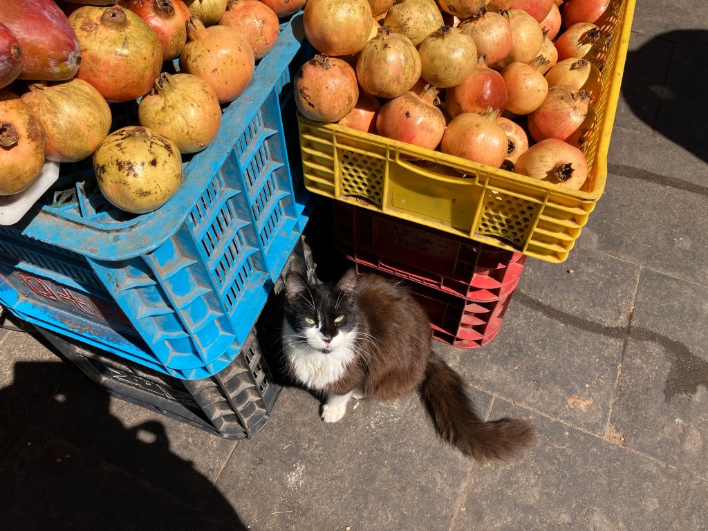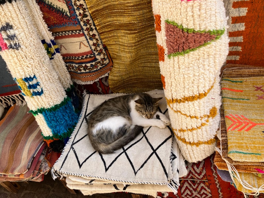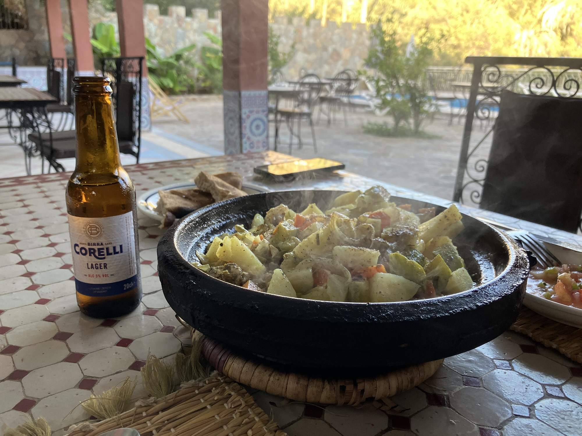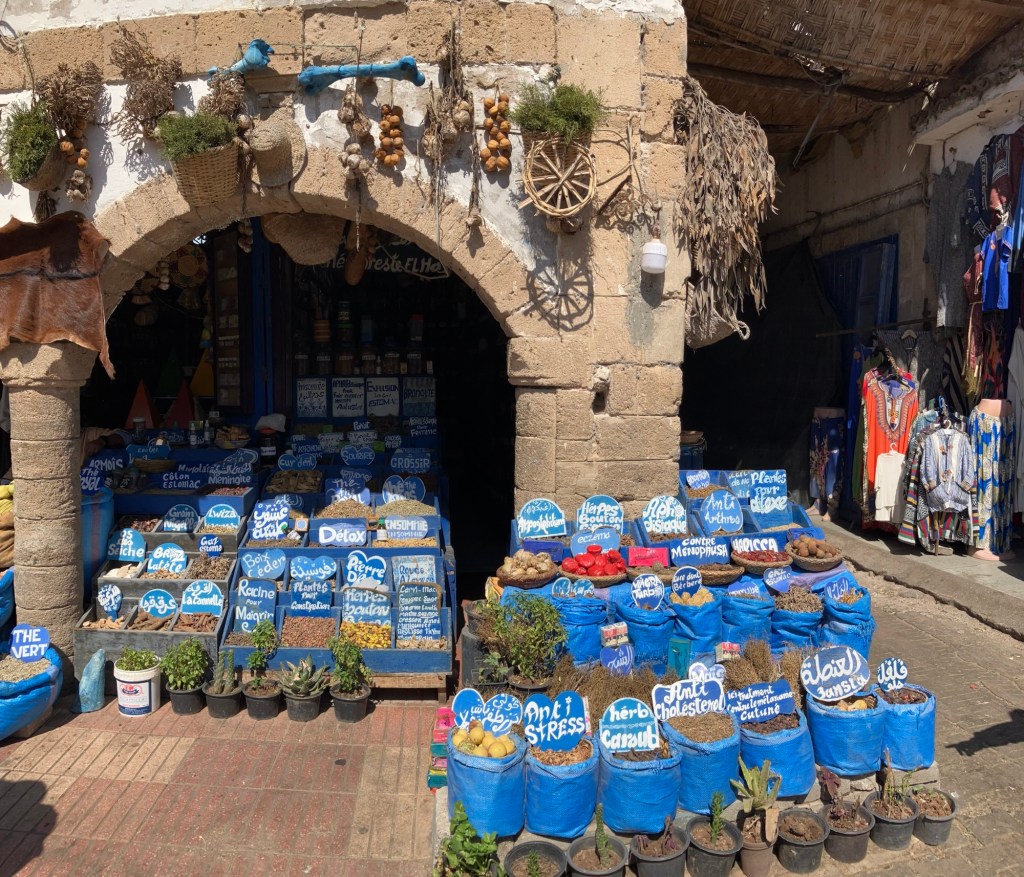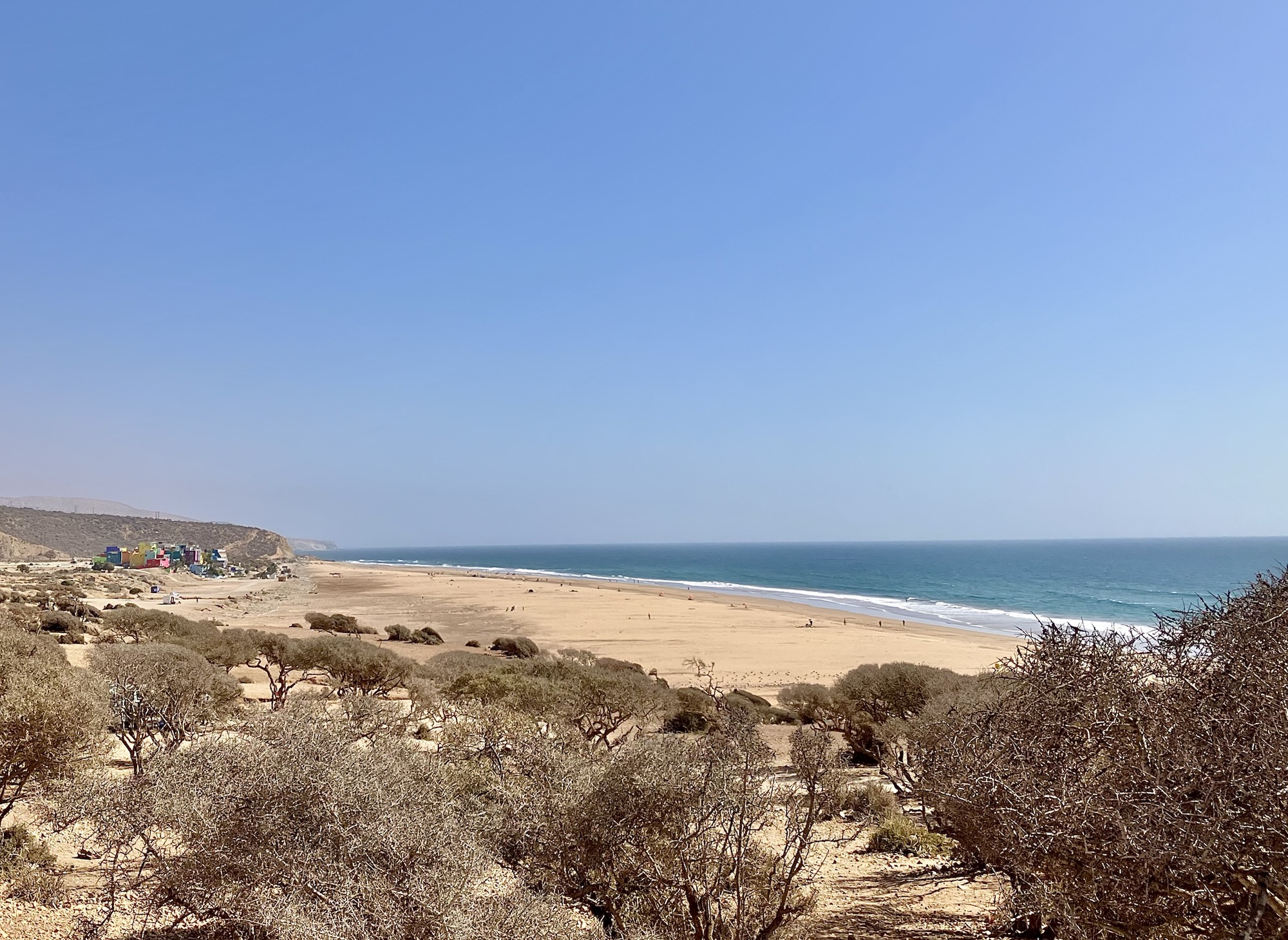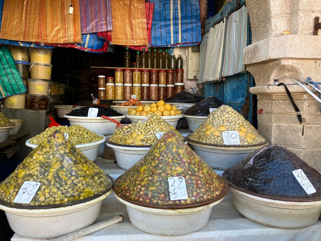 Marokko ist bekannt für die Arganbäume, sie sehen aus wie stacheliges Gestrüpp. Manchmal sieht man Ziegen hoch oben in den Kronen das Blattwerk abknabbern. Die Früchte werden mit Steinen gemahlen und liefern Öl, das als marokkanisches Nutella angeboten wird, meist schon zum Frühstück. Für mich schmeckt es nicht wie die Haselnusspaste aus Italien, sondern mehr wie flüssige Erdnussbutter, echt lecker. Die Verarbeitung – unter anderem zu natürlichen Kosmetikprodukten – wird hauptsächlich in Frauenkooperativen gemacht. Vielleicht kaufe ich mir so eine Creme? Soll ja Wunder bewirken.