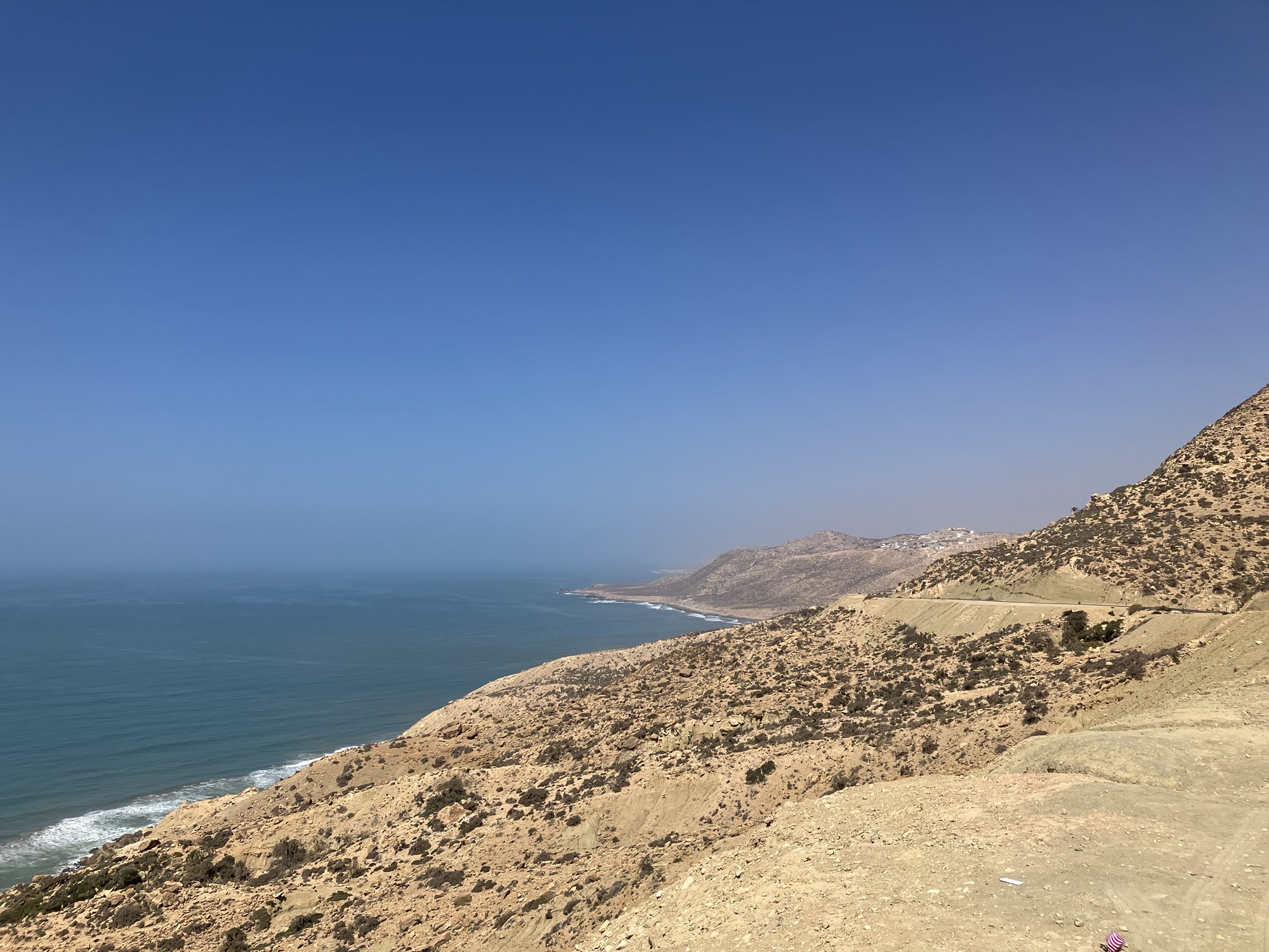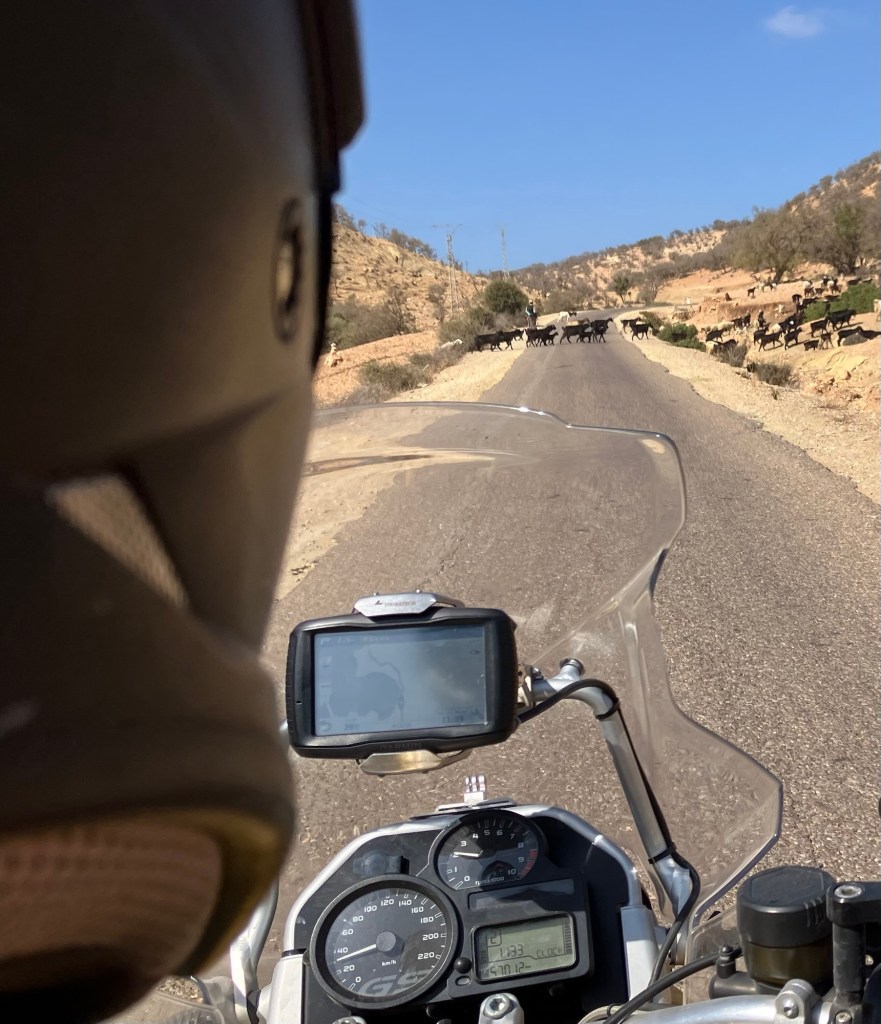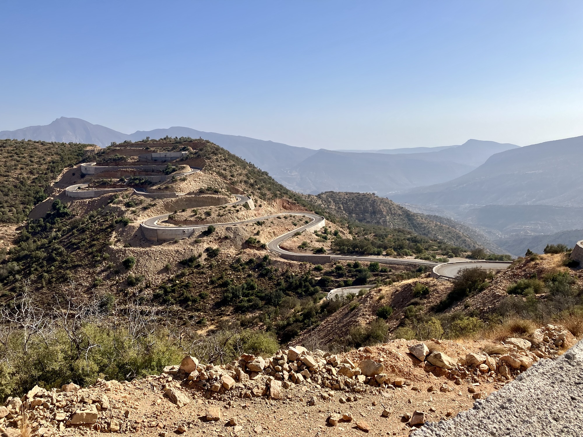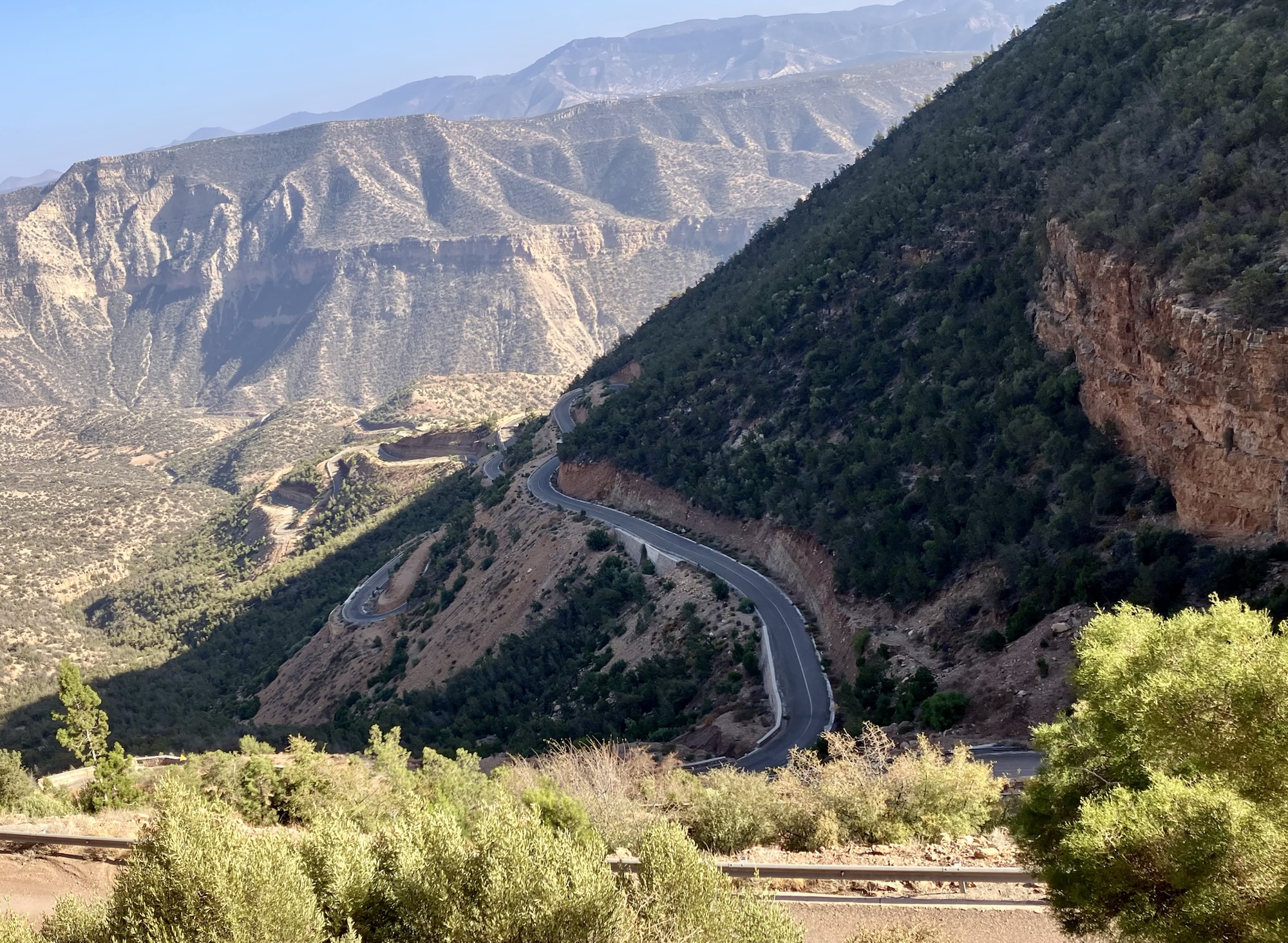 Grundsätzlich ist das Straßennetz in Marokko sehr gut ausgebaut und asphaltiert. Auf so einer tollen Straße ging es entlang der Küste in Richtung Agadir, wo wir bei Taghazoute auf der „1001-kurvenreichen“ Straße (tatsächliche Strassenbezeichnung RP 1001) rauf und runter zum Paradis Valley cruisten.