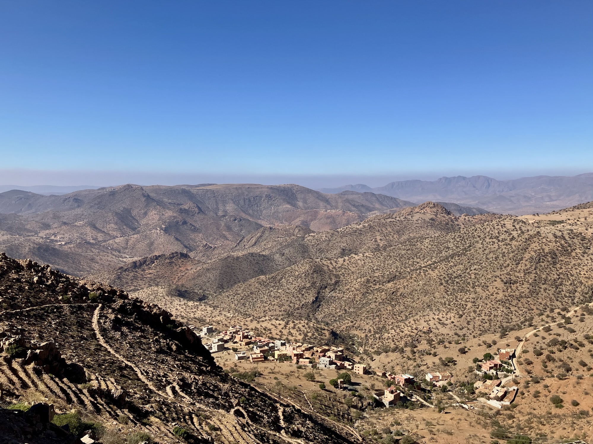 Um ein Souvenir und einige Freundschaften reicher kletterten wir auf den Bock und schaukelten mit unserem „Wüstenschiff“ (alias Bock) in Richtung Antiatlas. Die Gegend ist touristisch nicht so bekannt, obgleich es ein tolles Straßennetz gibt. Wir genossen die schönen Gegend. Noch ein Blick auf den Atlantik bei Sidi Ifni und weiter über den Col Kerdous ging es für ein paar Tage nach Tafraout. Von dort aus starten ein paar vielversprechende Ausflüge.