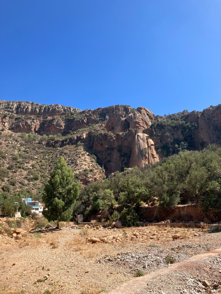 Die Cascade Immouzer wäre grundsätzlich ein Magnet für Besucher. Jedoch drei Jahre ohne Regen liessen den Wasserfall fast zur Gänze austrocknen. Für die Händler und gastronomischen Angebote, die entlang des Weges zum Wasserfall auf Kundschaft warten, ist das natürlich eine Katastrophe. Die Leute bleiben fern. In den Herbergen mangelt es daher auch an finanziellen Mitteln, um kleine Renovierungen vornehmen zu können. Fotos können das Schöne zeigen, aber im Detail sieht es dennoch etwas bescheidener aus. Trotzdem, wir haben die Tage der Ruhe genossen und waren erholt für die Weiterfahrt in den Süden.