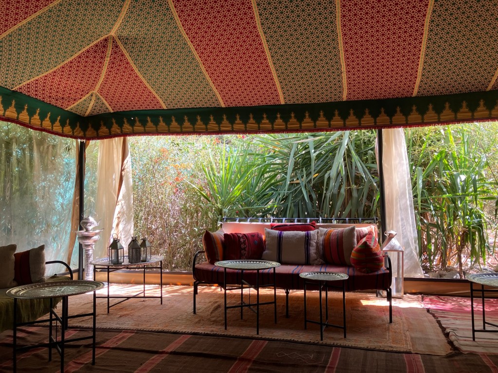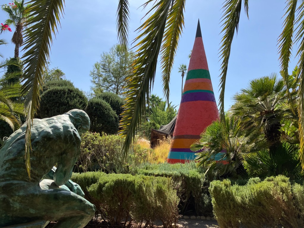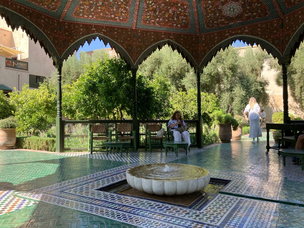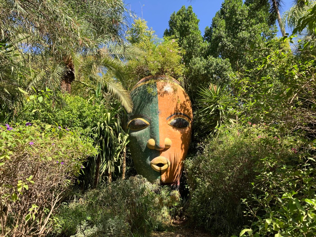 Aber noch näher an der Stadt Marrakesch liegt der magische Garten ANIMA von André Heller. Im Prospekt steht: Betreten Sie eine magische Welt der Sinnlichkeit, des Staunens, der Kontemplation, der Freude, der Heilung und der Inspiration. Wir liessen uns auf dieses Experiment ein und wanderten auf den angelegten Wegen durch verschiedene überraschende Landschaften. Überall gab es Nischen mit Bänken zum Verweilen und die Pflanzen und Bäume spendeten eine angenehme Kühle. Zur Geschichte von Anima: das Gartenprojekt startete 2008. Das Gelände war eine aufgelassene Rosenfarm und verfügt nur über fruchtbaren Boden. In 8 Jahren wurde dieses lebendige Kunstwerk geschaffen, das Arbeiten von verschiednen Künstlern beherberg (z.B.:Pablo Picasso, Keith Haring, Igos Mitoraj, Monika GilSing). Der Mosaikkopf, auf dem Foto, wurde von Heller selbst geschaffen. Die New York Times bezeichnete ANIMA als Wunderland. Der Heller-Garten ist in der Tat ein verzaubernder Ort. Die kontemplative Ruhe hat uns sogar zu einem kurzen Schläfchen im Berber-Zelt verleitet, bevor es in die pulsierende Metropole Marrakesch weiter ging.