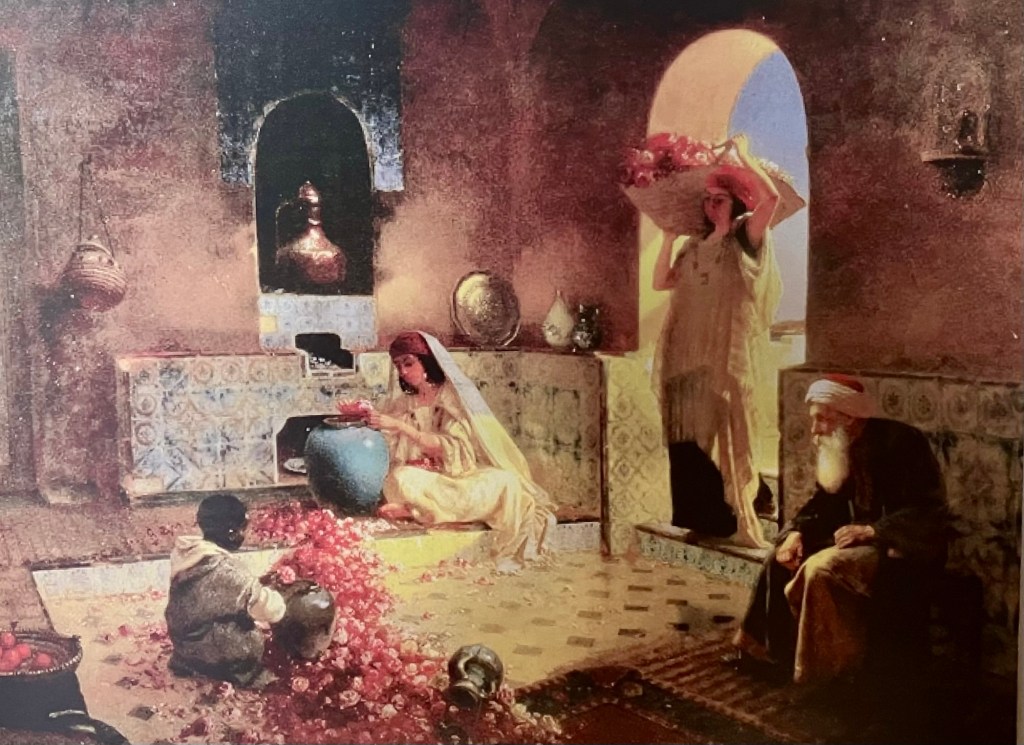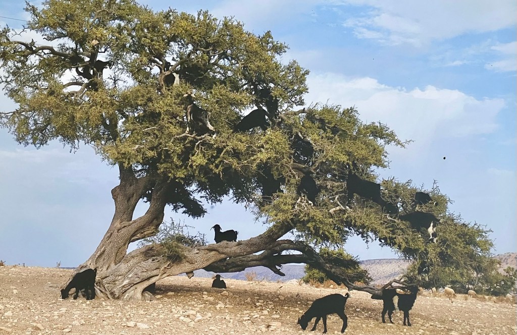 Es gibt auch ganz kleine Gärten in den Innenhöfen der Riads (der arabische Begriff Riad bedeutet Garten). Ein Beispiel dafür ist das Parfum Museum. Es liegt auch in der Medina. Von aussen war das Haus kein einladender Anblick. Der Innenbereich, der jetzt als Museum genutzt wird hat uns überrascht. Vier große Orangenbäume spenden Schatten und machen ein angenehmes Klima im Hof. Das Museum selber ist nur klein und erzählt etwas über die Geschichte des Parfüms. Wenn man einmal in Grass in Frankreich war, dann kann diese Museum natürlich nur mit marokkanischen Traditionen ergänzen. So ist, wie schon gehört, der Argan-Baum DER Wunderbaum, der für die Naturkosmetik ein wichtiger Rohstofflieferant ist – natural anti-wrinkle agent (stand auf einer Tafel). Vielleicht sollte ich mir doch so eine Gesichtscreme kaufen? Interessant fand ich die sieben Düfte Marokkos, die in der marokkanischen Lebensart, im täglichen Leben und bei Festivitäten eine wichtige Rolle spielen: Orangenblüte, Jasmin, Minze, Safran, Rose, Zeder und Verbene. Die Gewinnung der Essenzen aus den einzelnen Komponenten ist aufwändig und verlangt Geduld. den Besuch war es schon wert, alleine dafür, dass es eine kleine Ruheoase mitten in den Souks der Medina ist.