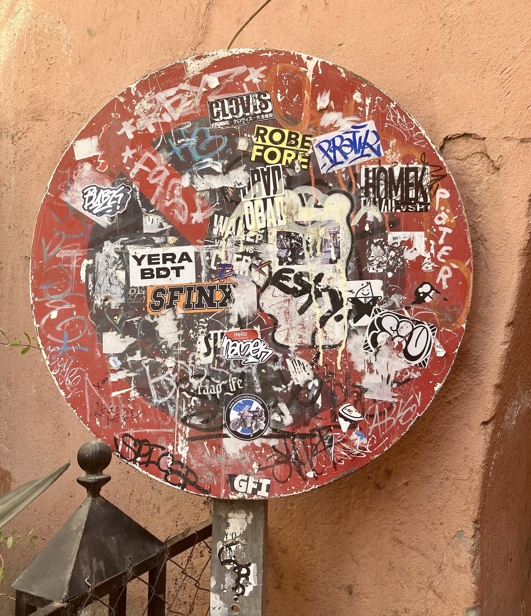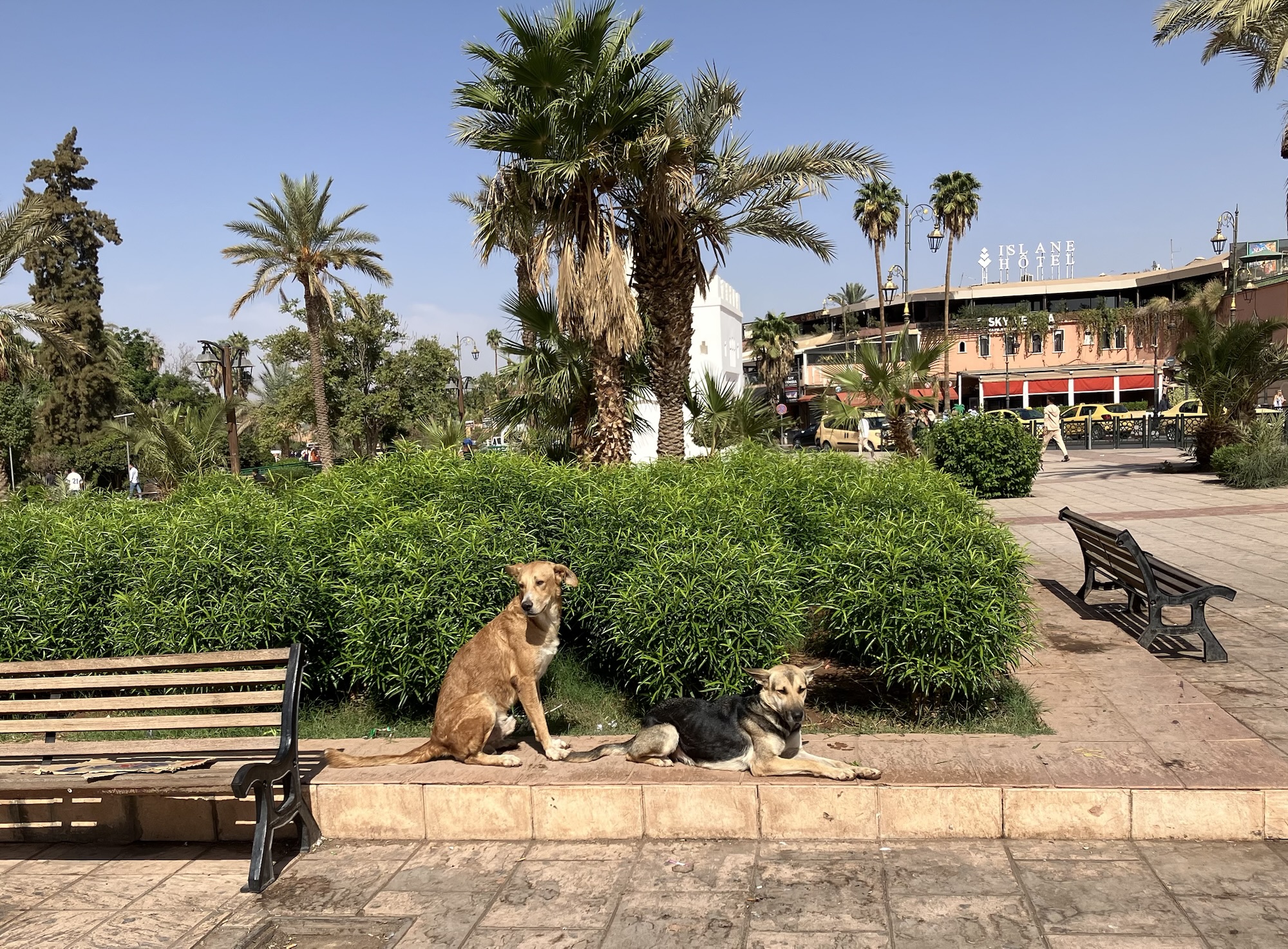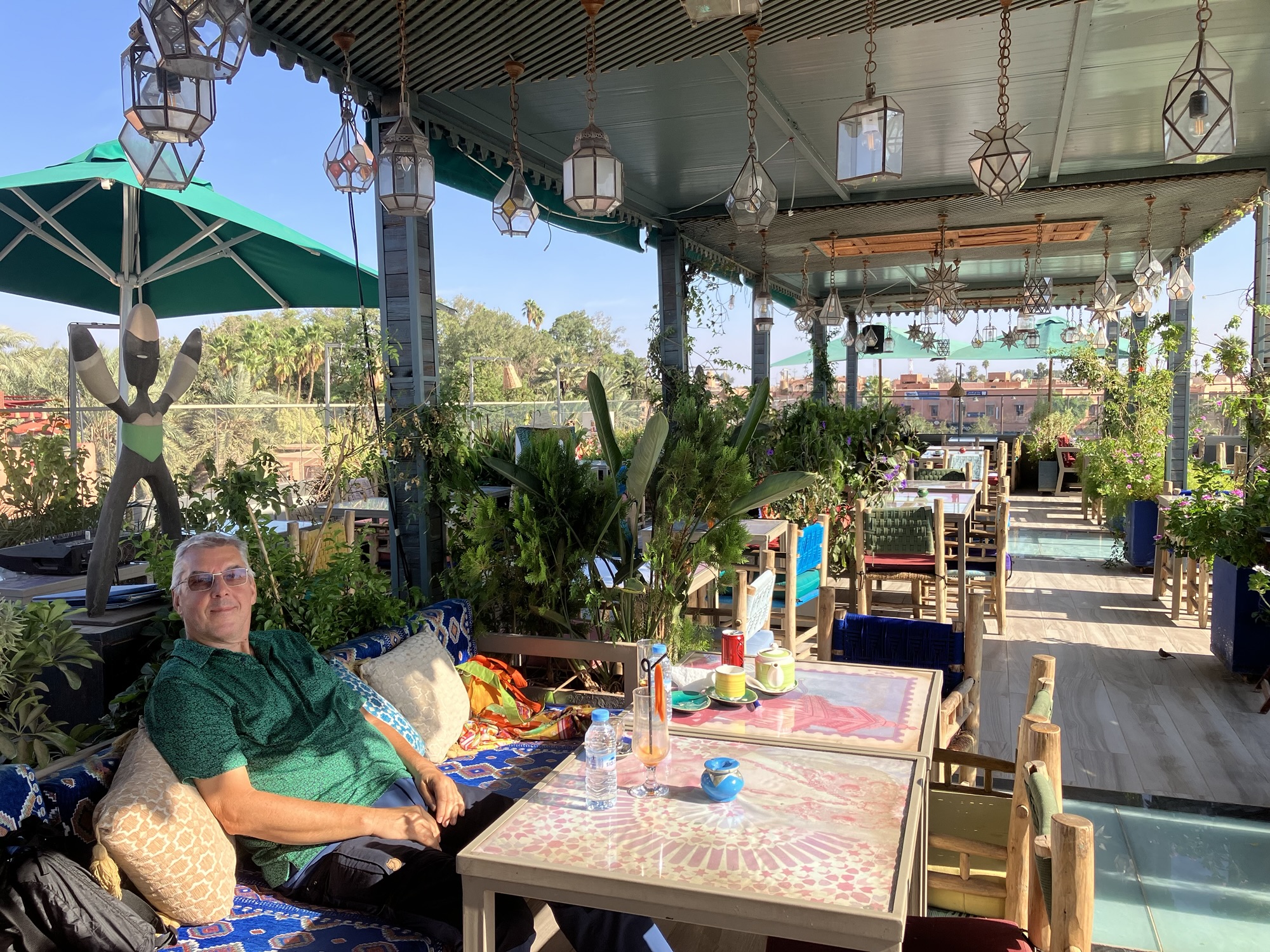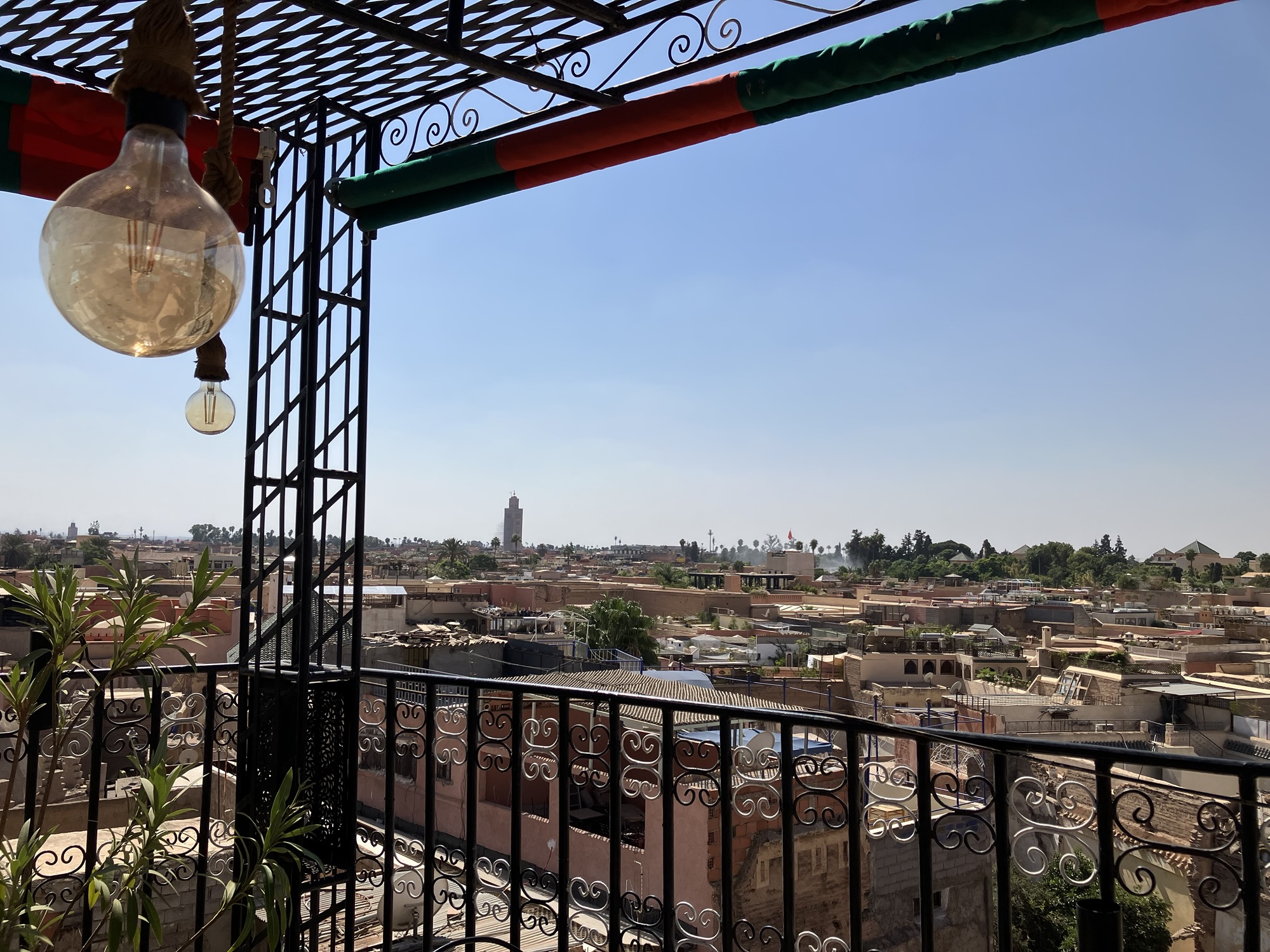 Wir haben die Erfahrung gemacht, dass sich ein eigener Guide für ein paar Stunden immer lohnt. Es werden Dinge erzählt und gezeigt, die nicht im Polyglott stehen. Wir bekamen unseren Guide von einer Freundin vermittelt, die schon in Marrakesch war. Taib spricht perfekt Deutsch und hat auf seinen Führungen schon die österreichischen Regierungsspitzen kennen gelernt. Wir waren in besten Händen. Neben den verborgenen Handwerkergassen in den Souks stand auch das Palais de la Bahia und die Medersa Ben Youssef am Programm. Unser Treffpunkt war vor dem Cafe De France am Jemaa el-fna – Gauklerplatz. Scheinbar ist das ein sicherer Platz um sich zu finden in dem Gewirr, das normalerweise auf dem großen Platz herrscht. Derzeit staubt eine Baustelle alles ein, dennoch liessen sich die Schlangenbeschwörer und Berberaffenquäler nicht abschrecken. Geschäfte müssen gemacht werden. Mein gelber Pullover war unser Erkennungszeichen. Pünktlich starteten wir los.