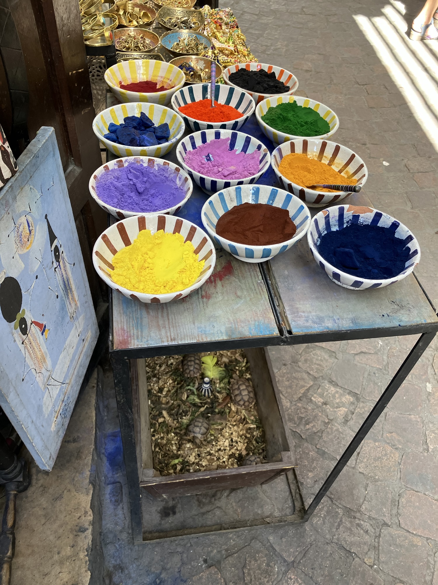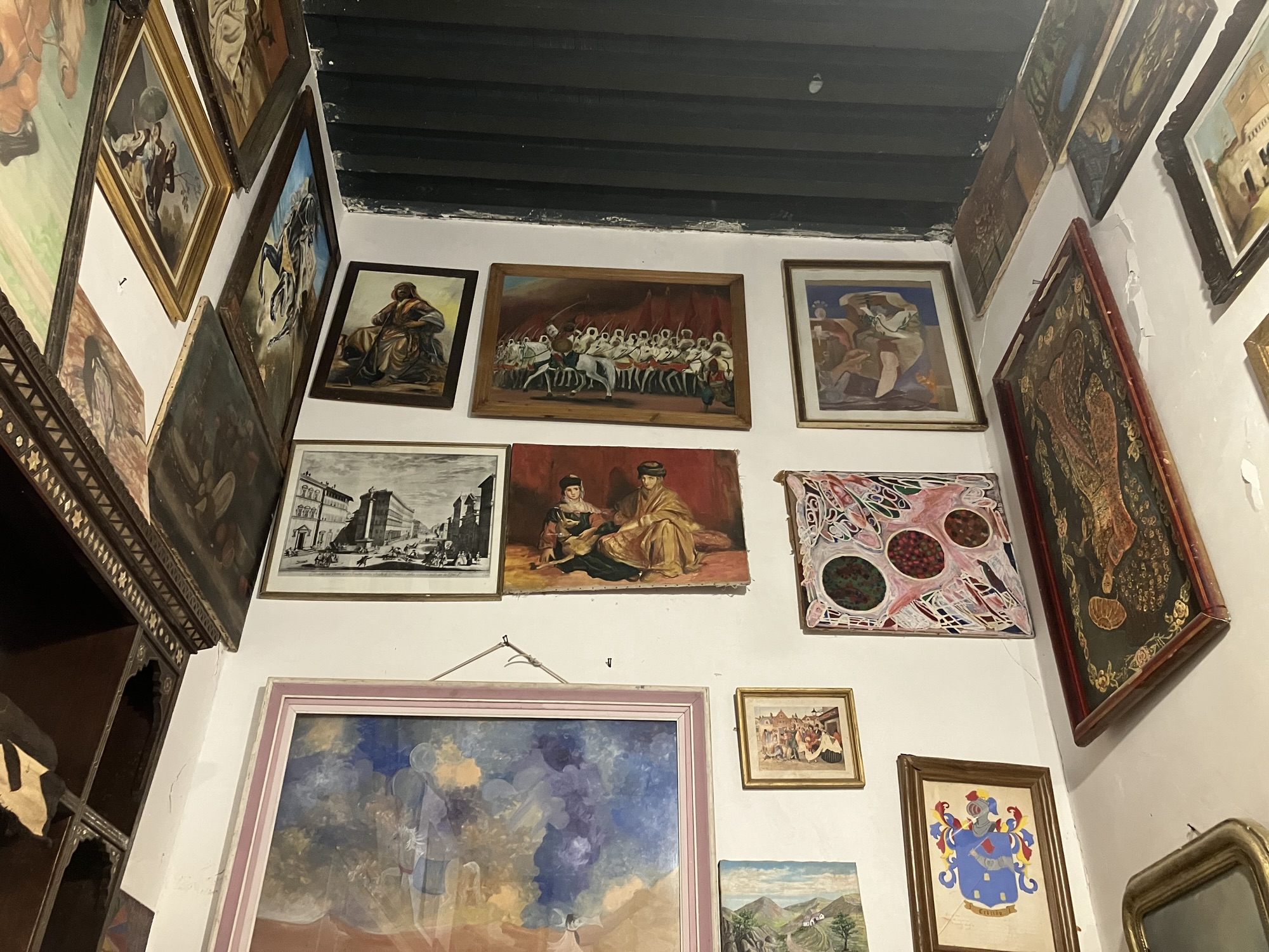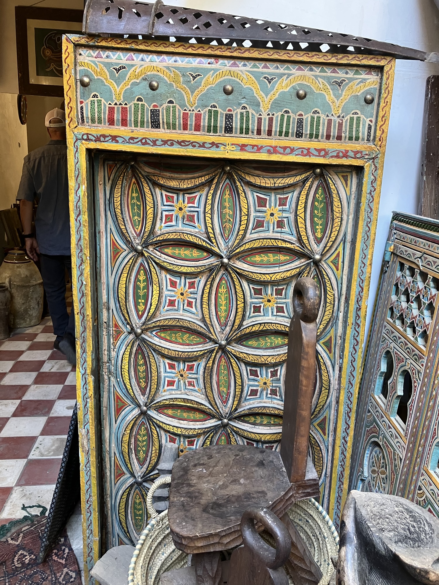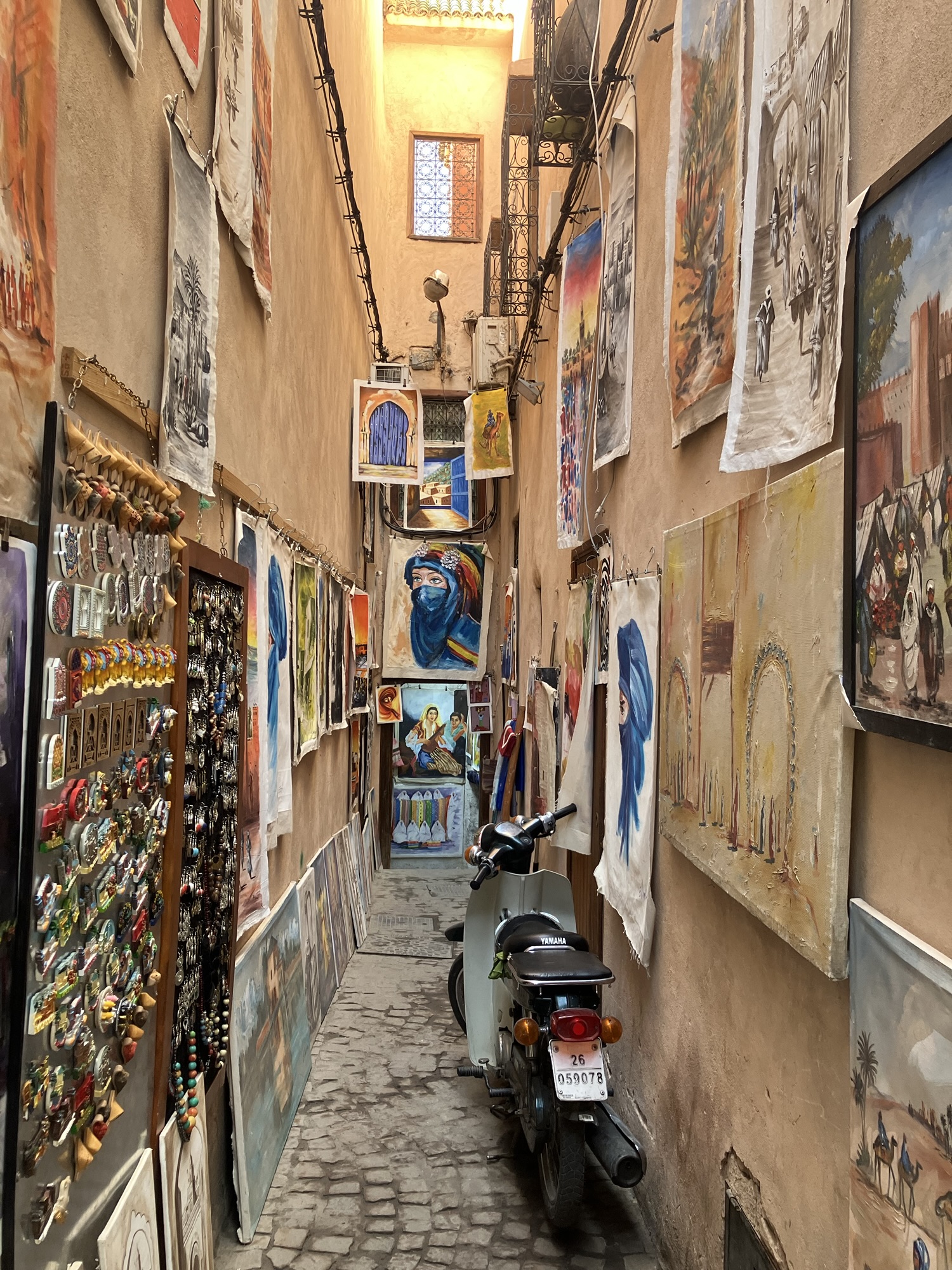 Aber weiter in den Souks. 7000 Geschäfte gibt es in den Gassen der Medina und jedes Geschäft macht jeden tag seinen Umsatz, so unser Fremdenführer. Er muss es wissen, nachdem er hier aufgewachsen ist und viele der Händler persönlich noch kennt. Im Viertel der Lederhändler konnten wir bei der Versteigerung der Lederballen für die marokkanischen Latschen, die in keinen Werkstätten handgefertigt werden, miterleben. Diese Versteigerung findet jeden Tag um 14:00 Uhr statt. Ich schicke euch durch meinen „Foto-Souk“ (inklusive Besuch beim Antiquitätenhändler, jetzt mein Lieblingsgeschäft in Marrakesch). Ihr müsst euch dazu das Gebrumme von Mopeds vorstellen und Stimmengewirr.