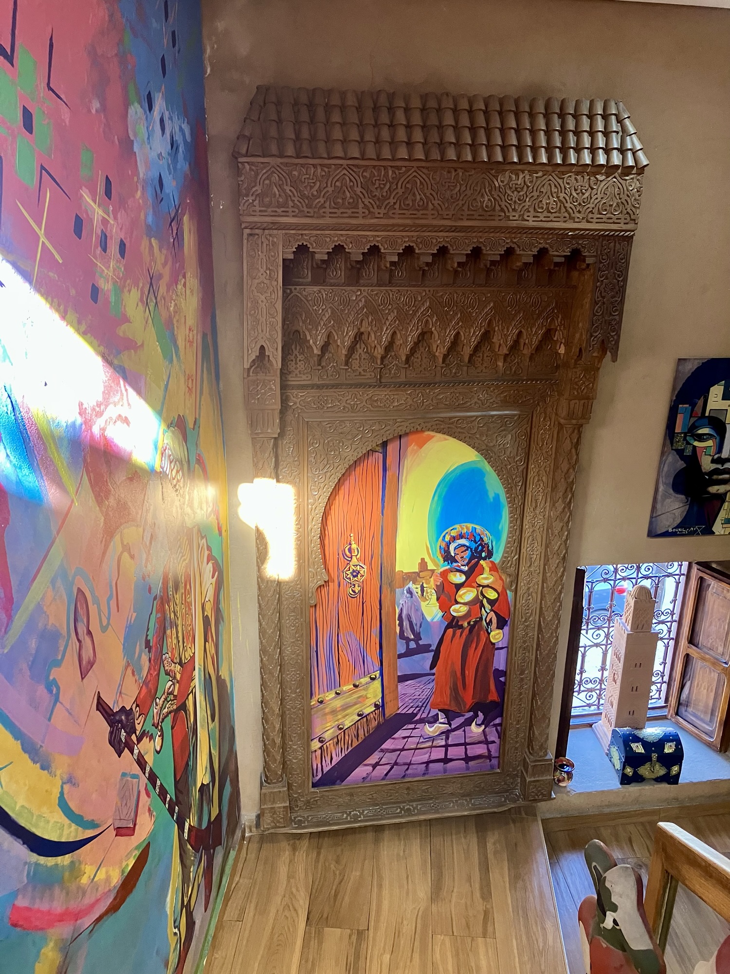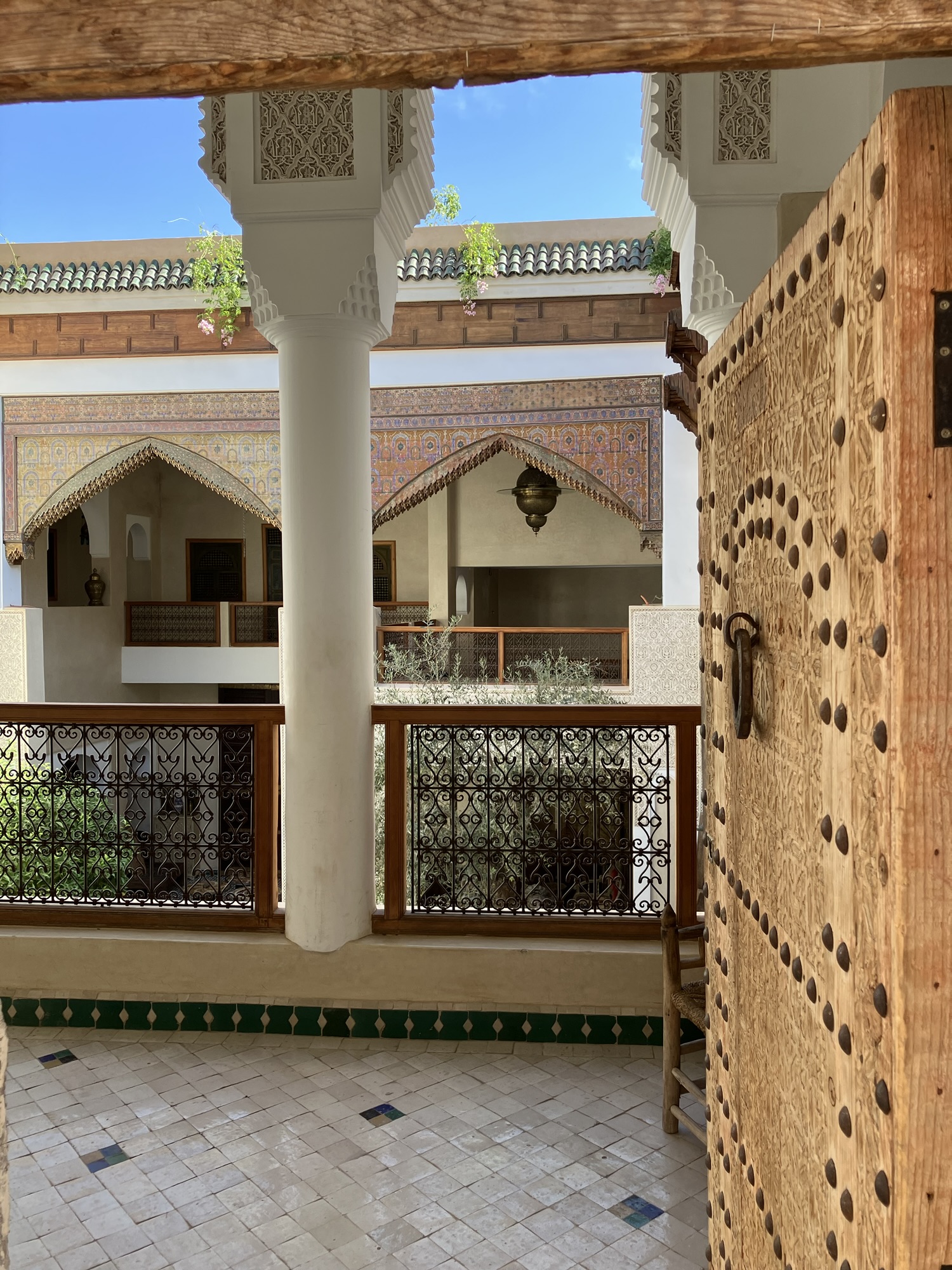 In der Nähe der Medresa liegt das Storchenhaus das Dar Bellarj. Die Geschichte reicht weit zurück, als das Haus eine Karawanserei war. Aber warum Storchenhaus: Hier konnten Störche, die auf ihrer Winterreise verletzt wurden, abgegeben werden. Es war quasi ein Storchenspital. Störche gibt es viele in Marokko. Ihre Nester findet man an verschiedensten Plätzen, z.B.: auf Minaretten oder Sendemasten. Das Storchenhaus, heute ist es ein Kulturzentrum, ist einer Schweizer Innenarchitektin zu verdanken – Susanna Biedermann.