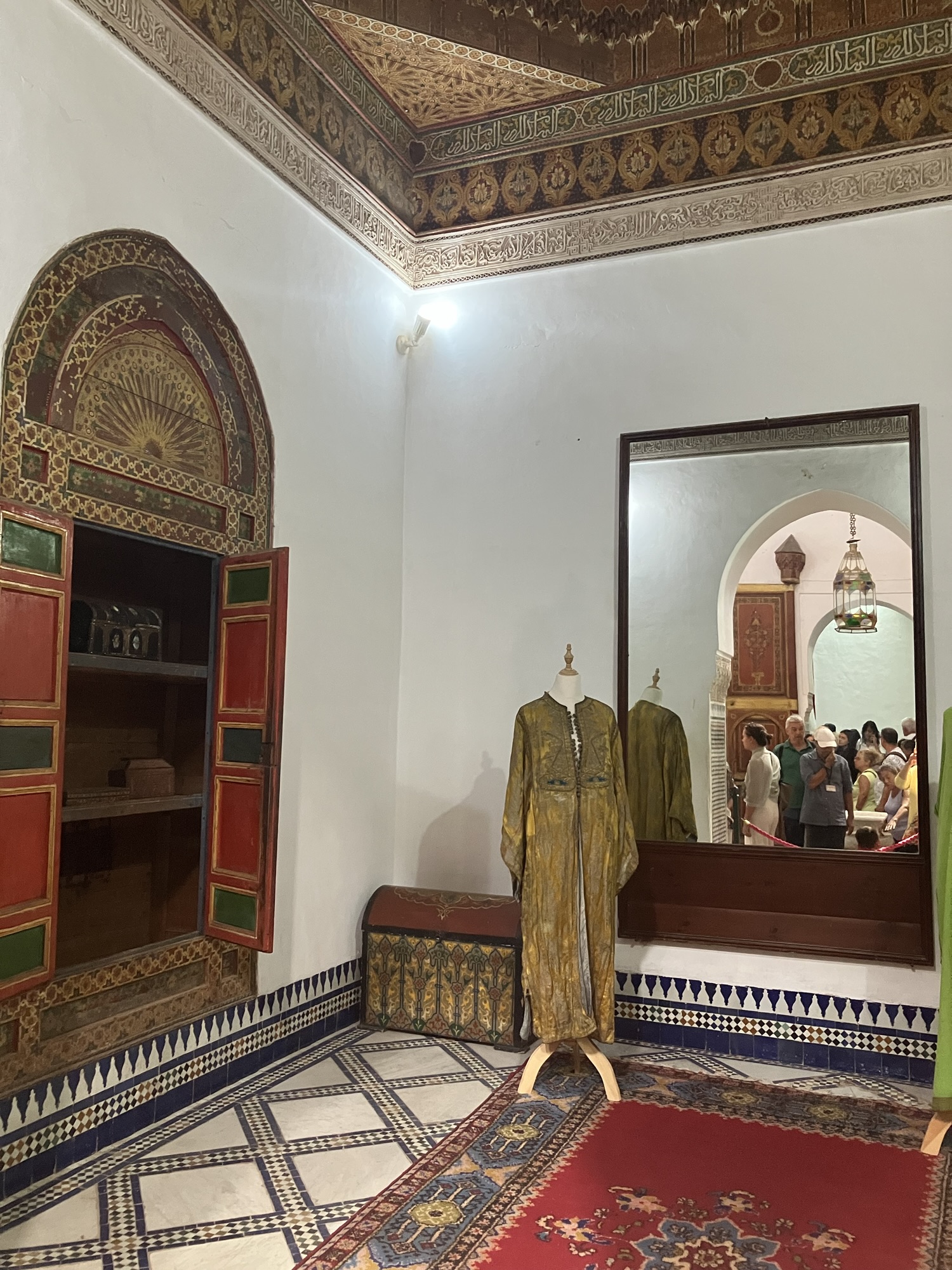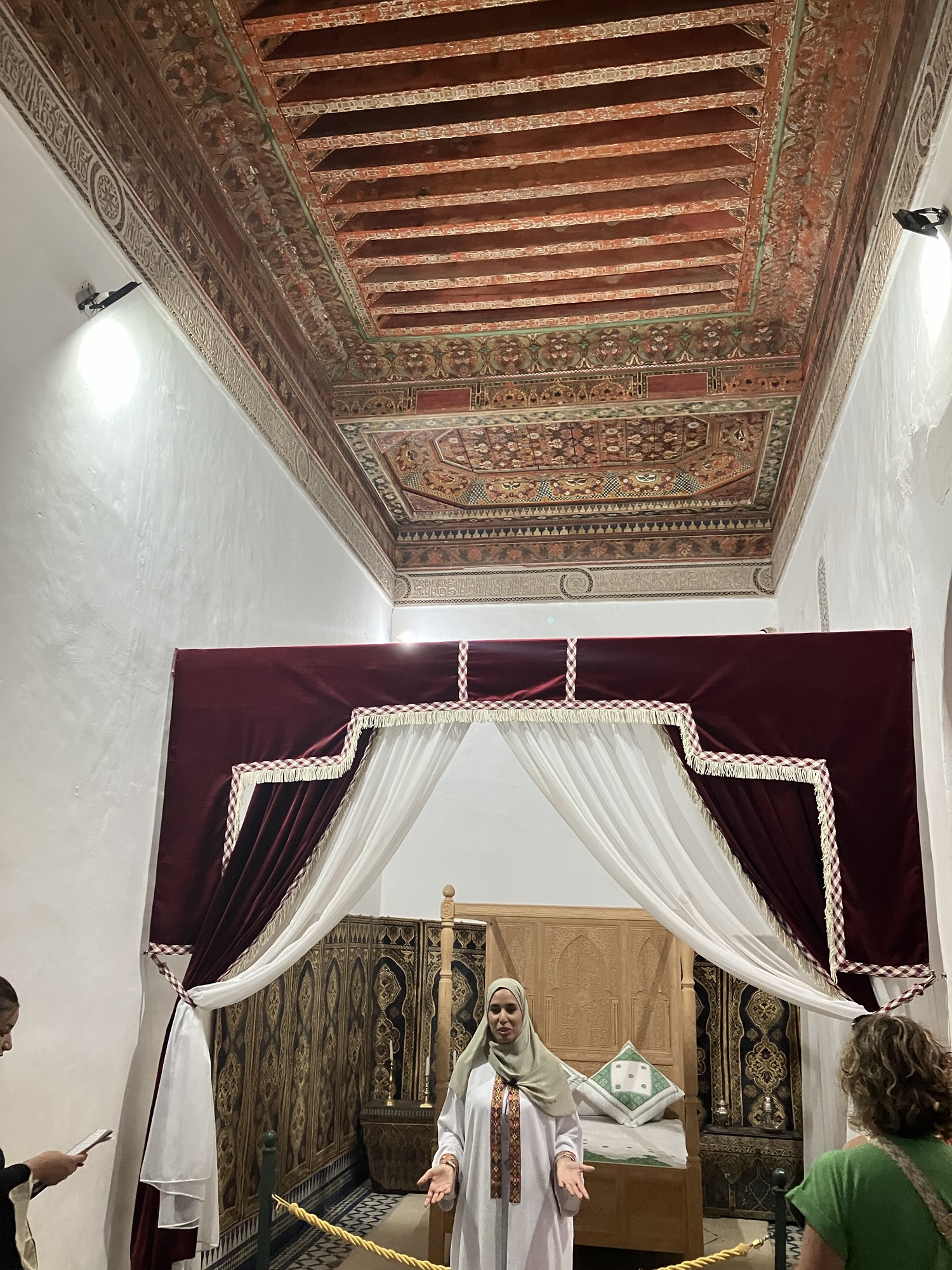 Im Palast des Wesirs lebten auch Haremsdamen. Wenn ich es richtig in Erinnerung habe, 24. Der Wesir selber durfte nur vier Frauen haben. Davon war eine Frau die Hauptfrau – hier war es Bahia, die Schöne. Die anderen Frauen waren Geschenke für Gefälligkeiten. Ebenso konnte eine Frau aus dem Harem weiter geschenkt werden. Nicht der Wesir selber entschied, welche Frau gehen musste, sondern die Eunuchen suchten eine Frau aus. Heute gibt es in Marrakesch nur noch zwei Männer, die mehr Frauen haben, genau zwei Frauen. Es muss jeder Frau das gleiche geboten werden. Heute ist es sicher eine Frage des sich leisten können, oder sich leisten wollen.