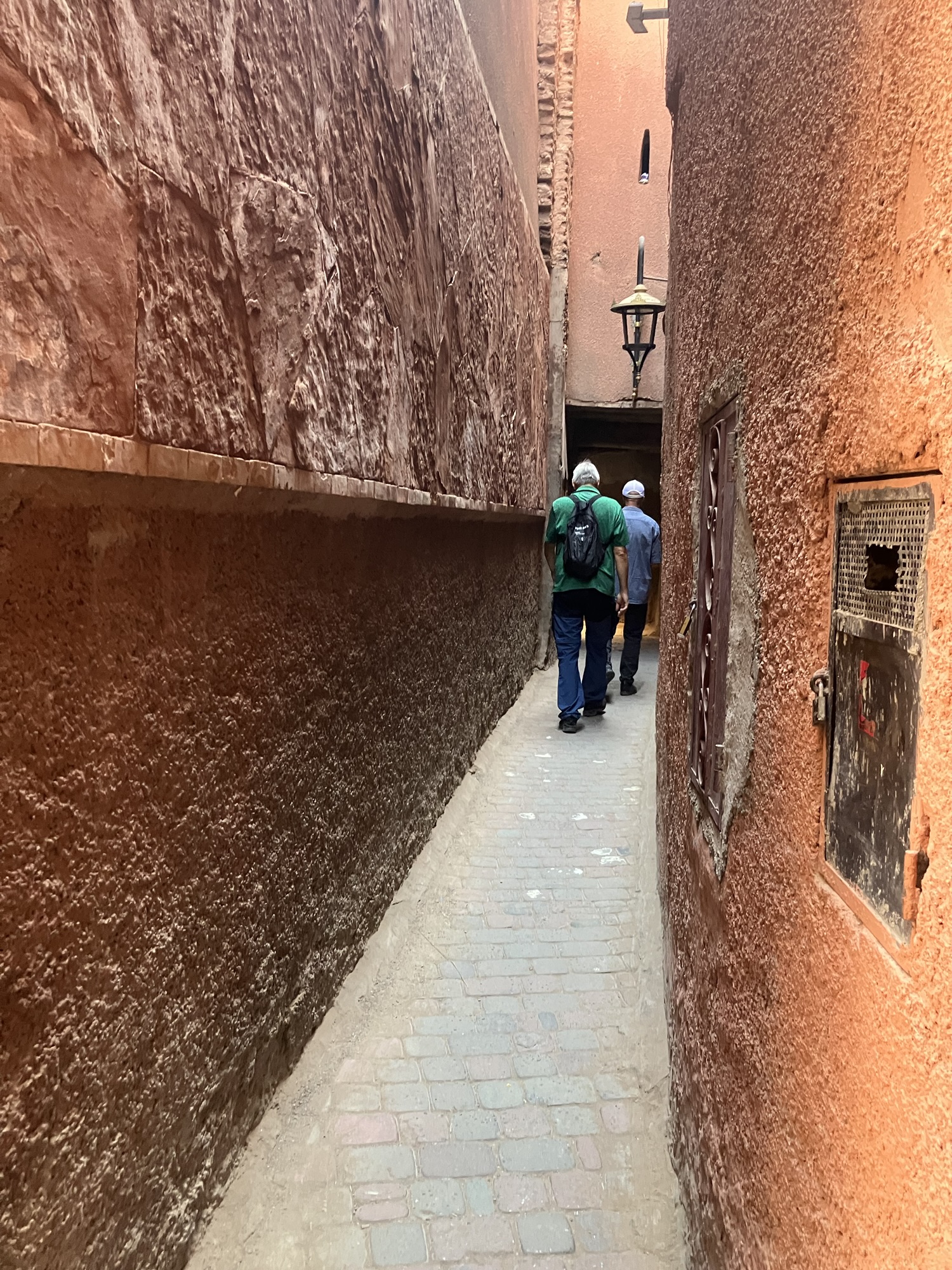 Wir durchstreiften einige weniger von Touristen frequentierte Gassen. Unser Guide zeigte uns sein Elternhaus. Er war selber war hier aufgewachsen. Später als er schon zu studieren begonnen hatte, war er der jüngste Bezirksschreiber mit 18 Jahren. Es gab nämlich in jedem Bezirk eine Schreibstube. Viele konnten nicht schreiben und Lesen. Die Schulpflicht wurde erst nach der Unabhängigkeit Marokkos 1956 schrittweise eingeführt. Grundsätzlich gilt die Schule für alle Kinder bis 15 Jahre. Die Grundschule kostet nichts, jedoch die Kosten für den Schulbus oder wenn die Kinder im Internat bleiben müssen, weil sie zu entlegen wohnen, das muss von den Familien aufgebracht werden.