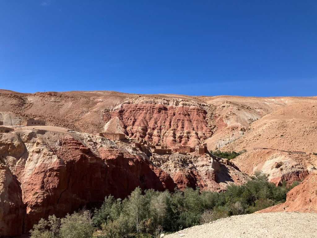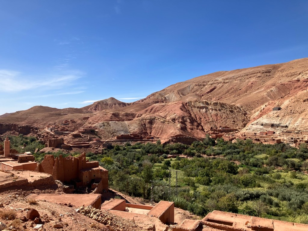 Das ist eine die meist besuchten Kasbahs. Karawanen von Autobussen mit chinesischen Gästen (nichts gegen Chinesen) standen bereits bei der Aussichtsplatform und am Busparkplatz. Nix für uns! Daher fuhren wir auf der schmäler werdenden Straße weiter in den Hohen Atlas hinein. Leider war die Region auch vom Erdbeben 2023 betroffen. Das war uns so nicht klar. Vor allem an den Lehmbauten waren die Schäden enorm. Die Landschaft ist unglaublich beindruckend, das kann man auf den Fotos gar nicht so rüber bringen.