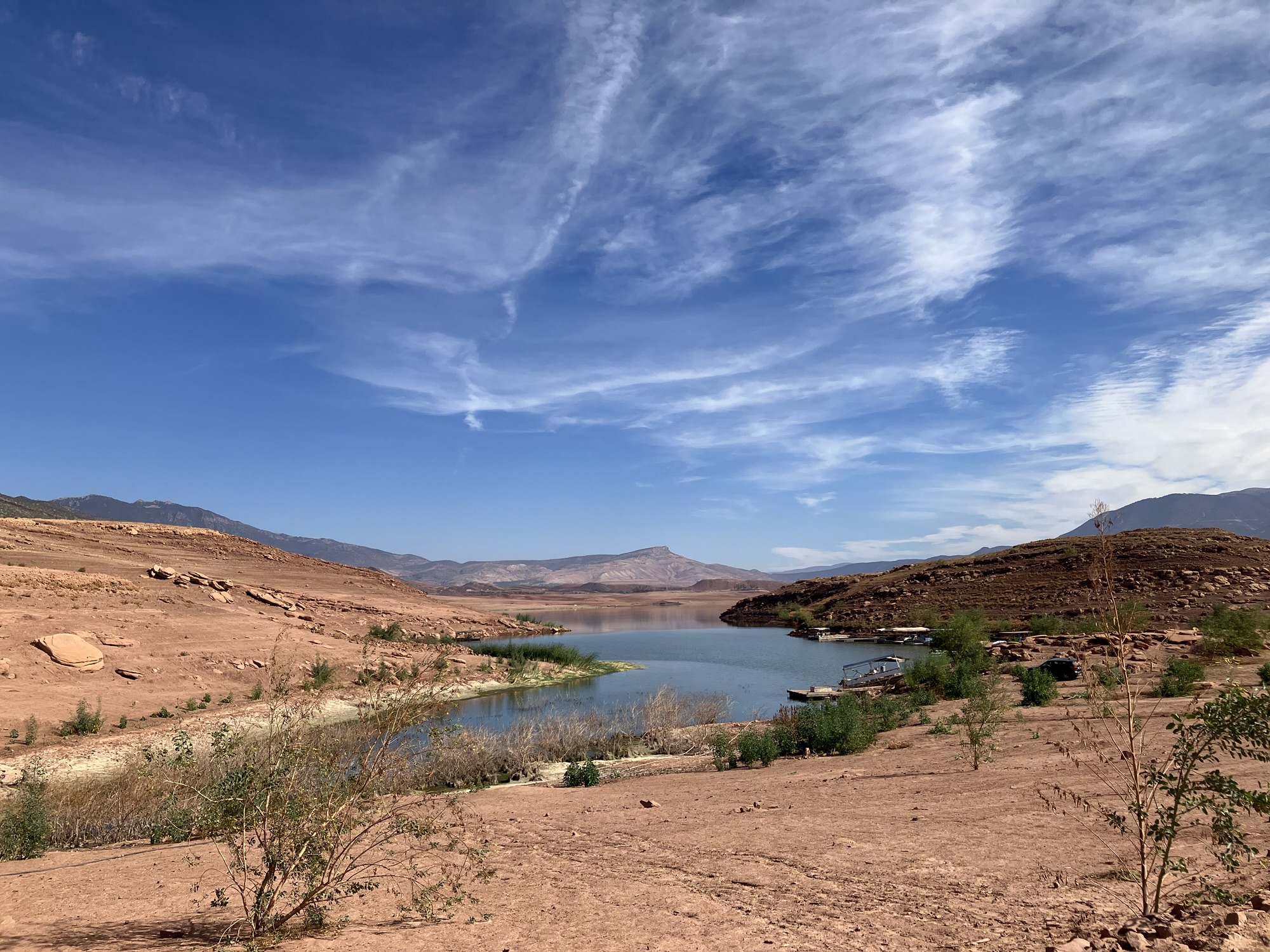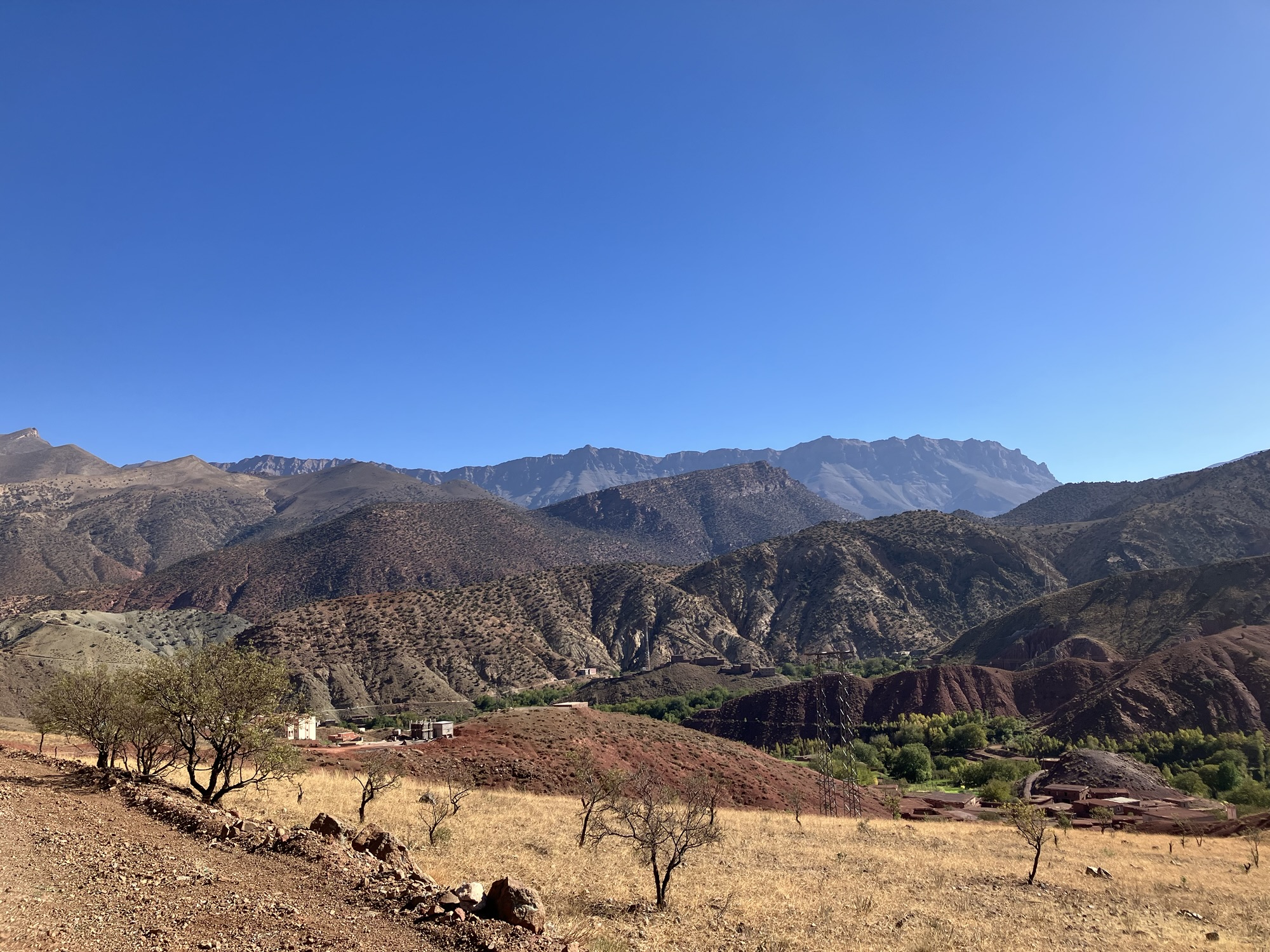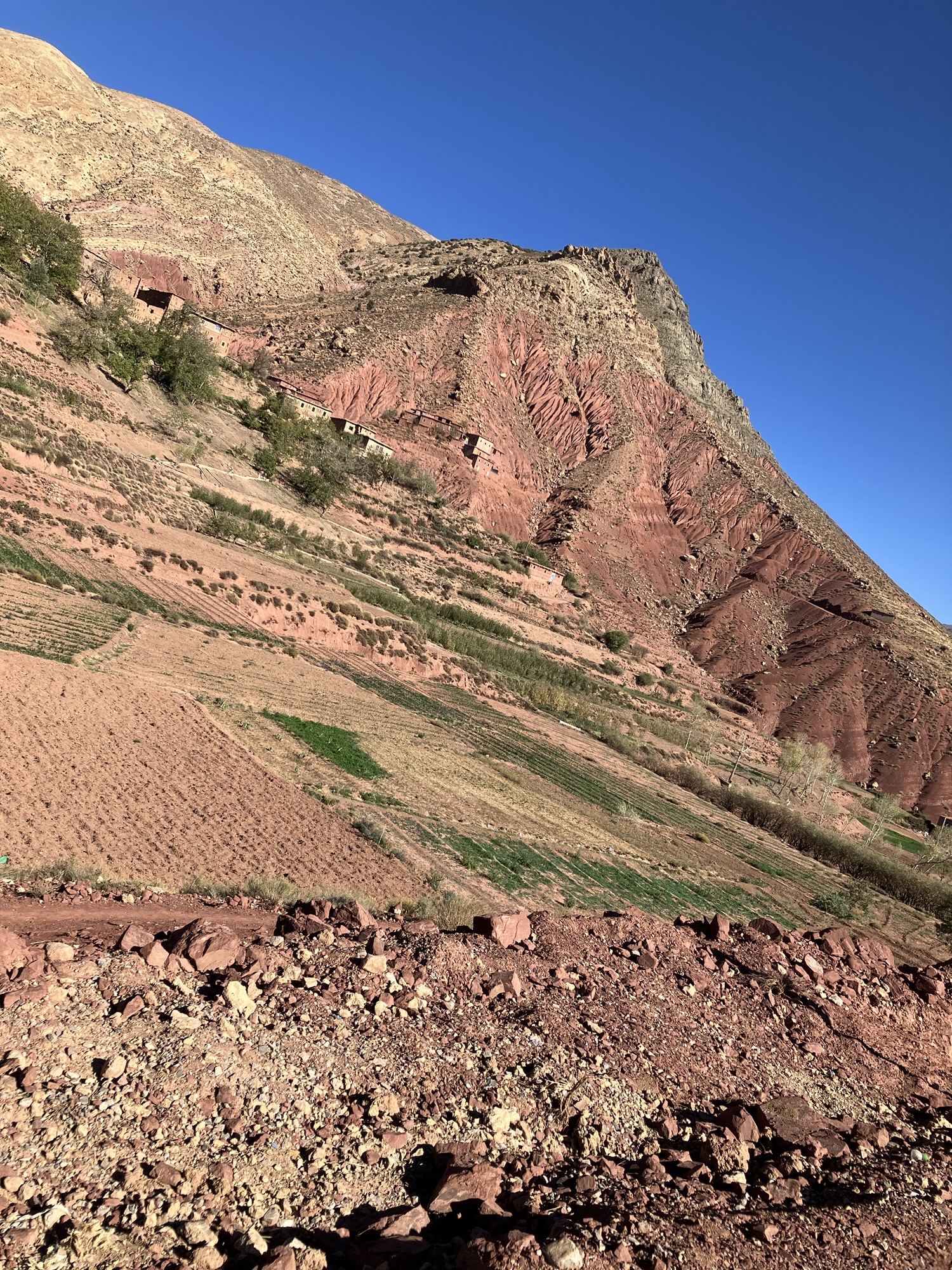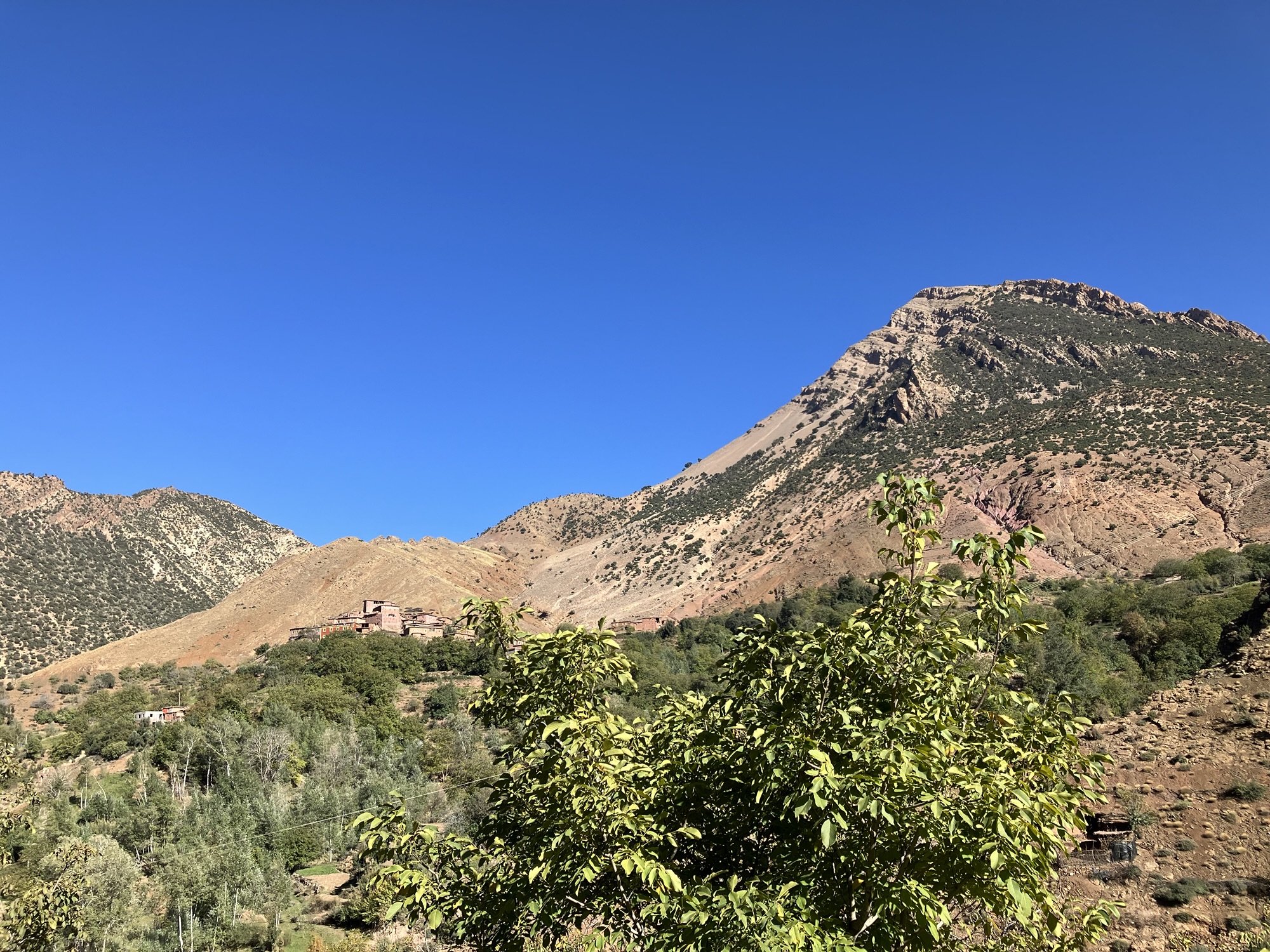 Ein Mal geht noch. Da wir am Vortag schon großteils die Schotterpiste nehmen mussten, wurde umgeplant. Diesmal nur Asphalt und nur ein kleines Stück Schotter. Mal sehen, was es wirklich wird am Weg zu La Cathedral, ein großer Felsen, der wie eine Kathedrale aussehen soll. Diesmal umrundeten wir den Bin El Ouidane Stausee, oder besser das Terrain, dass er bei viel Wasser bedeckt, eine riesige Fläche in schönster Landschaft eingebettet. Die Straße war in der Tat asphaltiert, nur die letzten Kilometer führten über eine Ausbaustrecke – die Bagger waren schon da – bis zum Fuße des Felsen La Cathedral. Wir hielten für unser Picknick am plätschernden Fluss. Abgesehen von dem von Besuchern zurückgelassenen Müll und den zerbrochenen Glasflaschen, war es eine willkommene Pause in der Natur.