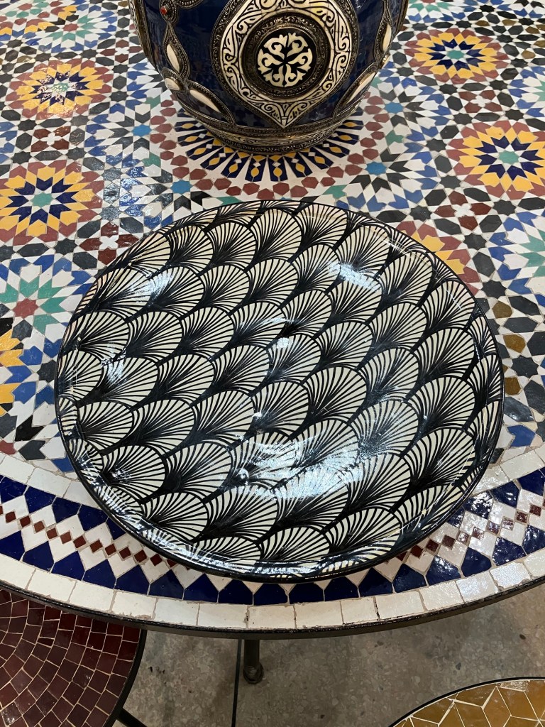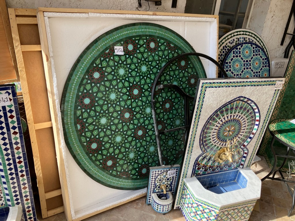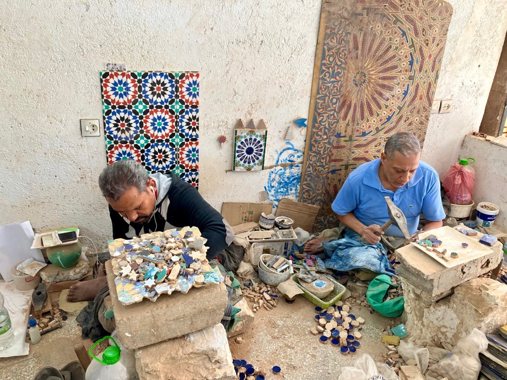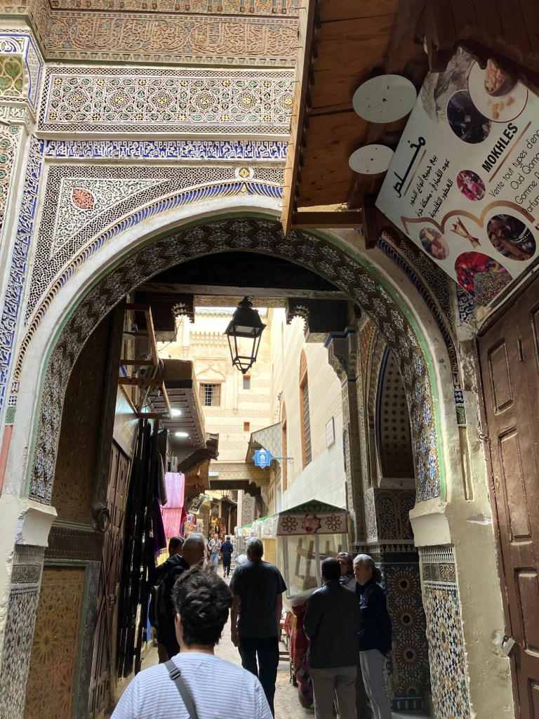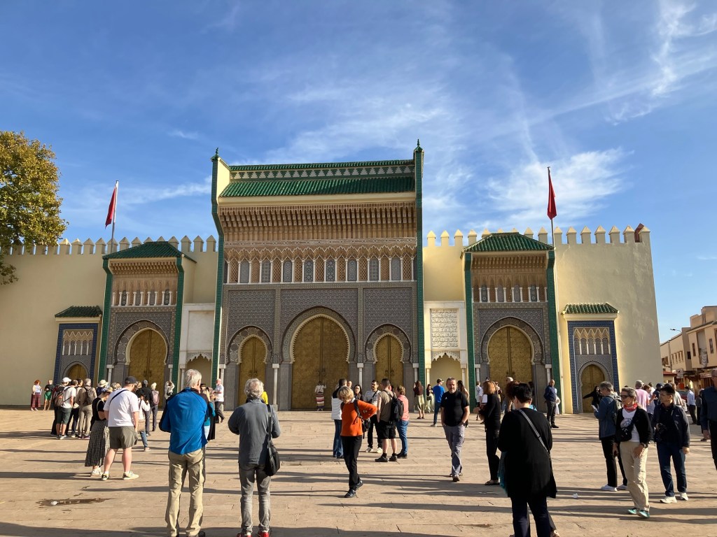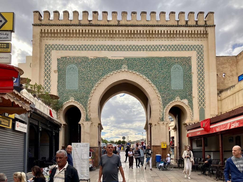 Am nächsten Tag stand die schwarze Limousine vor dem Tor. Wir tauchten ein in das geschäftige Leben von Fes (Link zum Nachlesen bitte verwenden). Ok, ganz so geschäftig war es gar nicht, weil wir waren an einem Freitag unterwegs und da haben viele Geschäfte geschlossen. Für unsere sechsstündige Führung ganz angenehm. Mohamed unser Guide zeigte uns den Palast, das Jüdische Viertel, die Süd Bastion, die Medina mit der ältesten islamischen Universität, das Holzmuseum, das Gerberviertel, die Stoffweberei und die Kunsthandwerker in einer renommierten Keramikwerkstatt. Die Medina von Fes ist auf die Fläche bezogen die größte noch intakte mittelalterliche Altstadt. Das Gassenlabyrinth ist einmalig. Ich habe ein paar Impressionen in der Fotogalerie zusammengestellt.