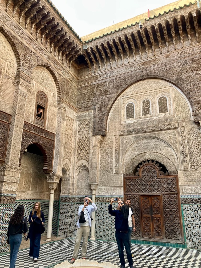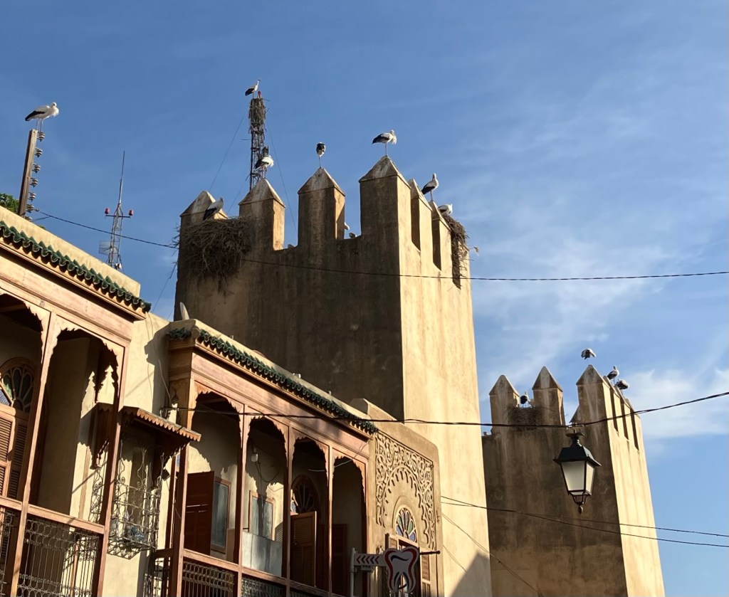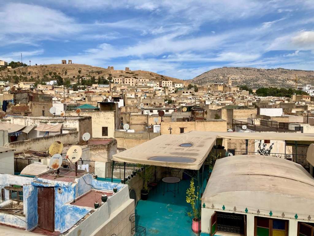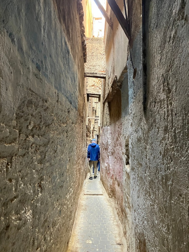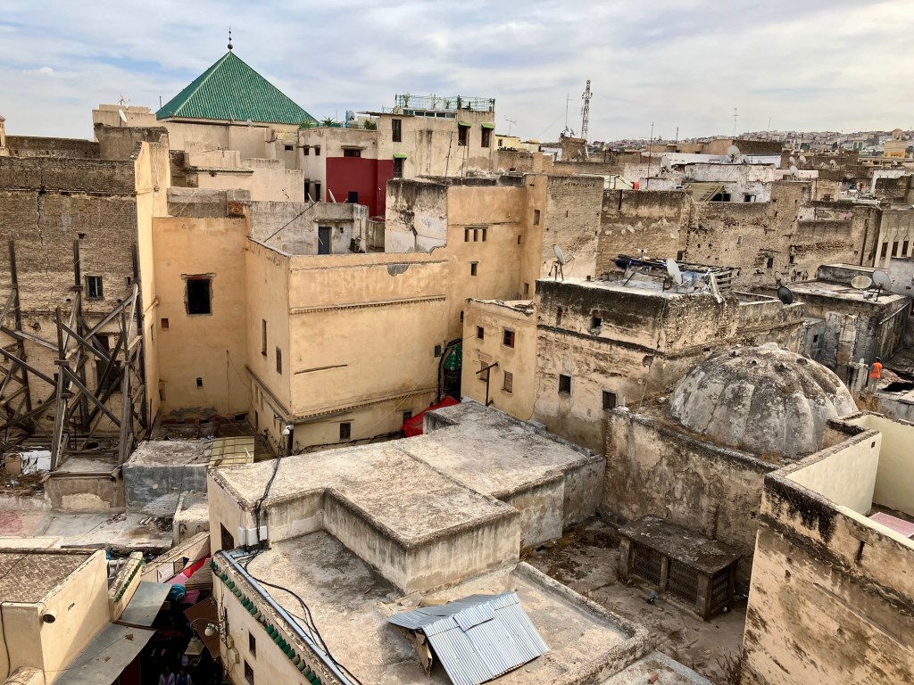 Auch Fes ist so eine Parallelwelt wie Marrakesch oder Meknes. Von den 1,25 Millionen Einwohnern von Fes leben heute noch 156.000 in den engen Gassen der Medina. Lieferungen von Möbel oder z.B. ein Kühlschrank müssen über die Dächer transportiert werden. In der Medina hat man den Eindruck, die Zeit sei stehen geblieben. Im neuen Viertel wachsen die Luxusvillen, Schulen, moderne Geschäfte, Einkaufszentren und internationale Restaurants aus dem Boden. Und es gibt in manchen Lokalen auch Bier und Wein!