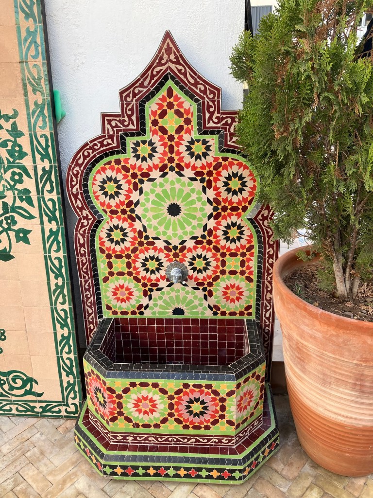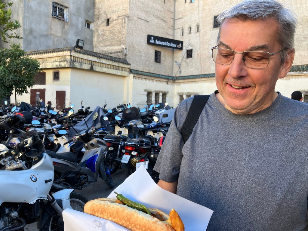 Wir waren in der vierten, noch fehlenden Königstadt Marokkos angekommen – Fes. Für ein paar Tage hatten wir uns in einem Riad mit Hammam & Spa in der neuen Stadt einquartiert. Hinter hohen Mauern eine Schmuckkästchen. Fatima eine smarte ältere Dame ist die Besitzerin, Managerin und Herrscherin in diesem Kleinod. Unterstützt wird sie von vier Damen. ein reiner Frauenhaushalt würden wir sagen. Der Bock rollte in den kleinen Garten mit Orangenbäumen und verschiedenen Blumen. Bei Vogelgezwitscher konnte auch er sich entspannen und erholen. Später bekam er noch von zwei Wiener Motorrädern Gesellschaft.